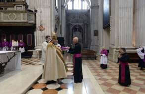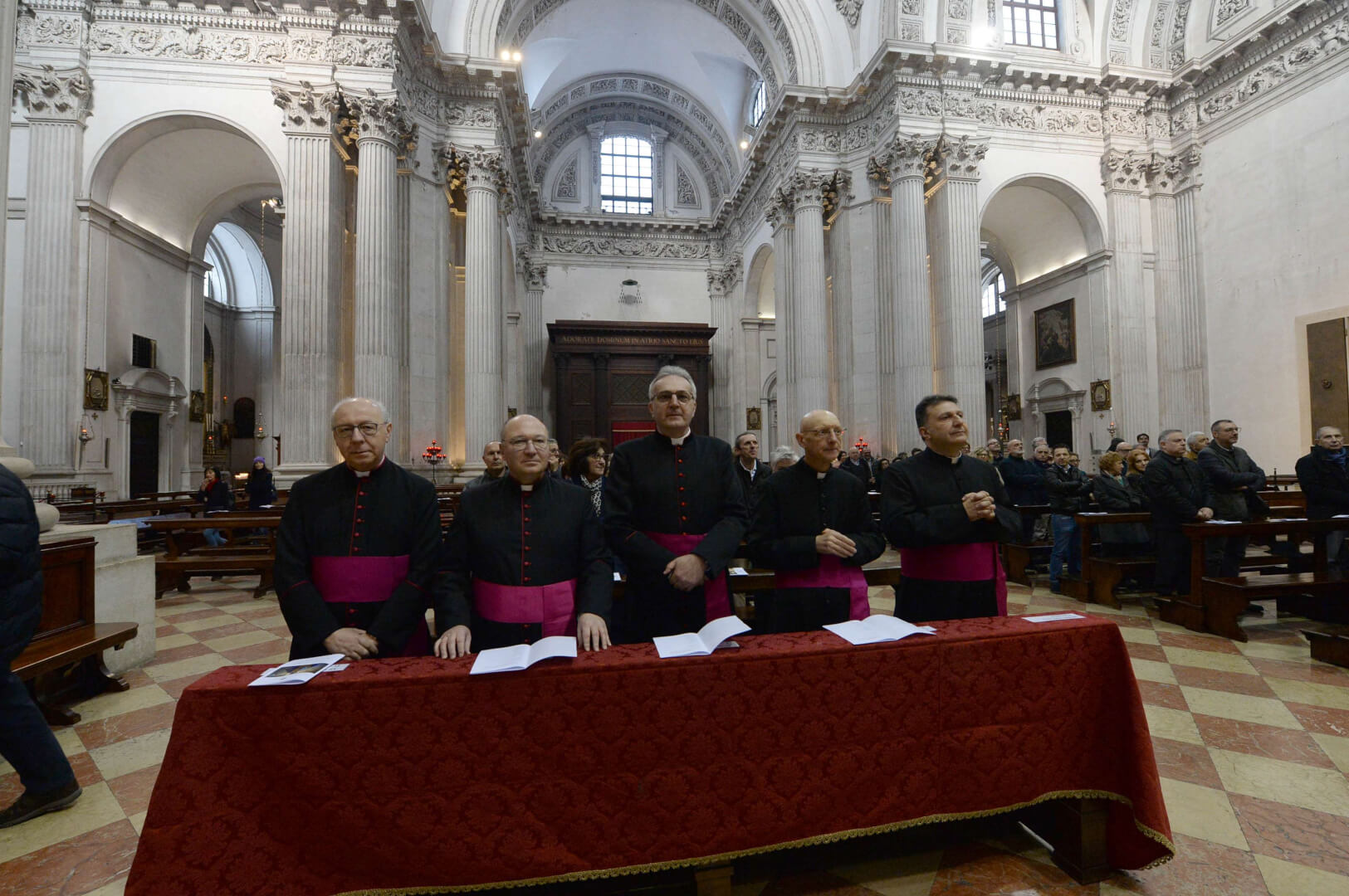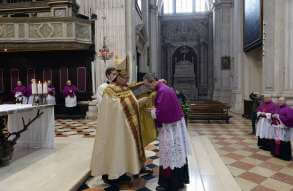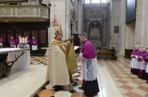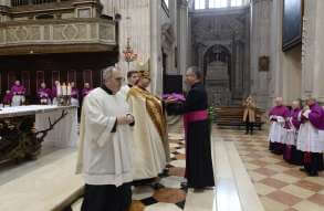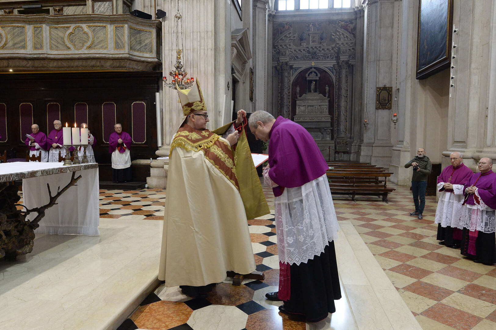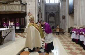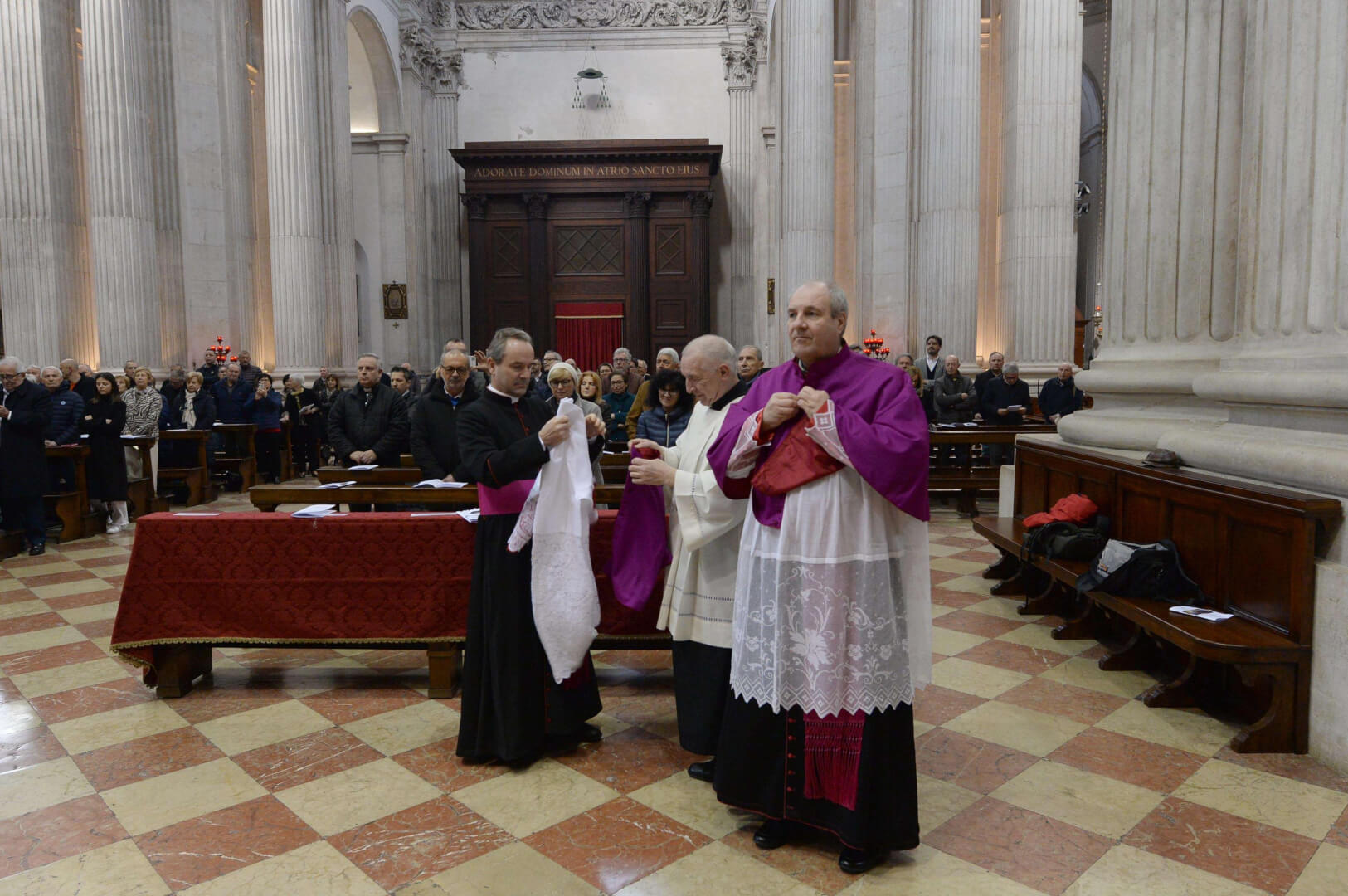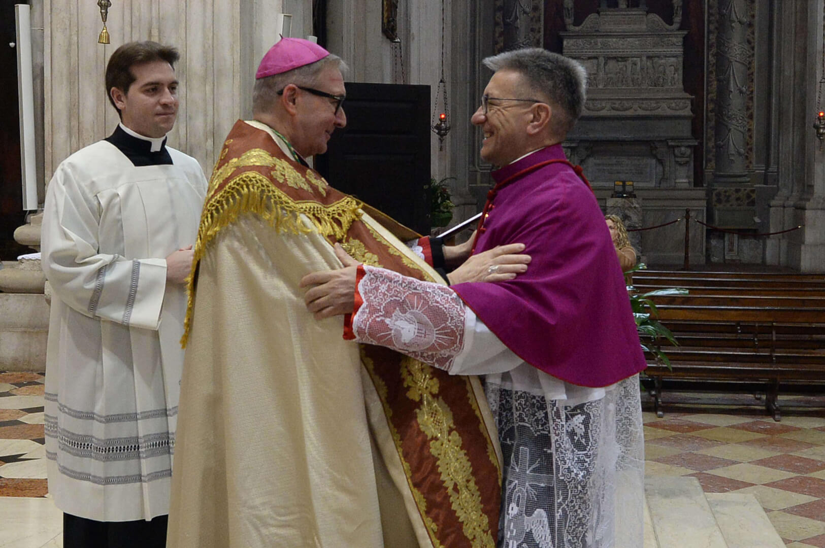 Il vicario generale, mons. Gaetano Fontana, e i Vicari Episcopali sono stati inseriti tra i Canonici Onorari della Cattedrale durante una celebrazione presieduta, nella mattinata del 19 marzo, dal Vescovo. "Non si tratta - aveva sottolineato mons. Tremolada in una lettera a gennaio - di un premio e neppure di una onorificenza. Mi preme che risulti più visibile a tutta la Chiesa diocesana il loro legame con il Vescovo, particolarmente nell’amministrazione del Sacramento della Cresima e in occasione di eventi ufficiali significativi"