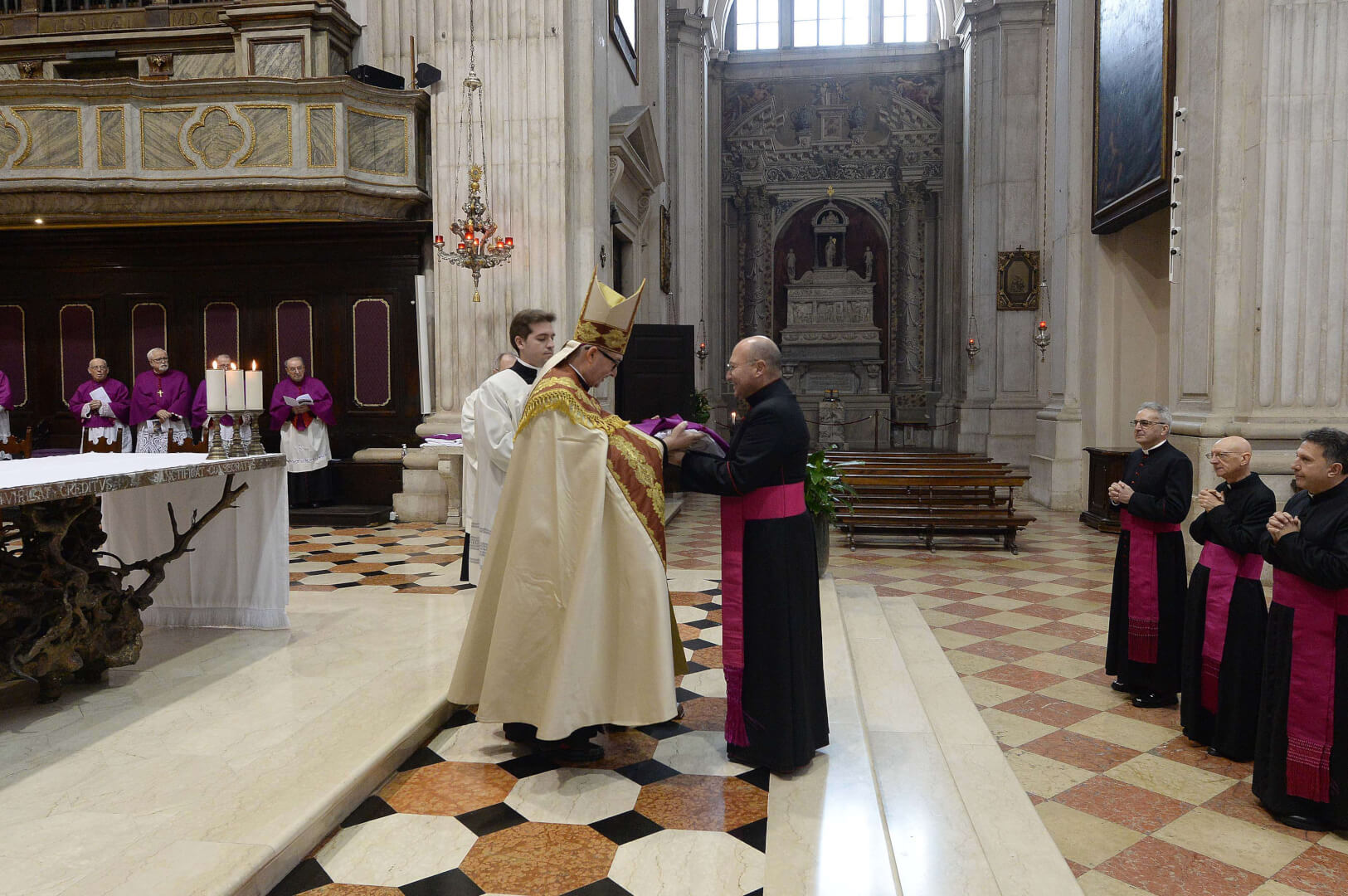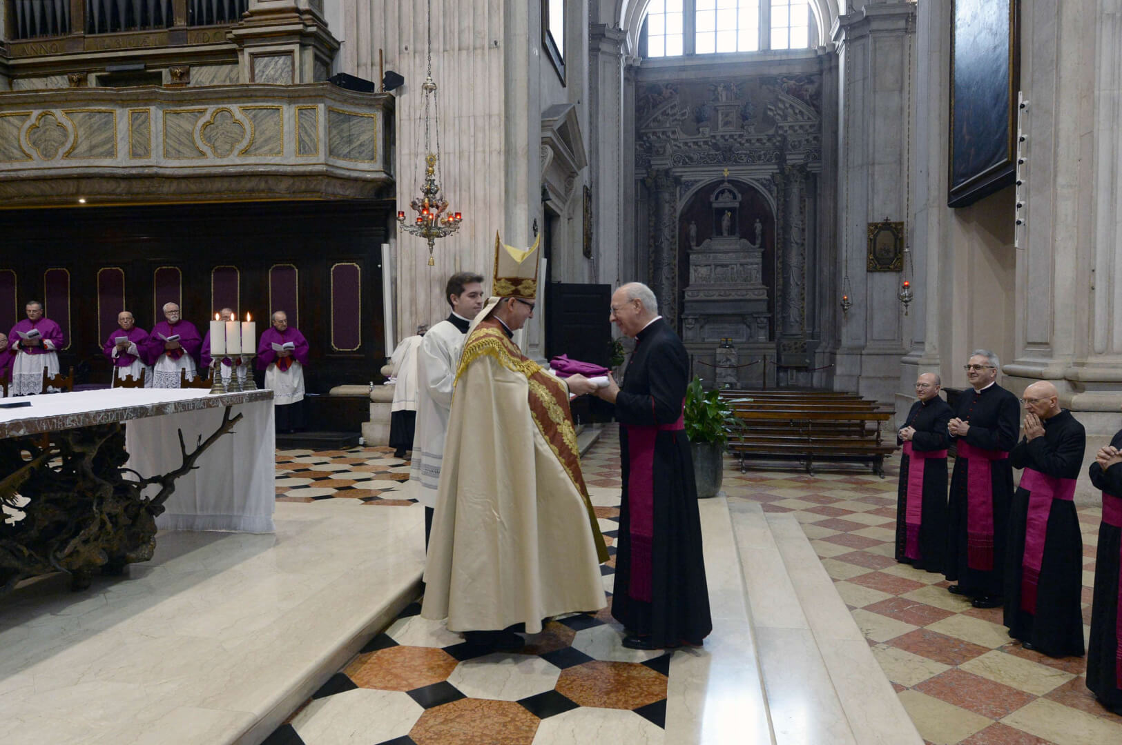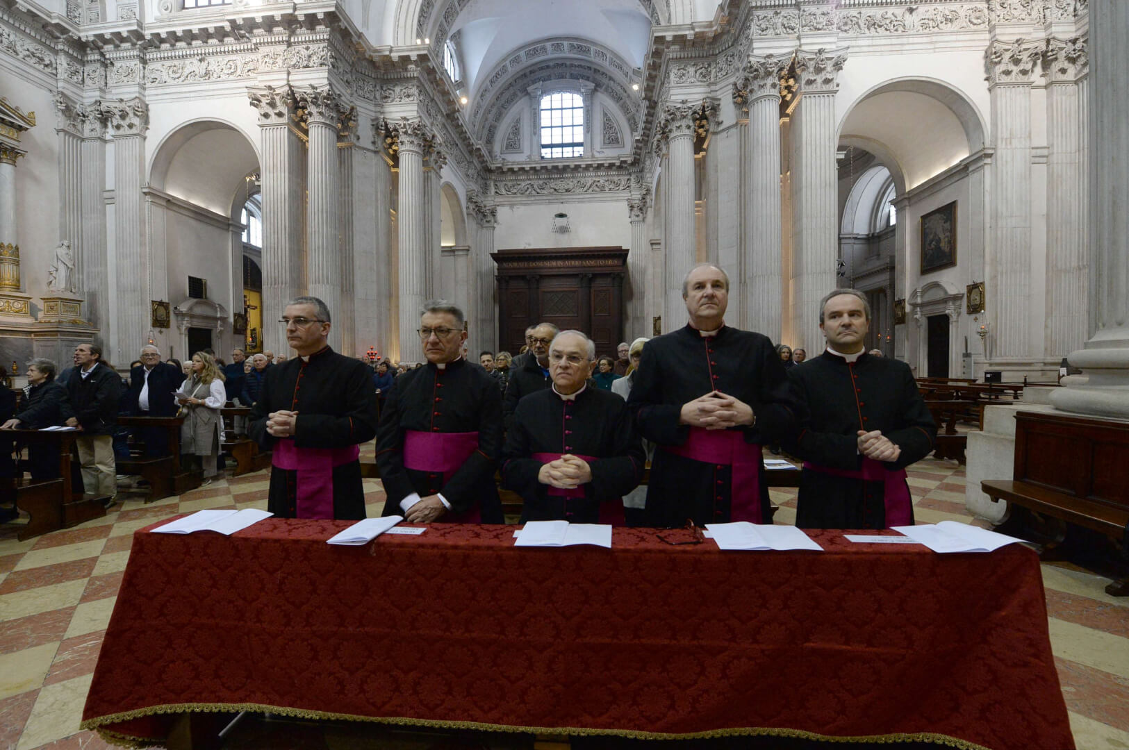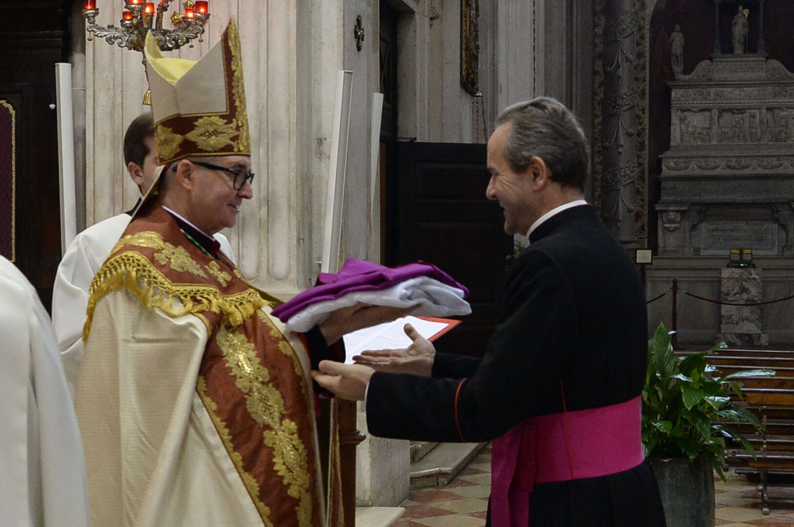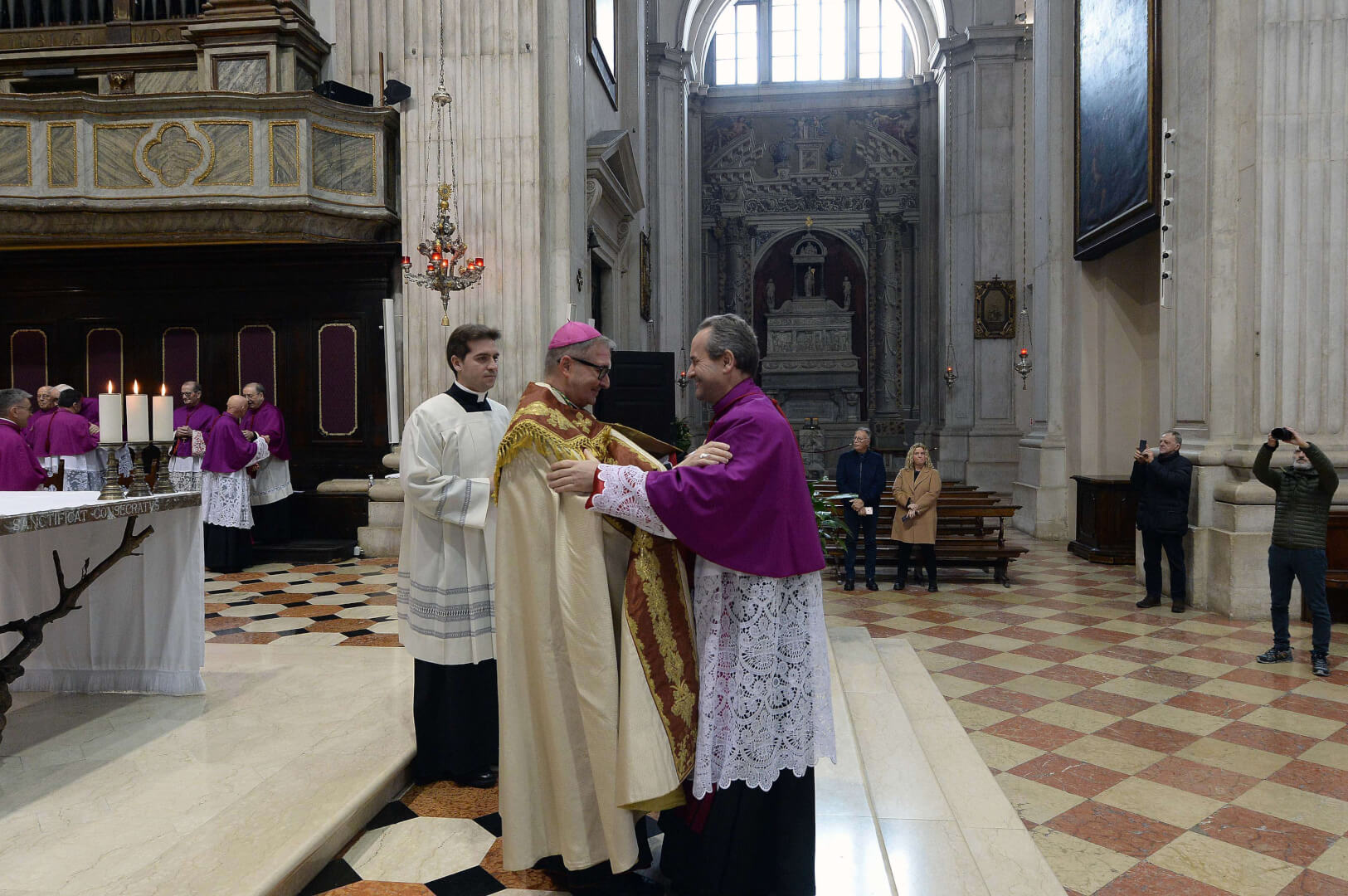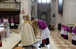 Il vicario generale, mons. Gaetano Fontana, e i Vicari Episcopali sono stati inseriti tra i Canonici Onorari della Cattedrale durante una celebrazione presieduta, nella mattinata del 19 marzo, dal Vescovo. "Non si tratta - aveva sottolineato mons. Tremolada in una lettera a gennaio - di un premio e neppure di una onorificenza. Mi preme che risulti più visibile a tutta la Chiesa diocesana il loro legame con il Vescovo, particolarmente nell’amministrazione del Sacramento della Cresima e in occasione di eventi ufficiali significativi"