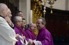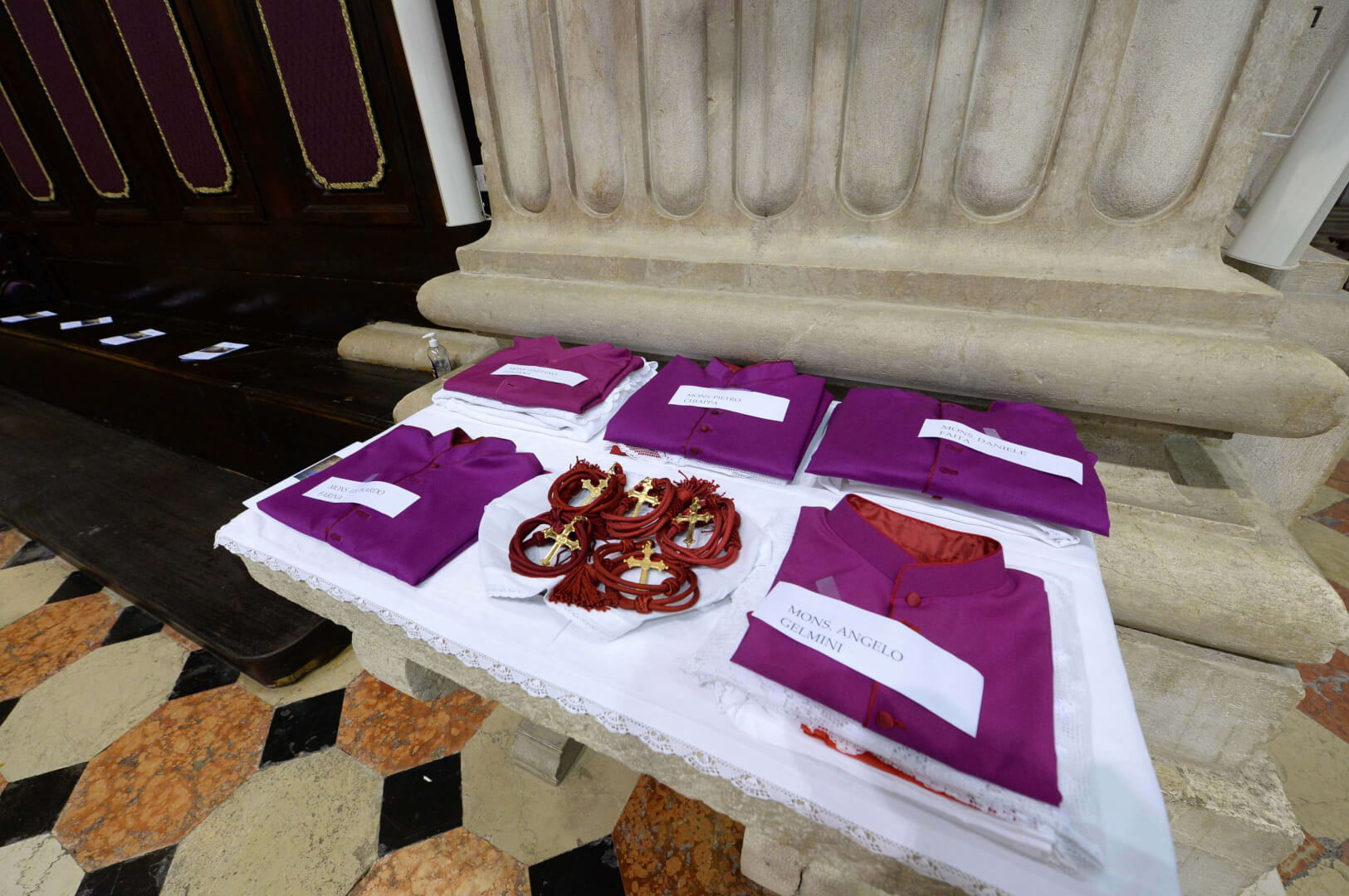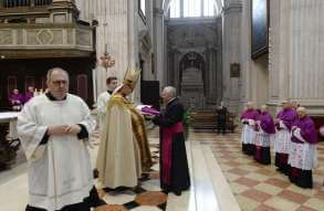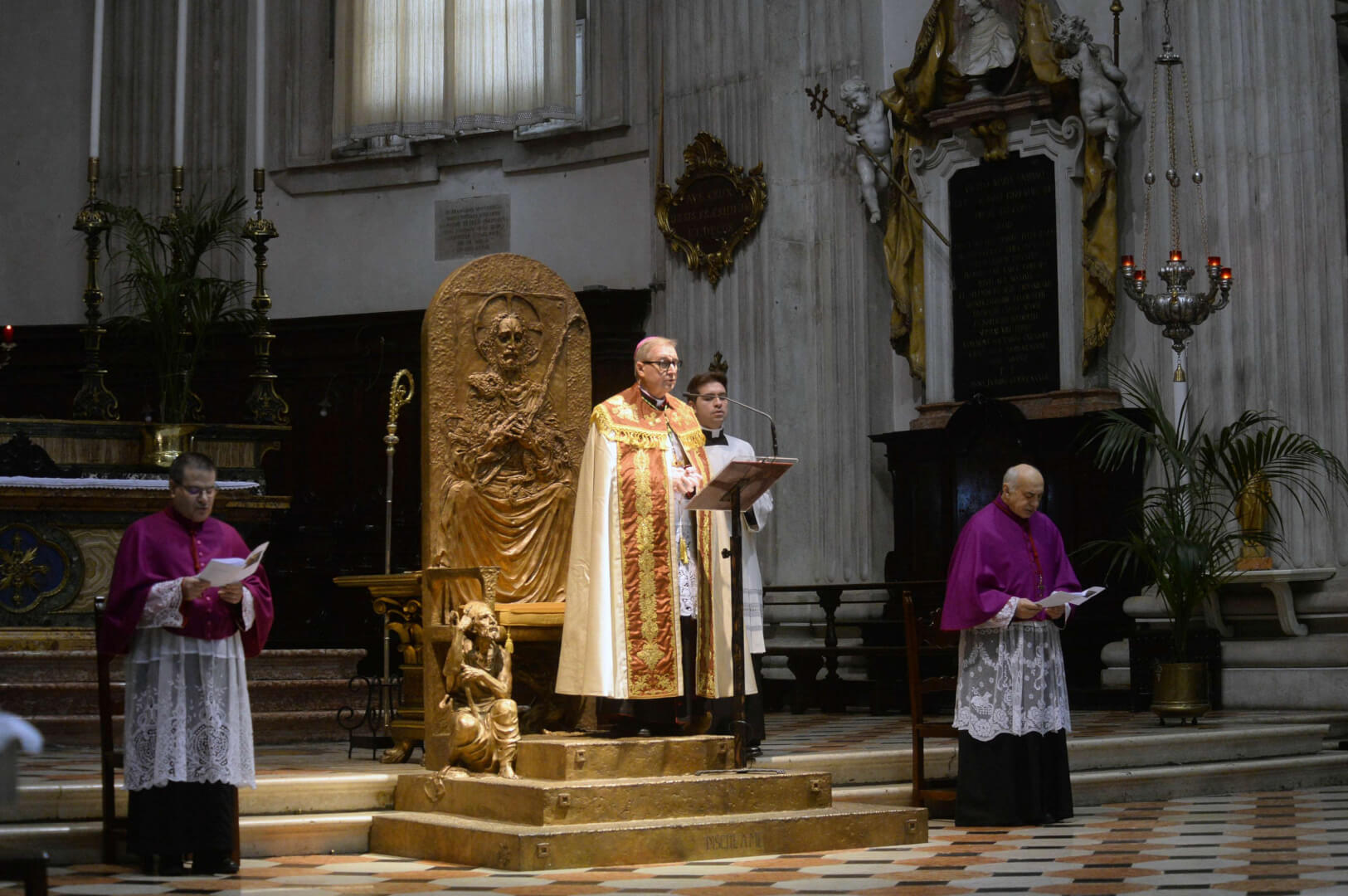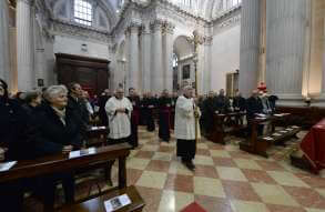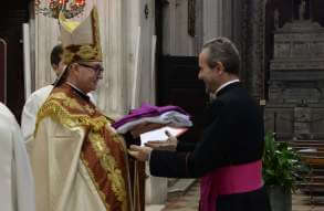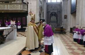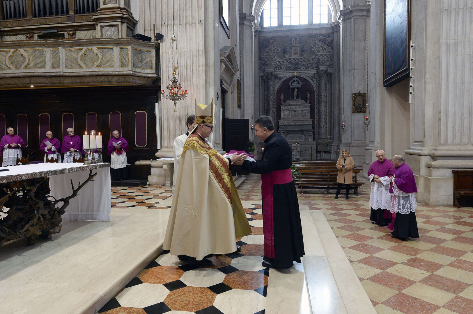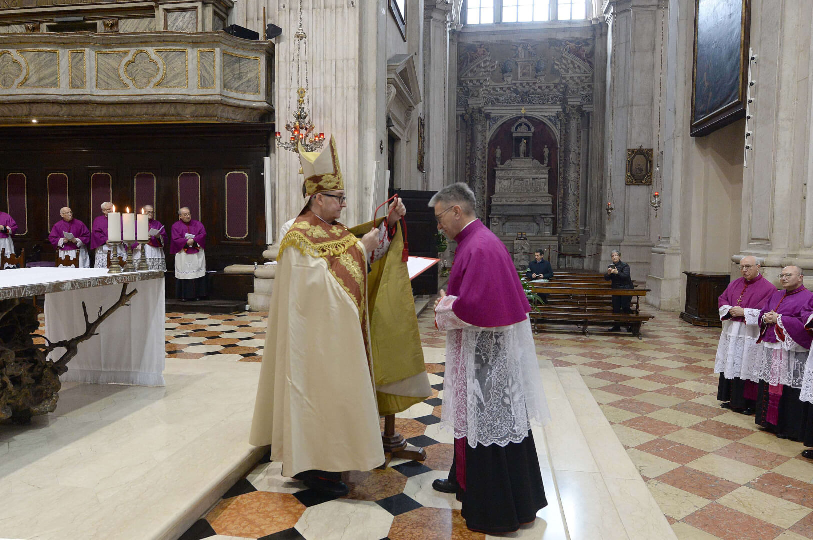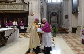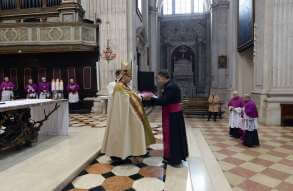 Il vicario generale, mons. Gaetano Fontana, e i Vicari Episcopali sono stati inseriti tra i Canonici Onorari della Cattedrale durante una celebrazione presieduta, nella mattinata del 19 marzo, dal Vescovo. "Non si tratta - aveva sottolineato mons. Tremolada in una lettera a gennaio - di un premio e neppure di una onorificenza. Mi preme che risulti più visibile a tutta la Chiesa diocesana il loro legame con il Vescovo, particolarmente nell’amministrazione del Sacramento della Cresima e in occasione di eventi ufficiali significativi"