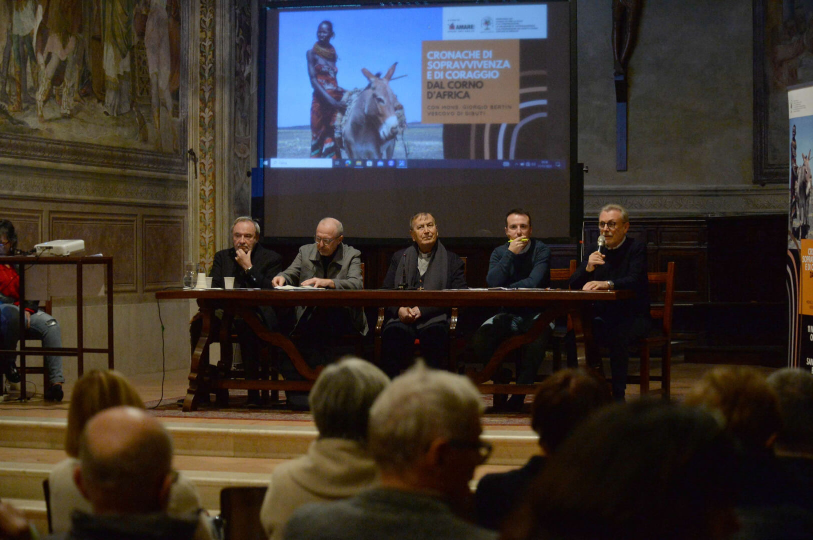 Tra conflitti dimenticati e poveri abbandonati, la speranza di una piccola presenza cristiana impegnata nella carità e nella testimonianza. All'interno del Festival della Pace, Amare Onlus e la Consulta per la pace hanno promosso un incontro con mons. Giorgio Bertin, vescovo di Gibuti e Amministratore Apostolico di Mogadiscio. Bertin, frate minore, è in missione in Africa da 45 anni. Alla serata, ospitata dai Saveriani, ha partecipato anche don Maurizio Rinaldi, direttore di Caritas Diocesana