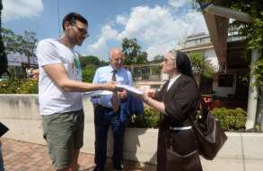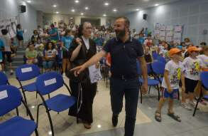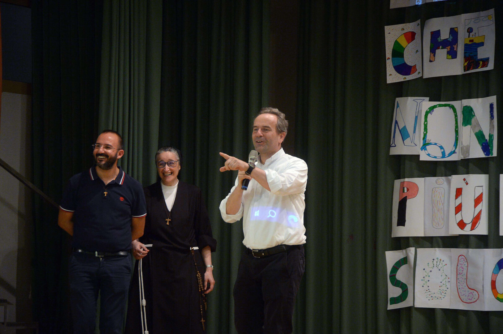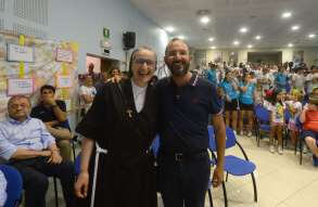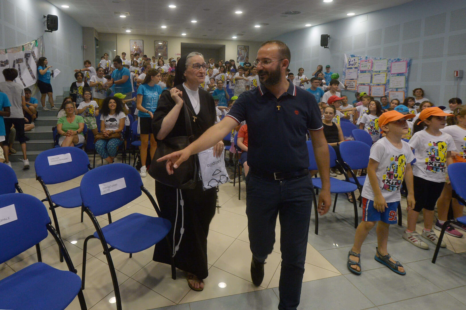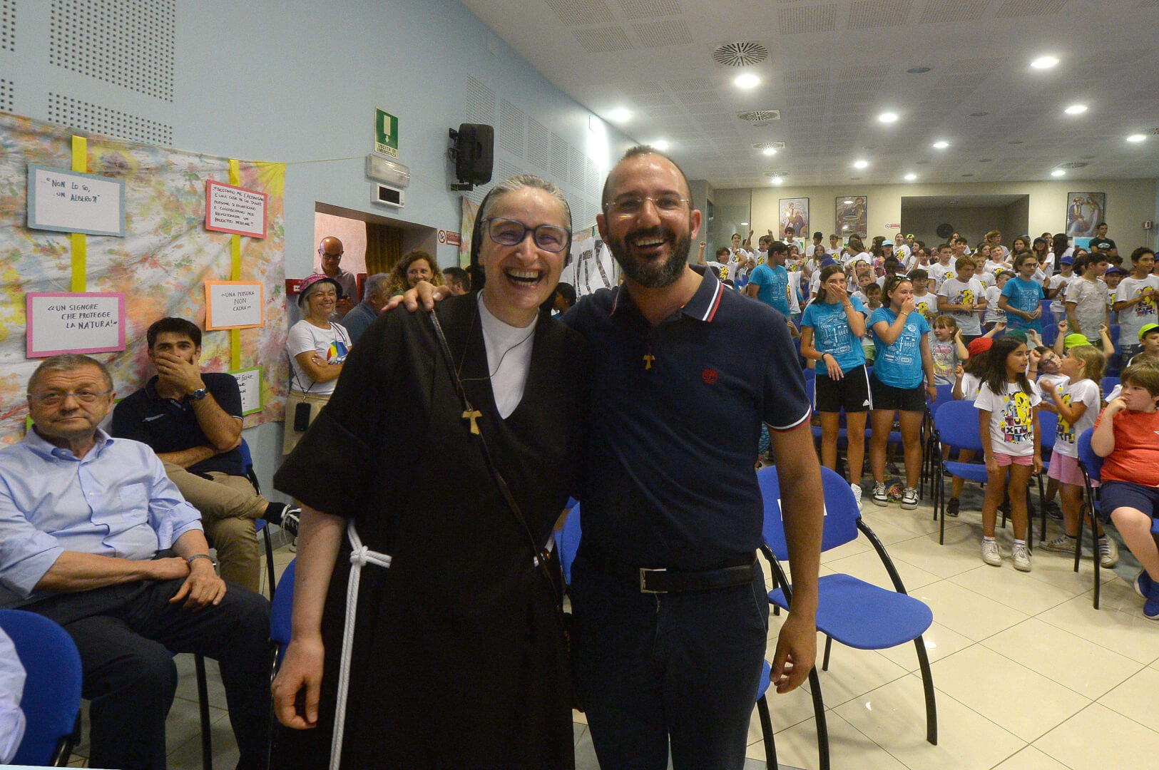Suor Veronica Donatello, responsabile del Servizio nazionale per la pastorale delle persone con disabilita' della Cei, ha incontrato i ragazzi del grest dell'oratorio de Le due Sante. Crescere insieme, giocare insieme e pregare insieme per abbattere tutti i pregiudizi. All'incontro erano presenti anche don Carlo Tartari, gli assessori Muchetti e Cantoni, don Giovanni Milesi e don Roberto Lombardi