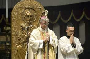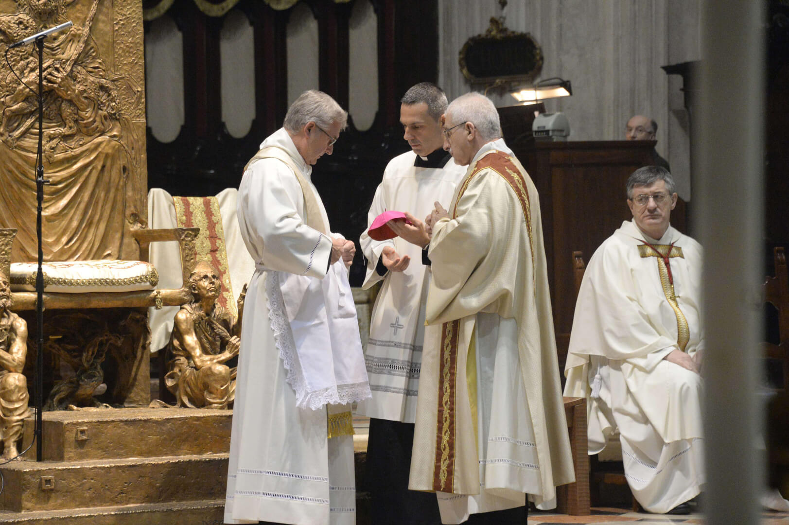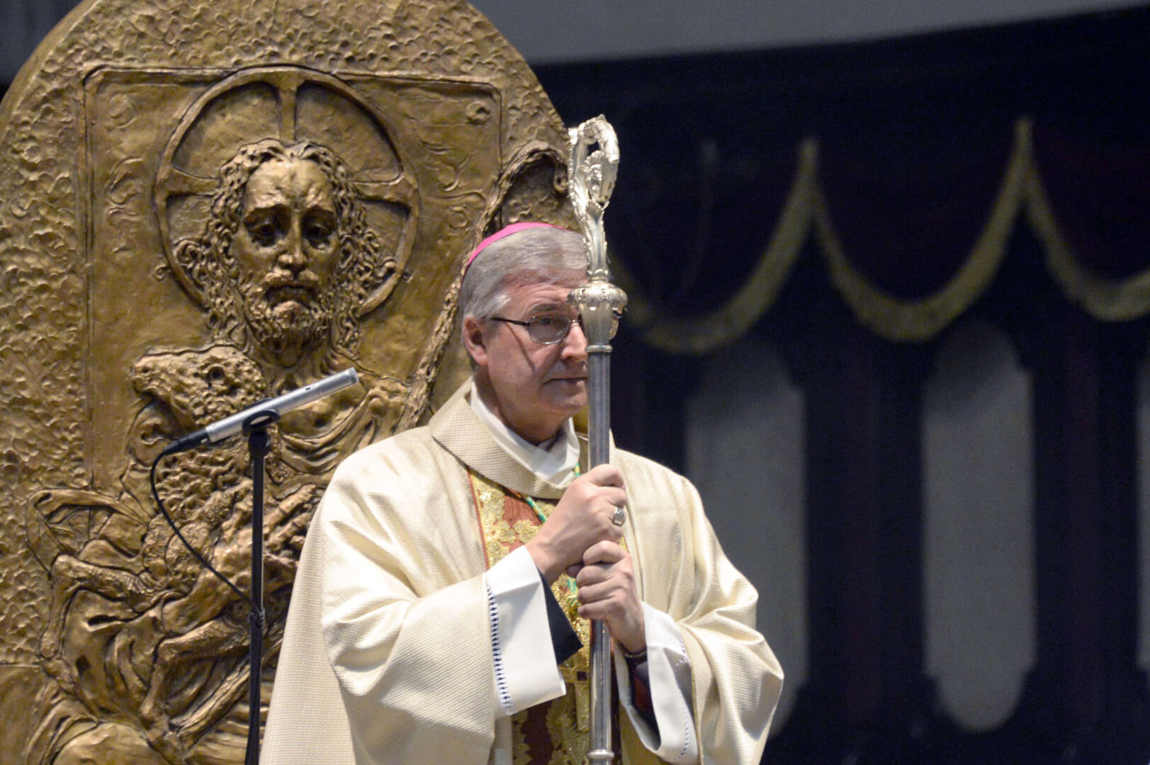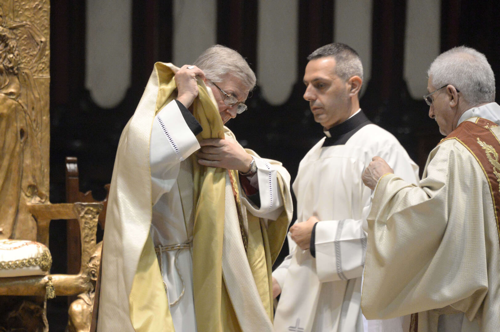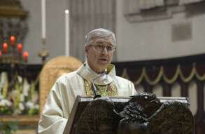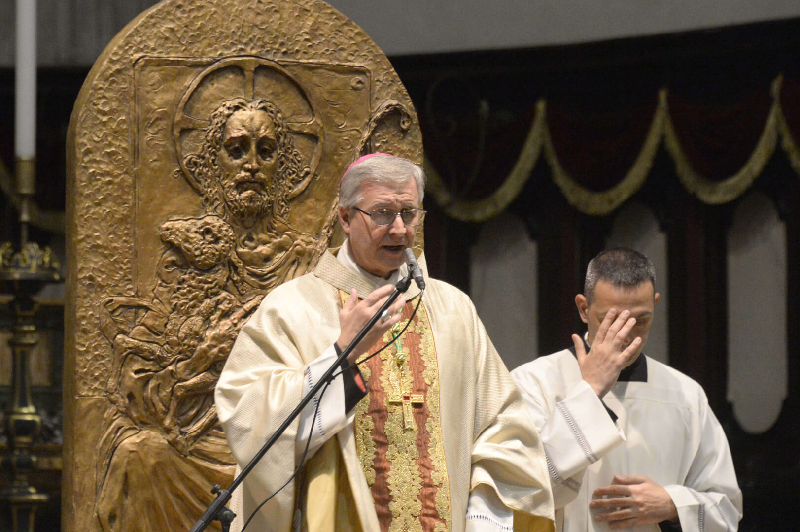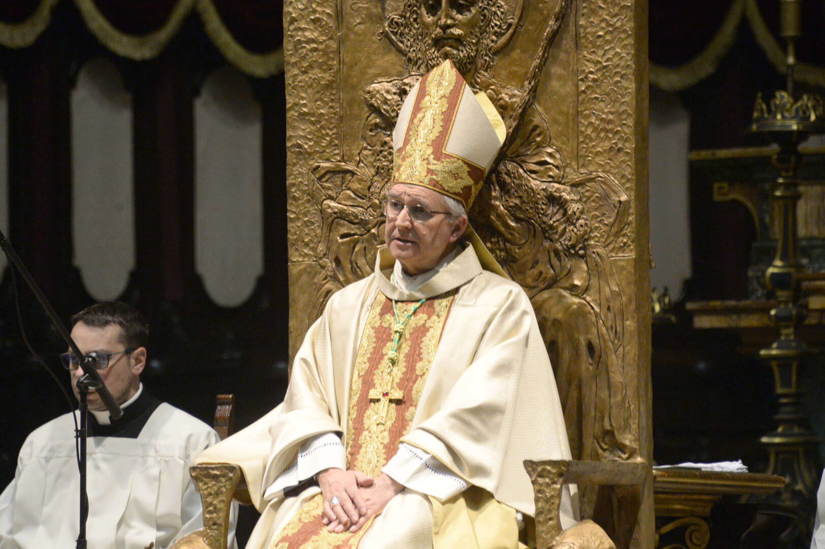 Nella Messa “In Coena Domini”, Il vescovo Pierantonio ha ripetuto il gesto della lavanda dei piedi a 12 persone fra ospiti e operatori del dormitorio S. Vincenzo