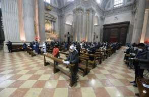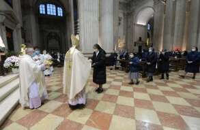 Il vescovo Pierantonio Tremolada ha presieduto, martedì 2 febbraio, in Cattedrale, la Santa Messa per la vita consacrata.