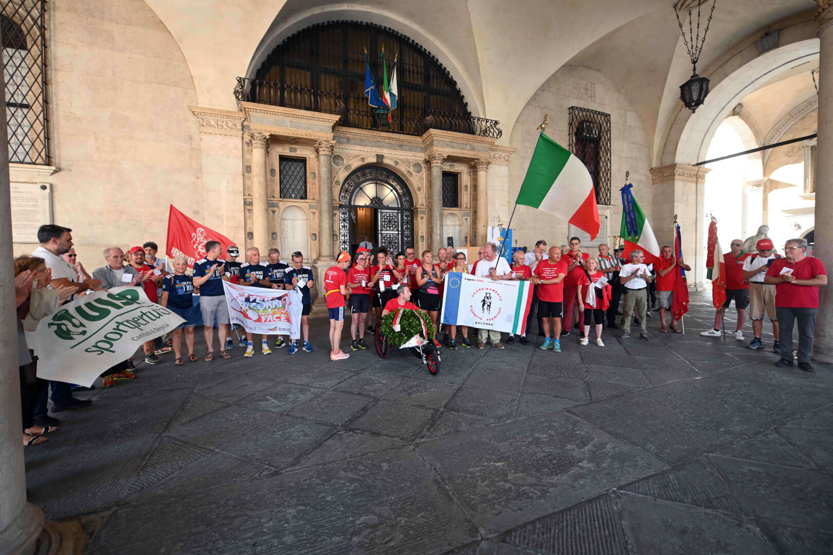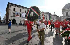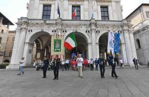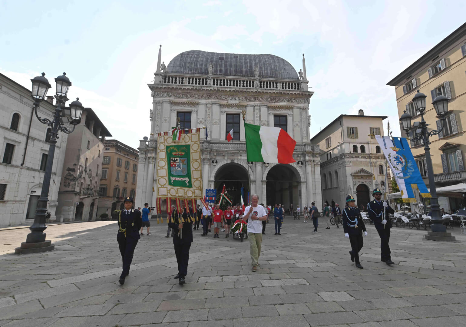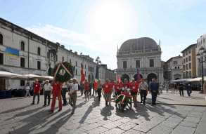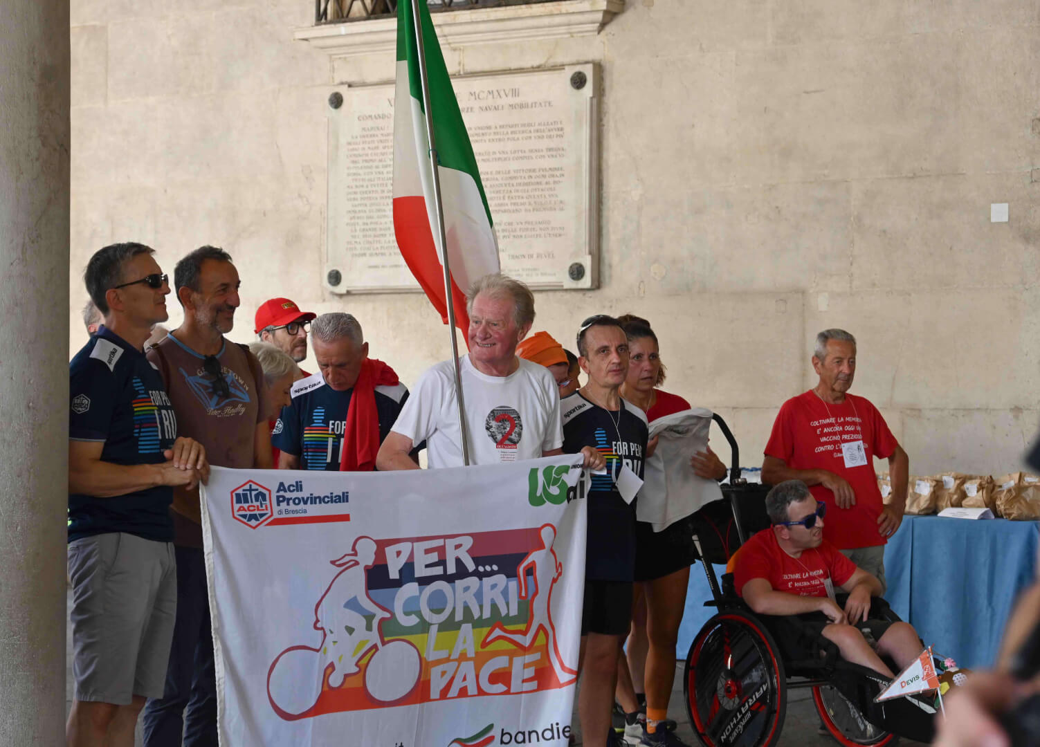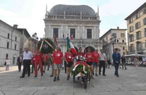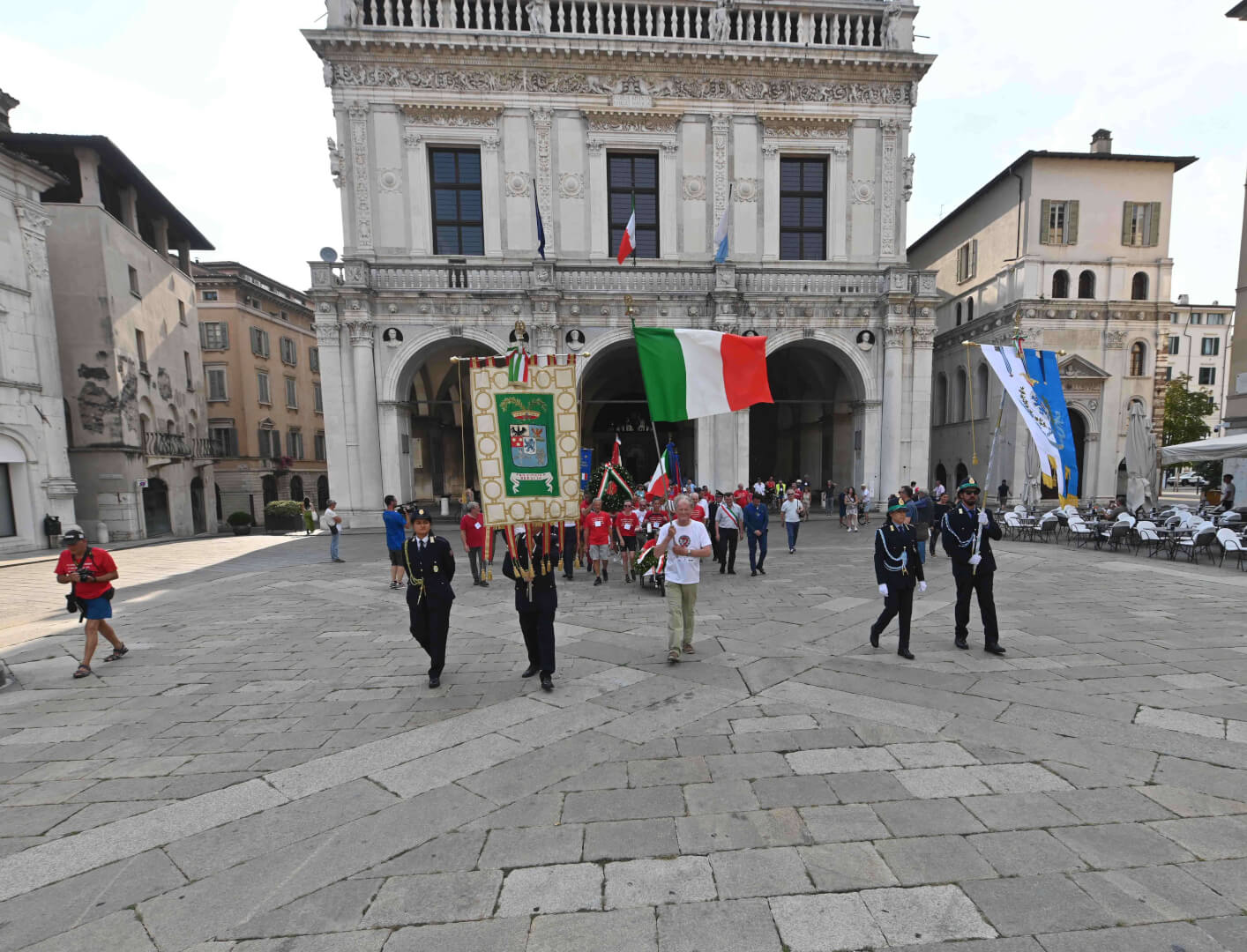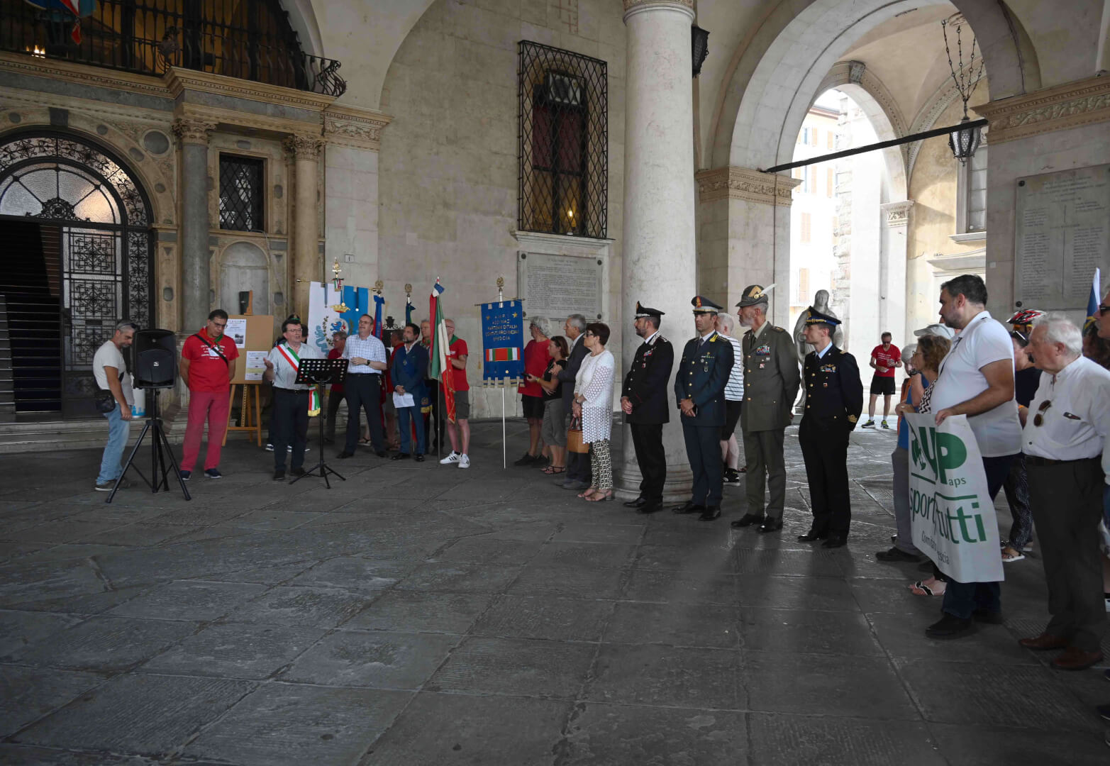 Immagini di “Momenti di memoria per non dimenticare” la staffetta podistica per ricordare le città colpite dalle stragi terroristiche di Milano/Brescia/Bologna. I podisti bresciani, con una rappresentativa bolognese, sono partiti dalla sede degli alpini di Roncadelle, percorrendo via Fratelli Cervi, via Violino di Sotto, via Valcamonica, via Milano (con breve sosta al Cimitero Vantiniano), piazzale Garibaldi, contrada del Carmine, via San Faustino e largo Formentone. In piazza della Loggia sono stati accolti sotto il porticato della Loggia da Autorità a Associazioni cittadine e dalla Banda cittadina “Isidoro Capitanio”. Dopo l’omaggio alla Stele delle Stragi, e il saluto delle autorità cittadine, la ripartenza per Bologna.