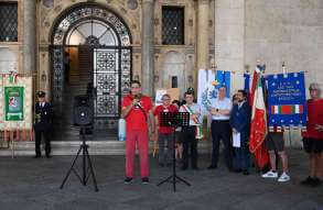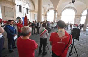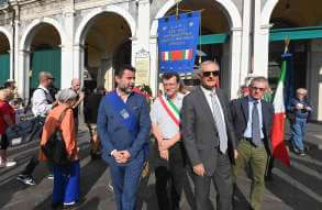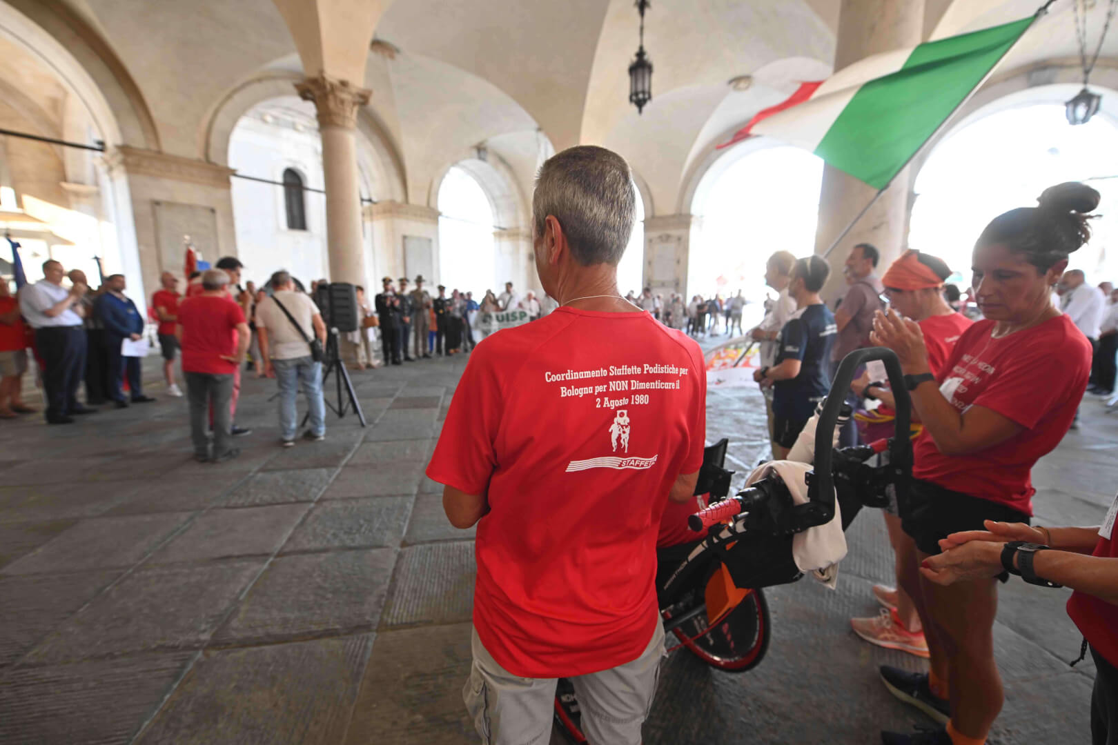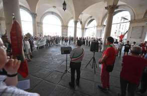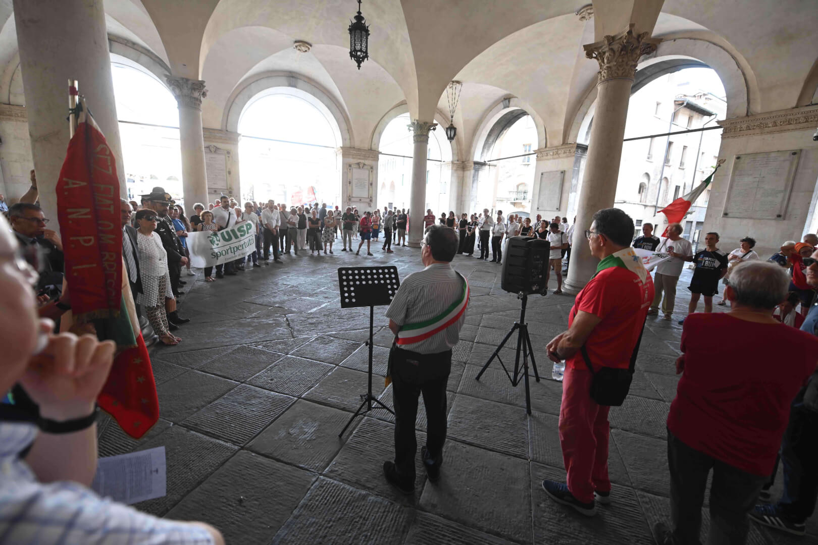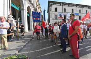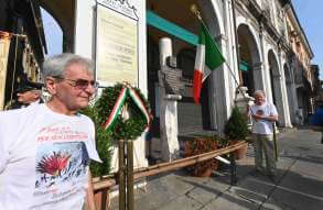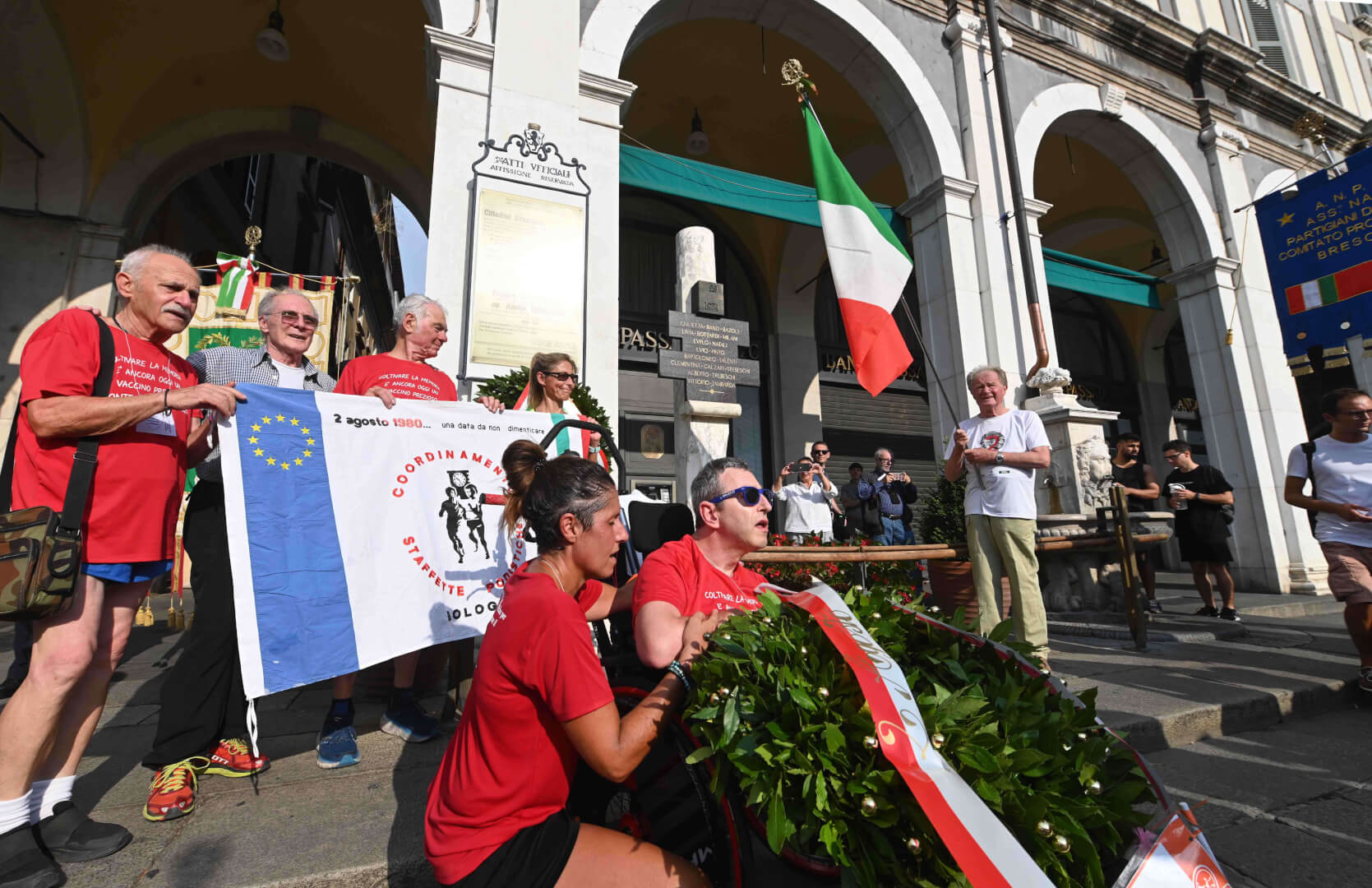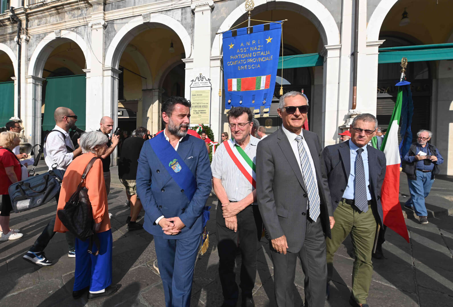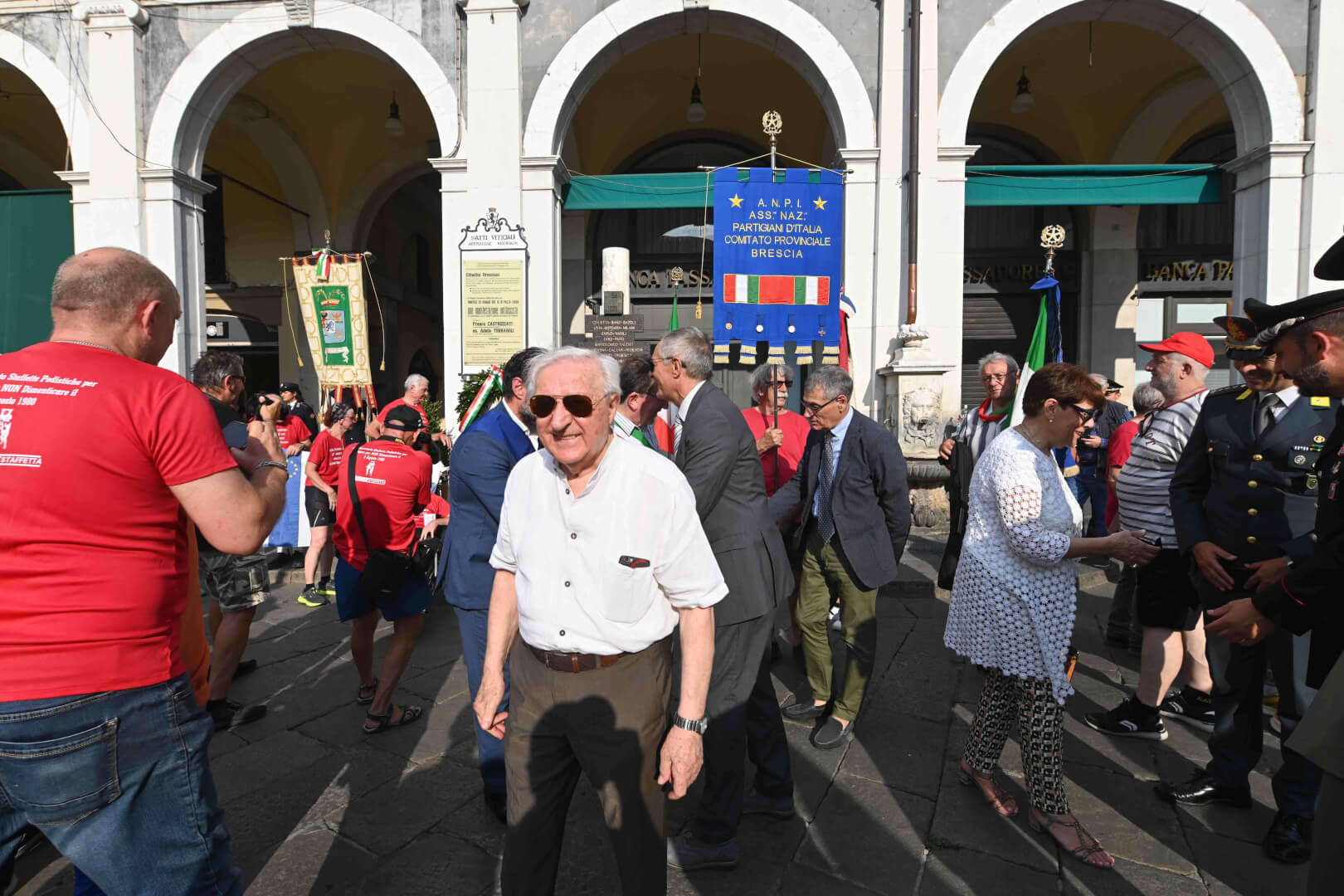 Immagini di “Momenti di memoria per non dimenticare” la staffetta podistica per ricordare le città colpite dalle stragi terroristiche di Milano/Brescia/Bologna. I podisti bresciani, con una rappresentativa bolognese, sono partiti dalla sede degli alpini di Roncadelle, percorrendo via Fratelli Cervi, via Violino di Sotto, via Valcamonica, via Milano (con breve sosta al Cimitero Vantiniano), piazzale Garibaldi, contrada del Carmine, via San Faustino e largo Formentone. In piazza della Loggia sono stati accolti sotto il porticato della Loggia da Autorità a Associazioni cittadine e dalla Banda cittadina “Isidoro Capitanio”. Dopo l’omaggio alla Stele delle Stragi, e il saluto delle autorità cittadine, la ripartenza per Bologna.