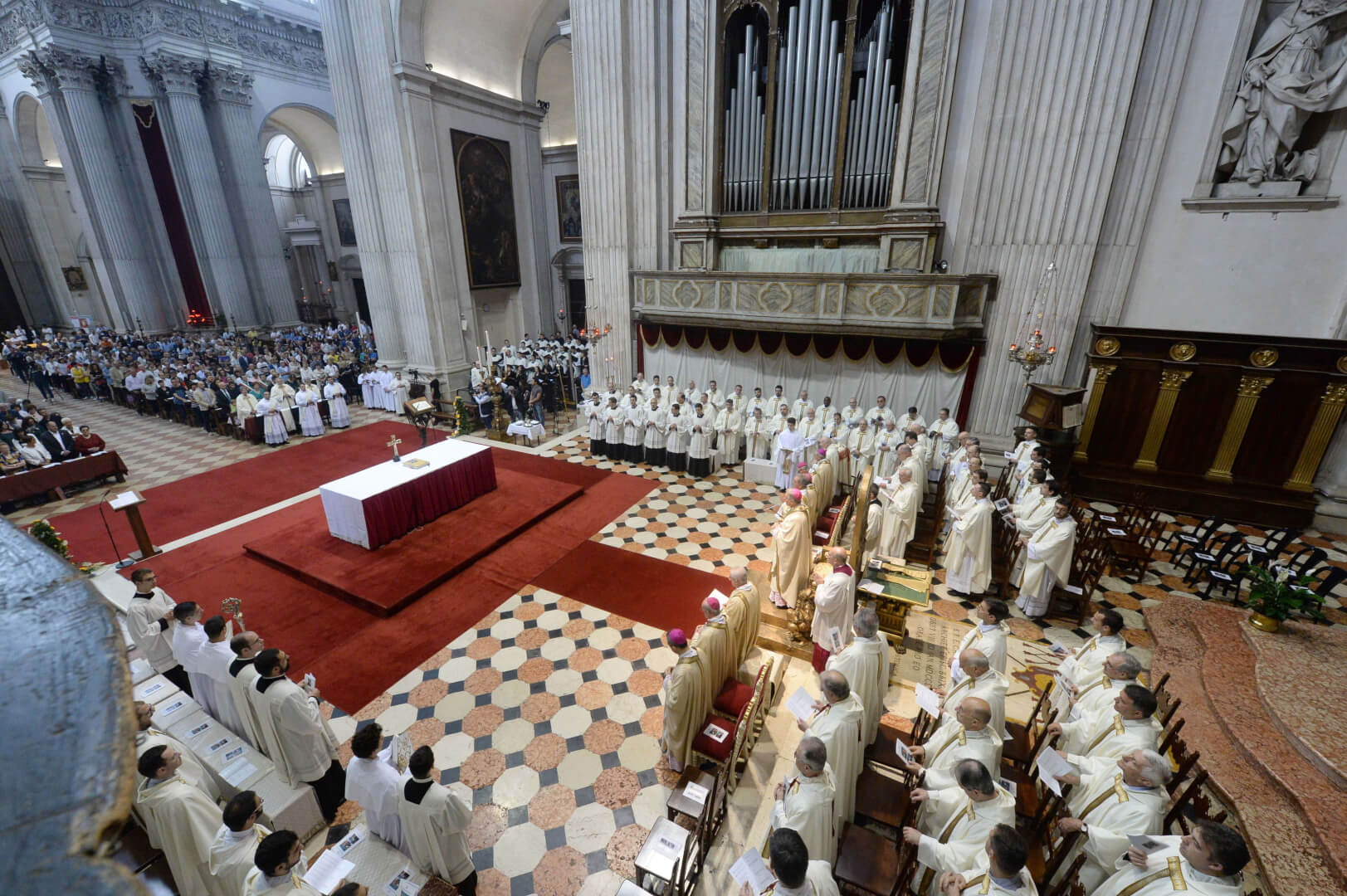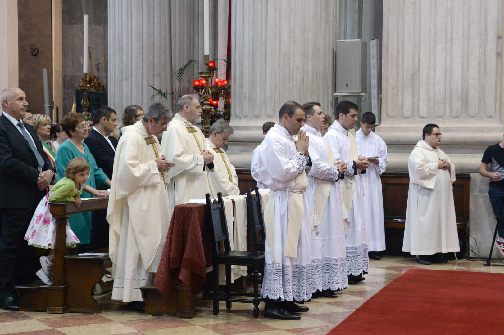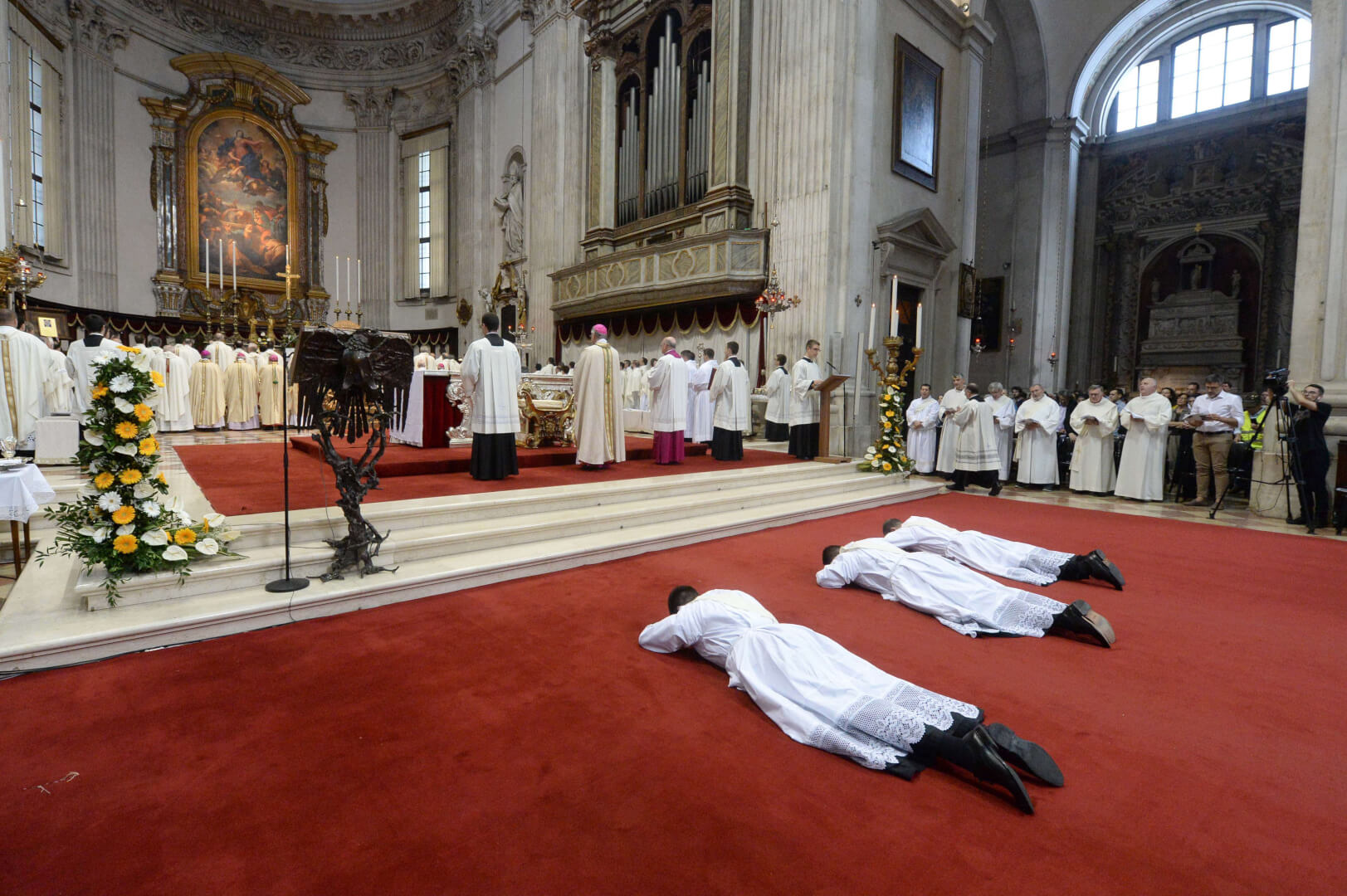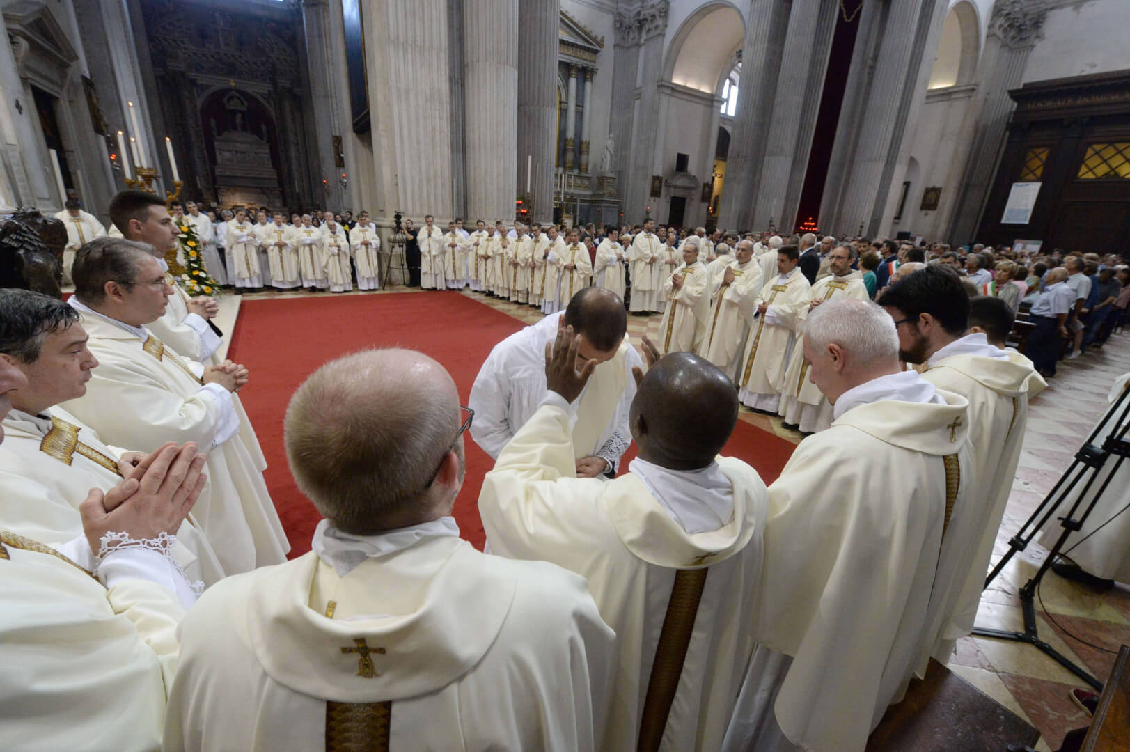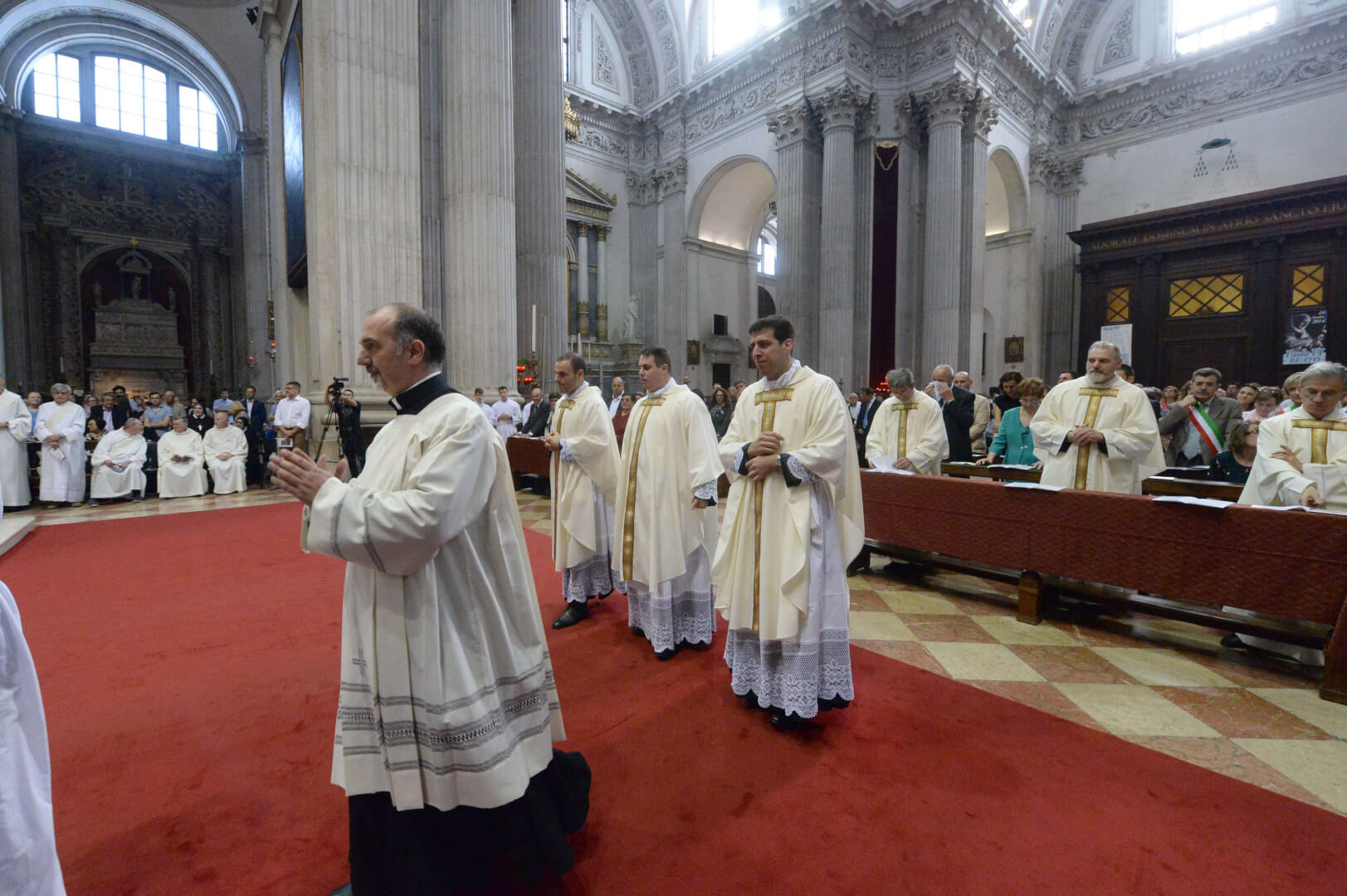Le ordinazioni presbietrali in cattedrale di Lorenzo, Alex e Luca. Per l’imposizione delle mani e la preghiera del Vescovo la fragilità dell’umana natura di questi ragazzi, prostrata ai piedi dell’altare, si è levata inondata di Spirito Santo per il servizio di Dio, della Chiesa e degli uomini. Immenso è il mistero divino che incontra la carne umana! Don Lorenzo Bacchetta, don Alex Recami e don Luca Signori hanno messo la loro umanità nelle mani del Signore. Con loro sono in festa anche le rispettive comunità.