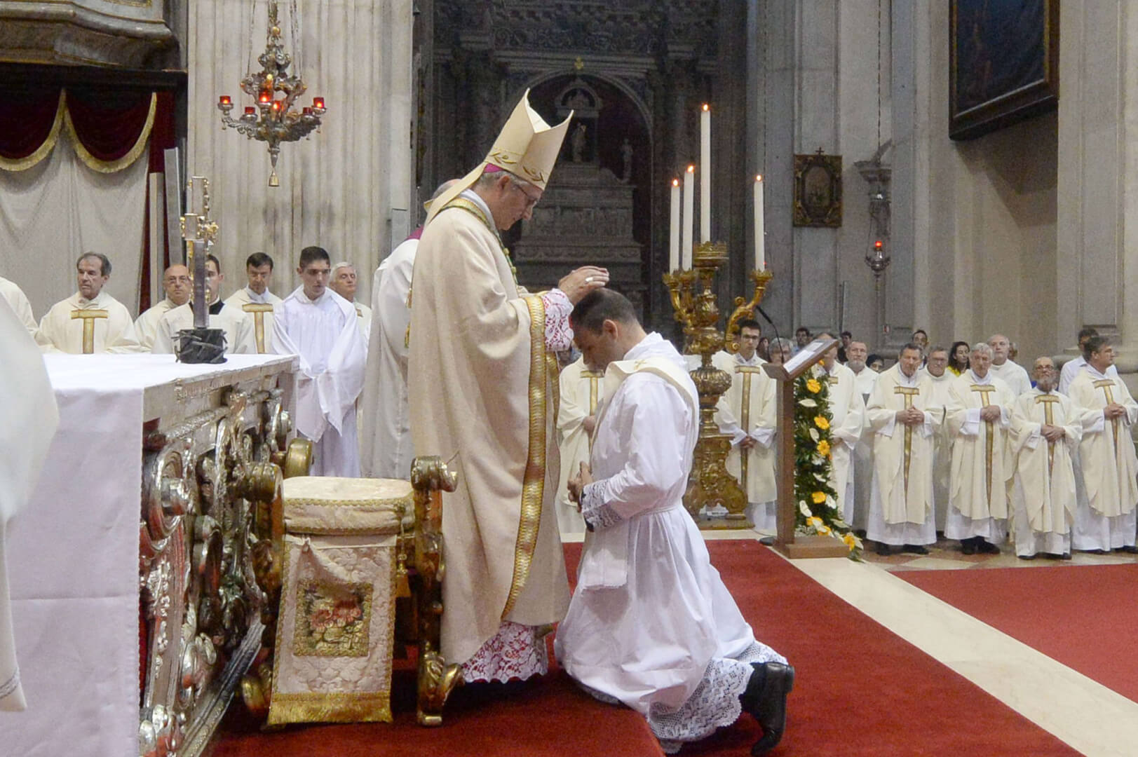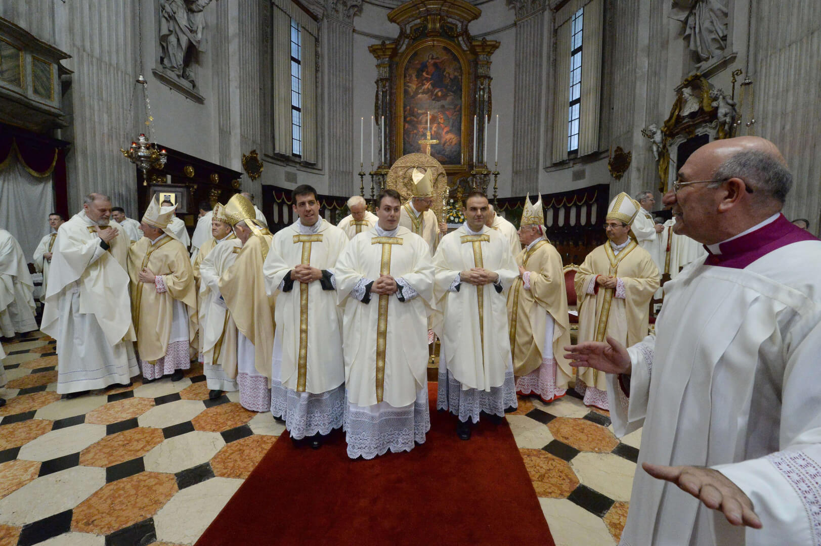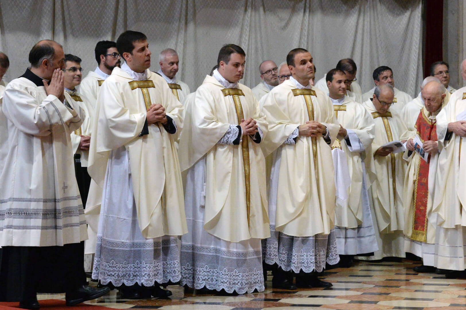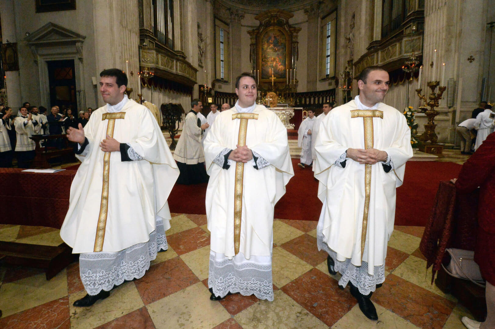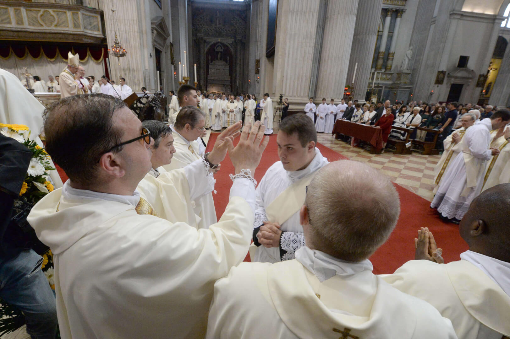 Le ordinazioni presbietrali in cattedrale di Lorenzo, Alex e Luca. Per l’imposizione delle mani e la preghiera del Vescovo la fragilità dell’umana natura di questi ragazzi, prostrata ai piedi dell’altare, si è levata inondata di Spirito Santo per il servizio di Dio, della Chiesa e degli uomini. Immenso è il mistero divino che incontra la carne umana! Don Lorenzo Bacchetta, don Alex Recami e don Luca Signori hanno messo la loro umanità nelle mani del Signore. Con loro sono in festa anche le rispettive comunità.
