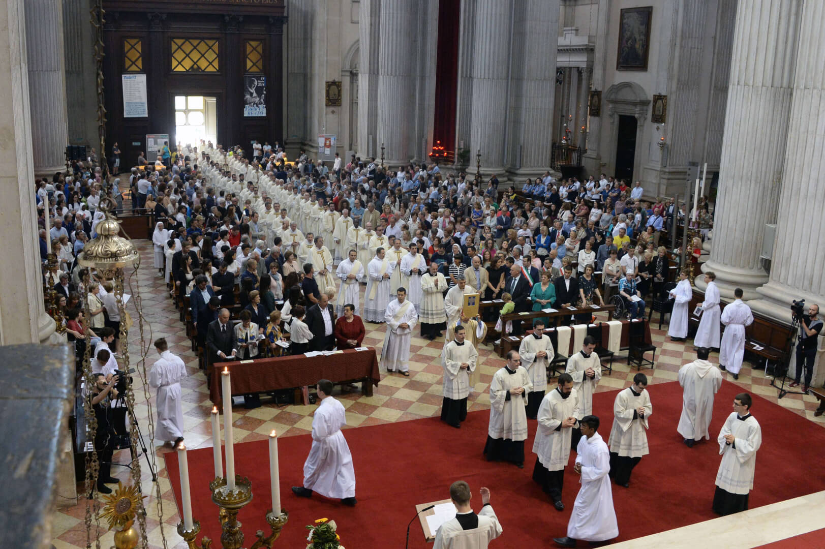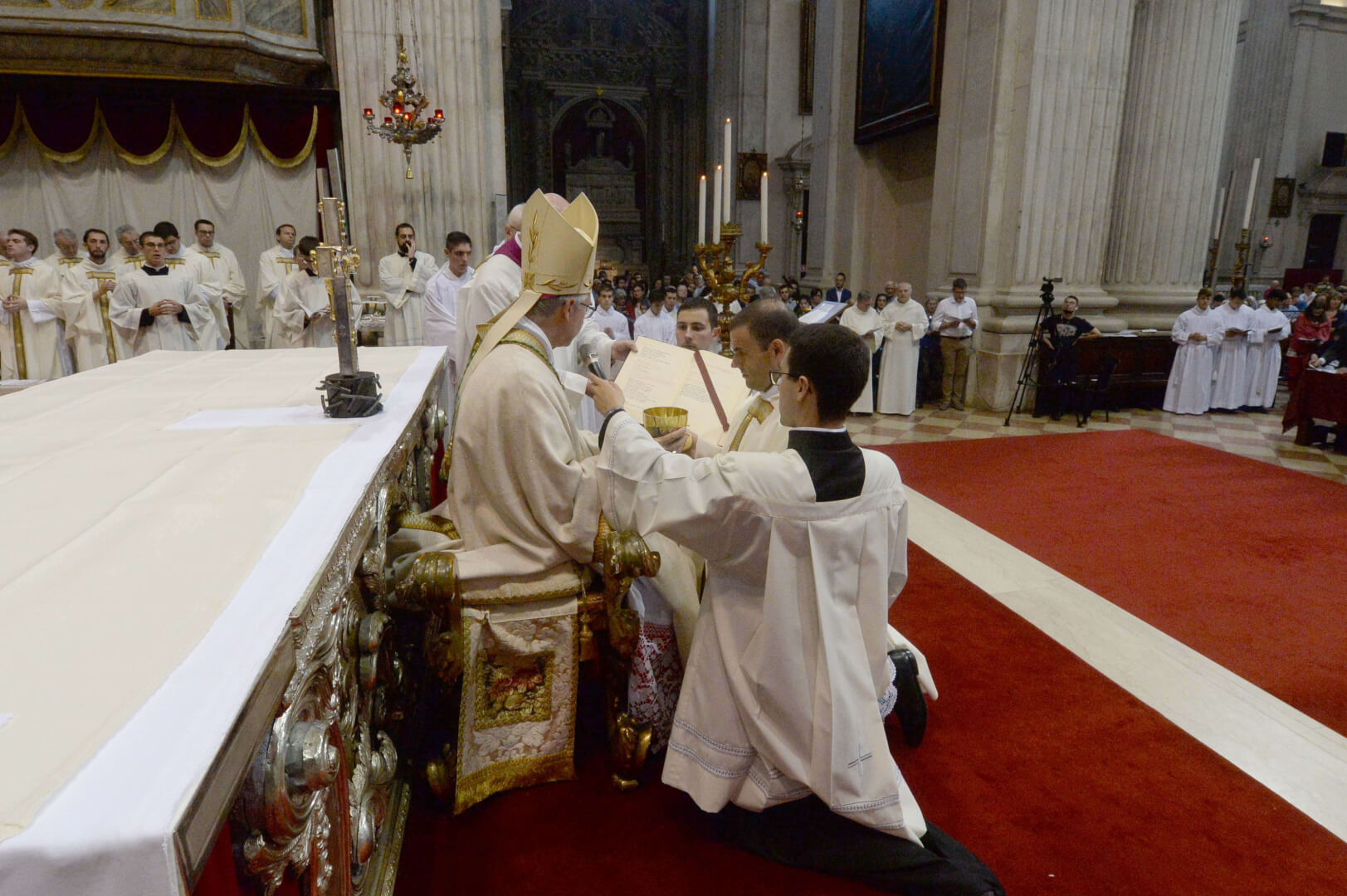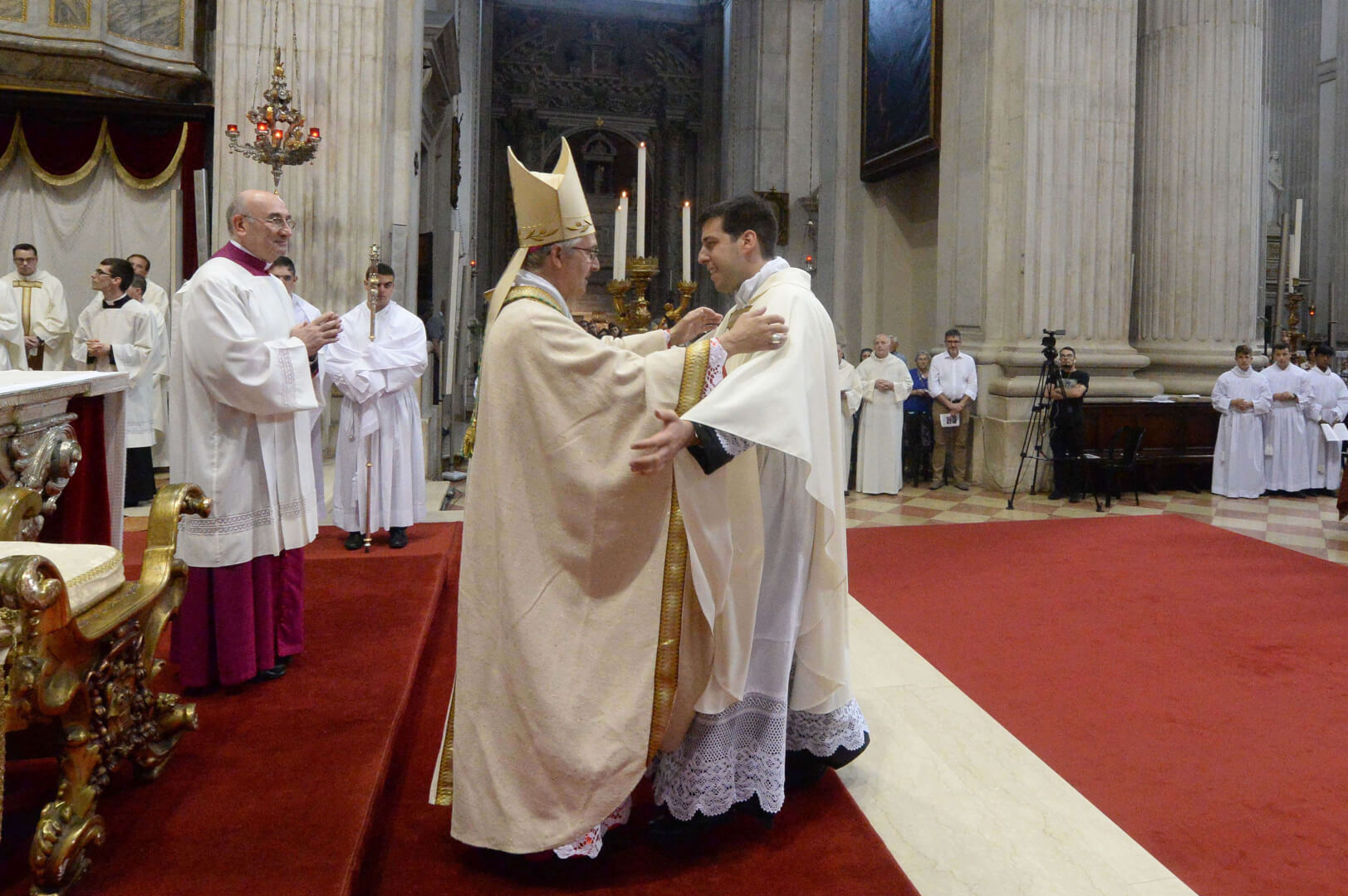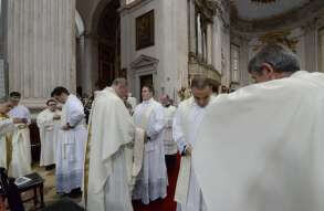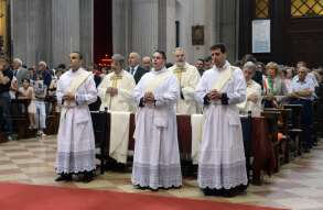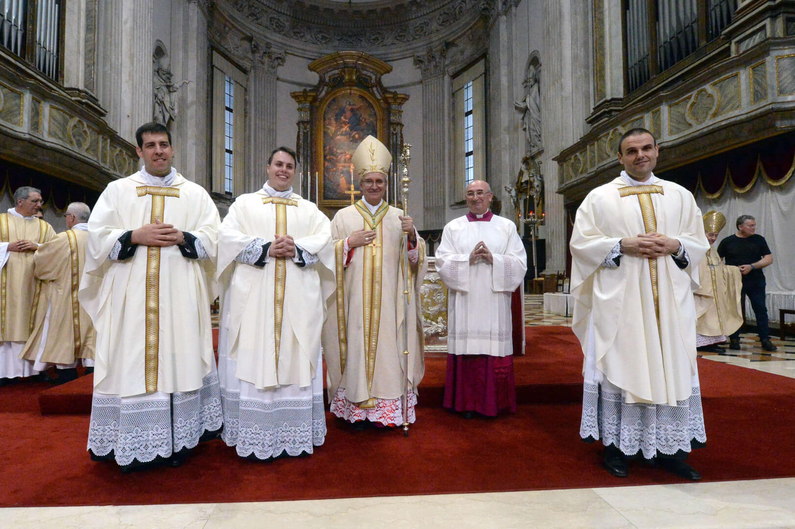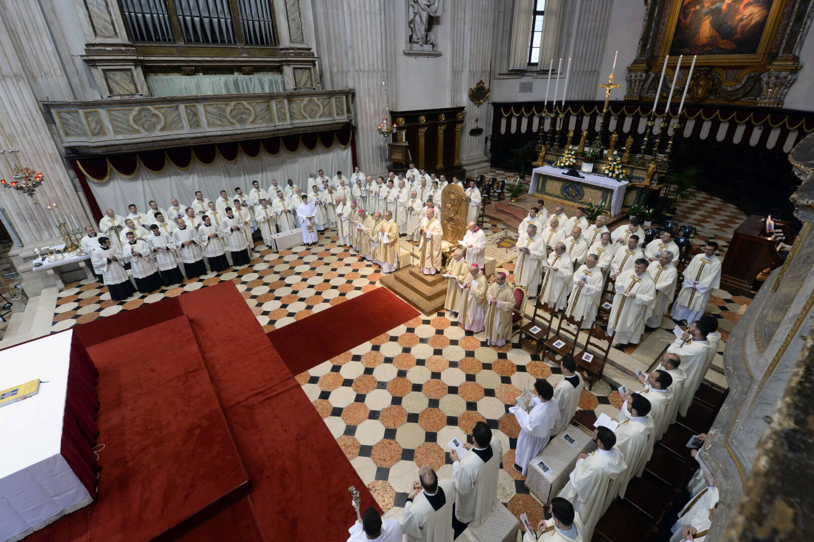 Le ordinazioni presbietrali in cattedrale di Lorenzo, Alex e Luca. Per l’imposizione delle mani e la preghiera del Vescovo la fragilità dell’umana natura di questi ragazzi, prostrata ai piedi dell’altare, si è levata inondata di Spirito Santo per il servizio di Dio, della Chiesa e degli uomini. Immenso è il mistero divino che incontra la carne umana! Don Lorenzo Bacchetta, don Alex Recami e don Luca Signori hanno messo la loro umanità nelle mani del Signore. Con loro sono in festa anche le rispettive comunità.