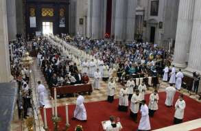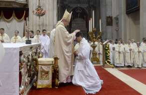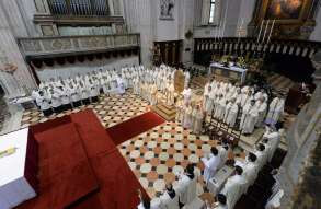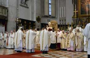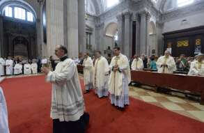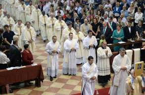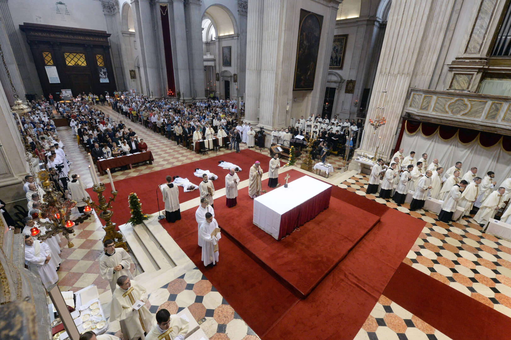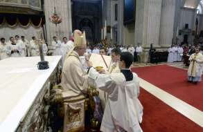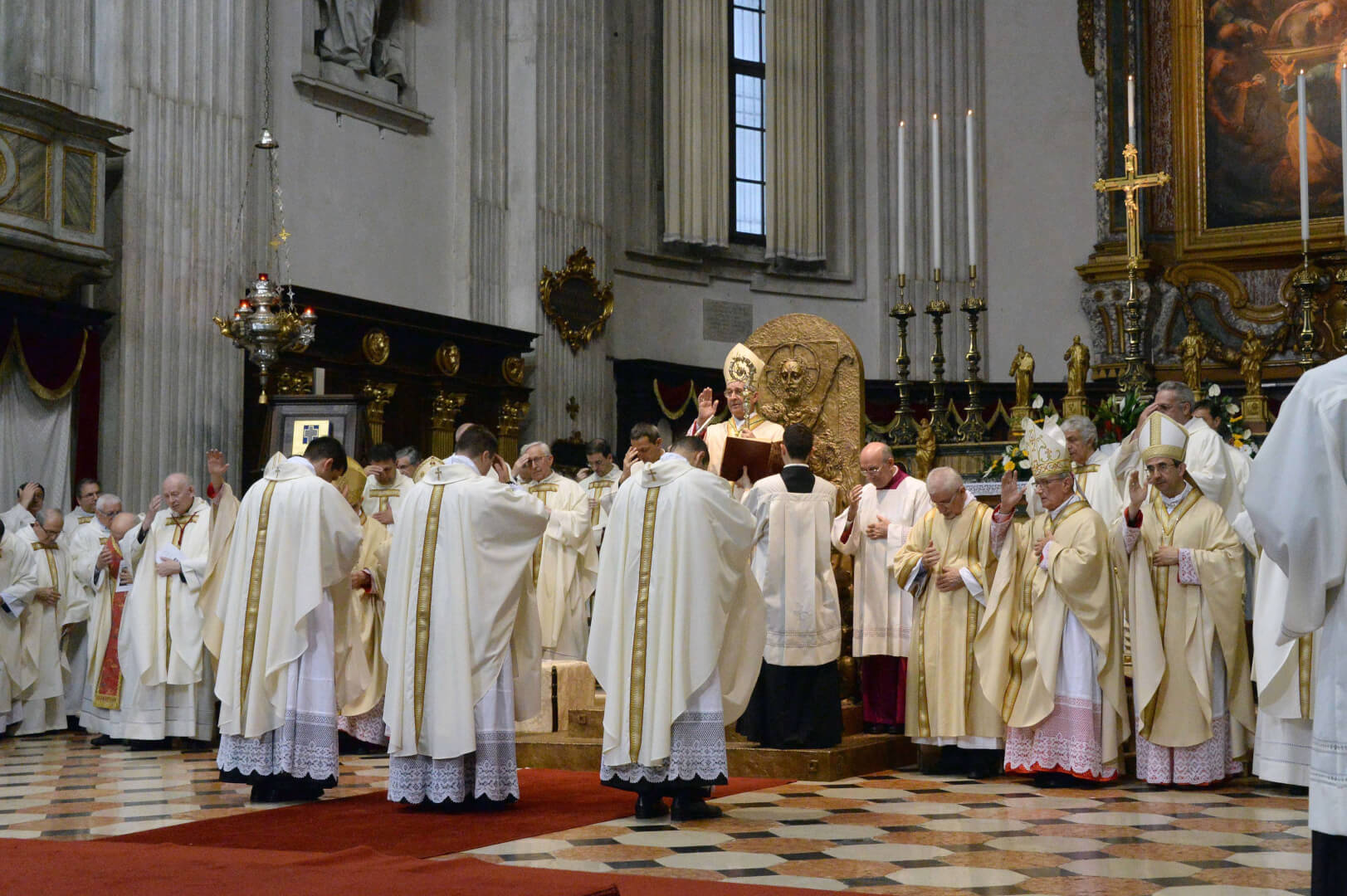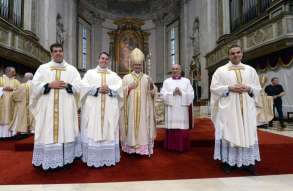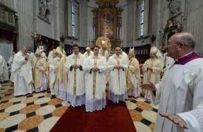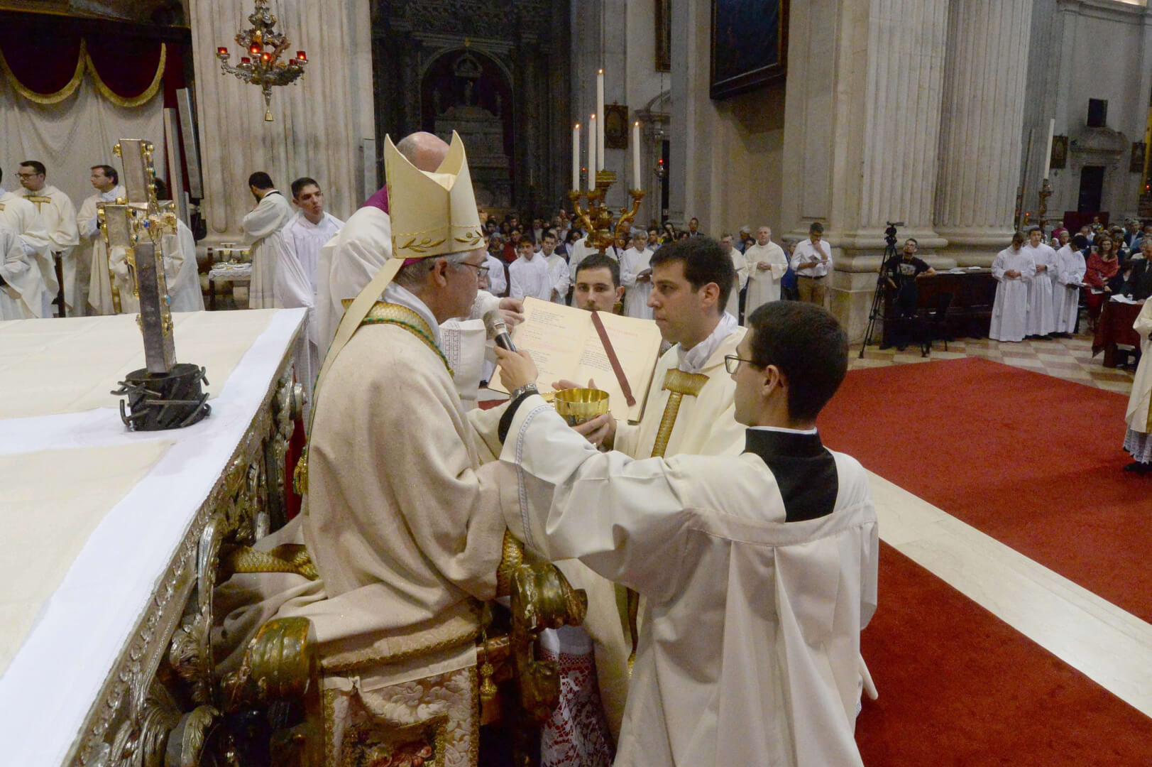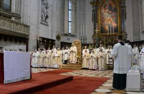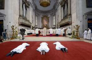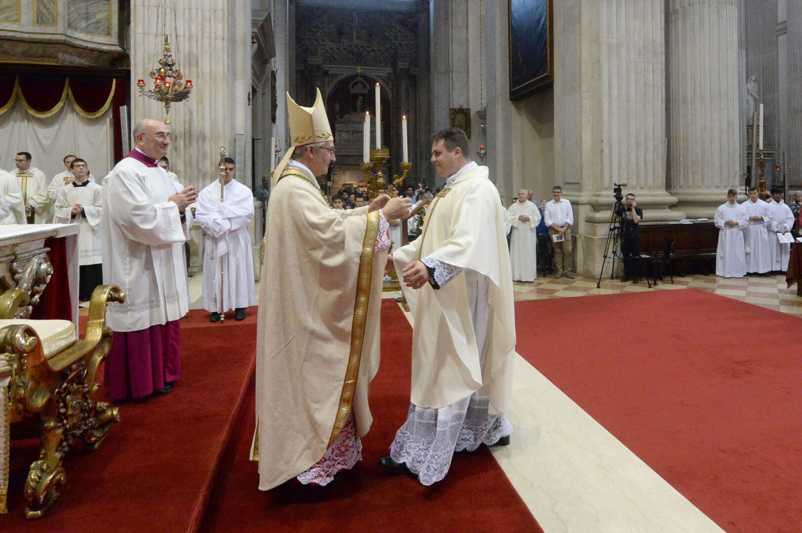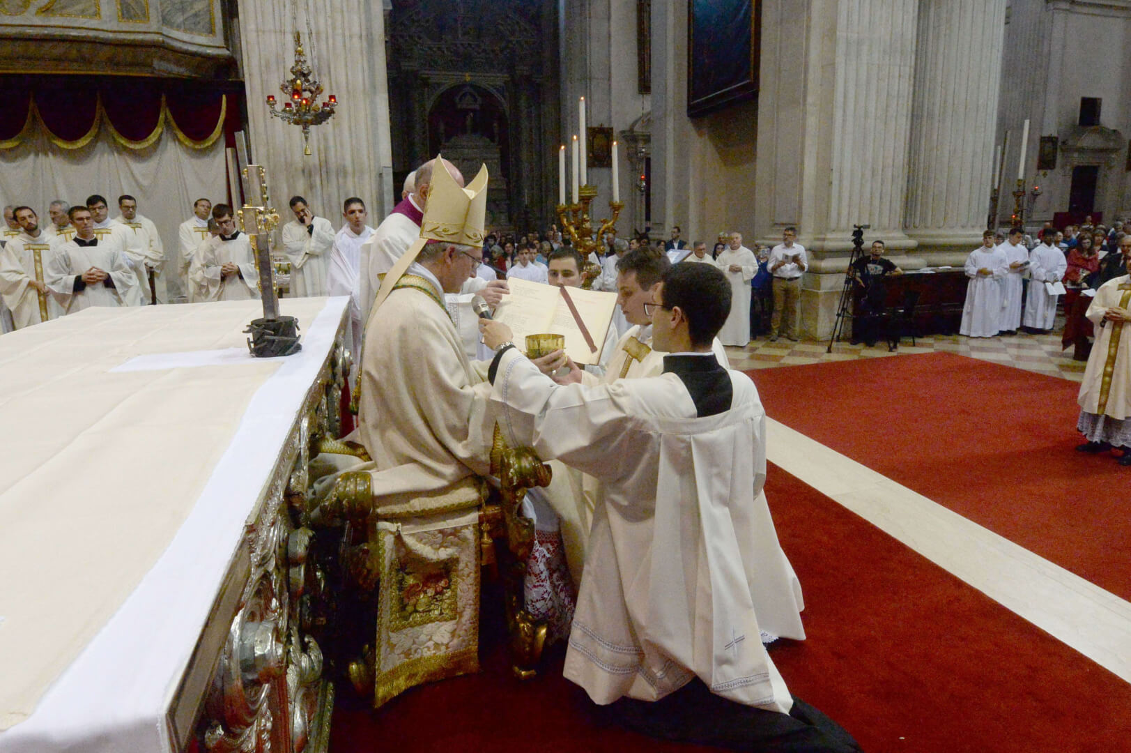 Le ordinazioni presbietrali in cattedrale di Lorenzo, Alex e Luca. Per l’imposizione delle mani e la preghiera del Vescovo la fragilità dell’umana natura di questi ragazzi, prostrata ai piedi dell’altare, si è levata inondata di Spirito Santo per il servizio di Dio, della Chiesa e degli uomini. Immenso è il mistero divino che incontra la carne umana! Don Lorenzo Bacchetta, don Alex Recami e don Luca Signori hanno messo la loro umanità nelle mani del Signore. Con loro sono in festa anche le rispettive comunità.