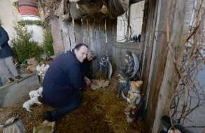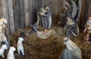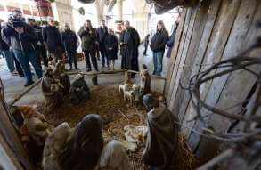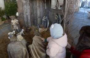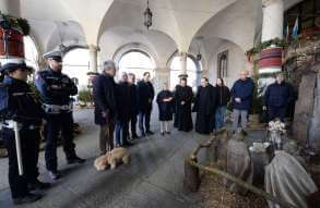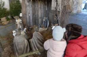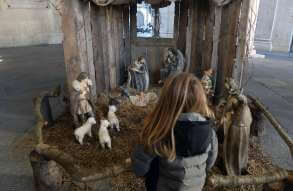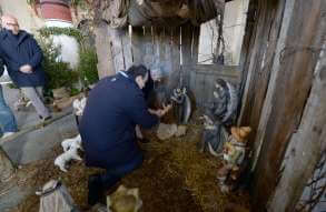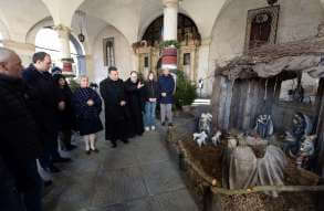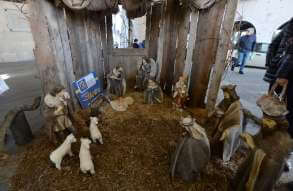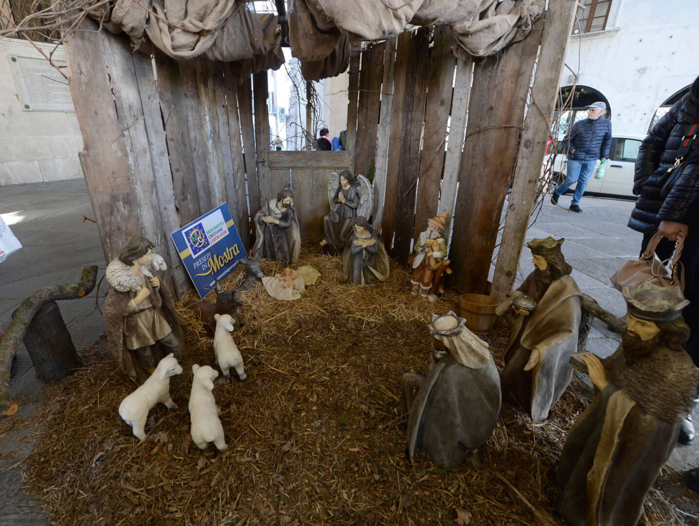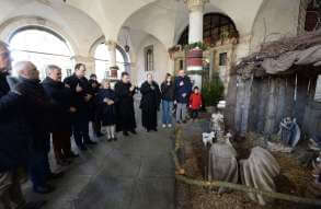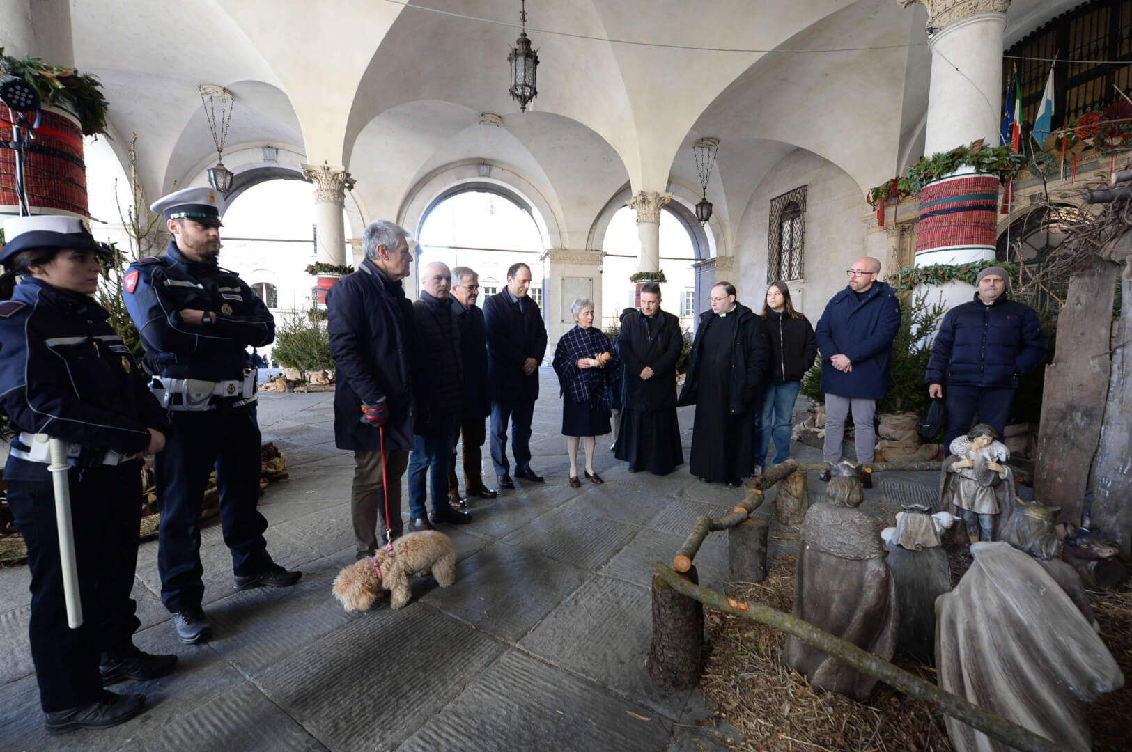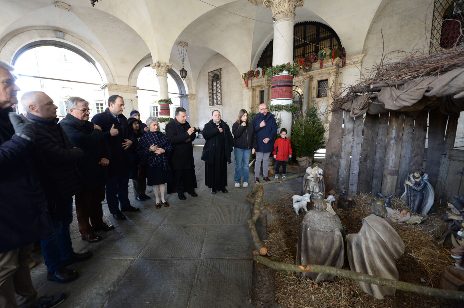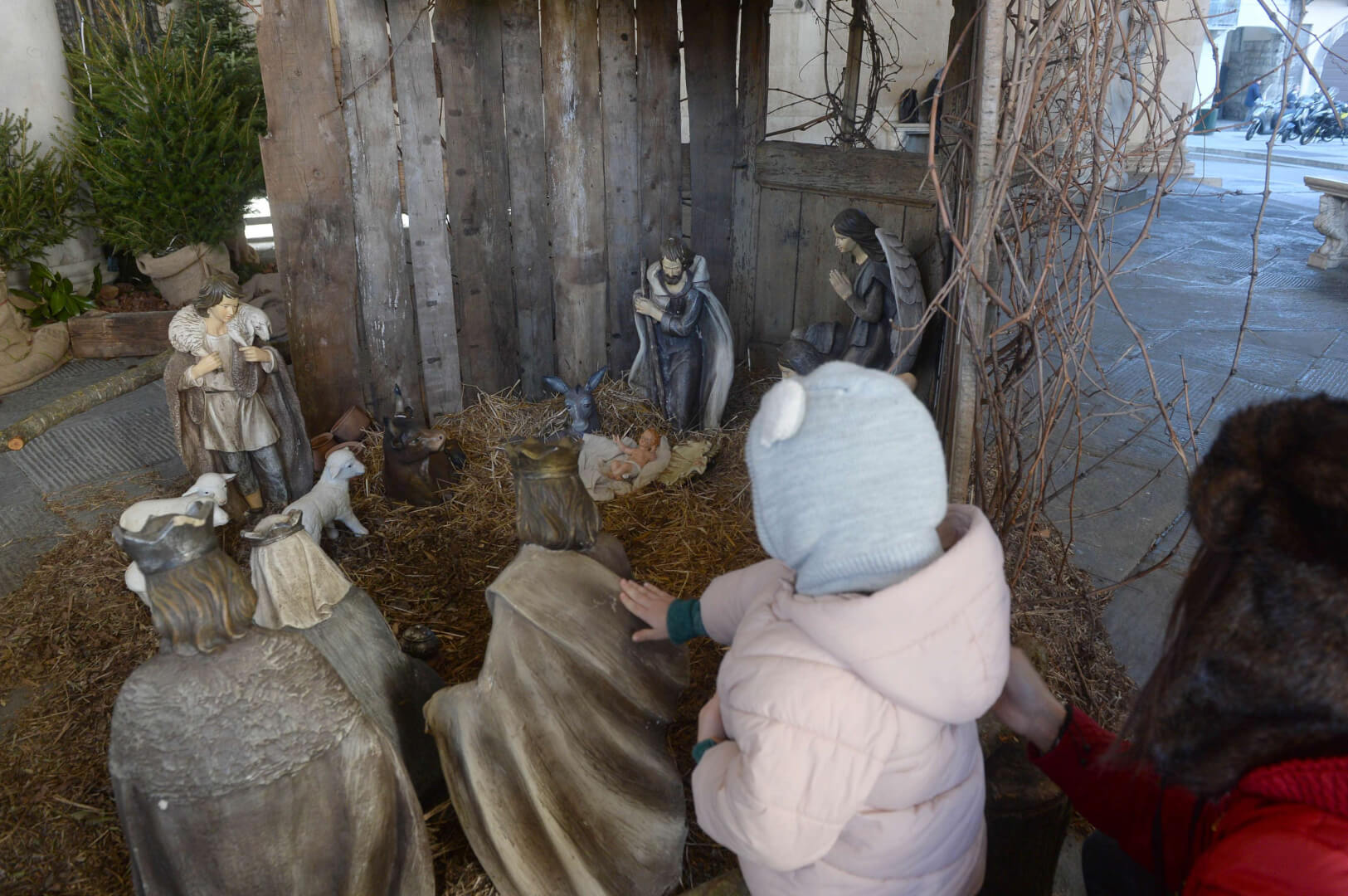 Sotto il porticato di Palazzo Loggia la posa del Bambino Gesù nel presepe allestito dal Movimento Cristiano Lavoratori