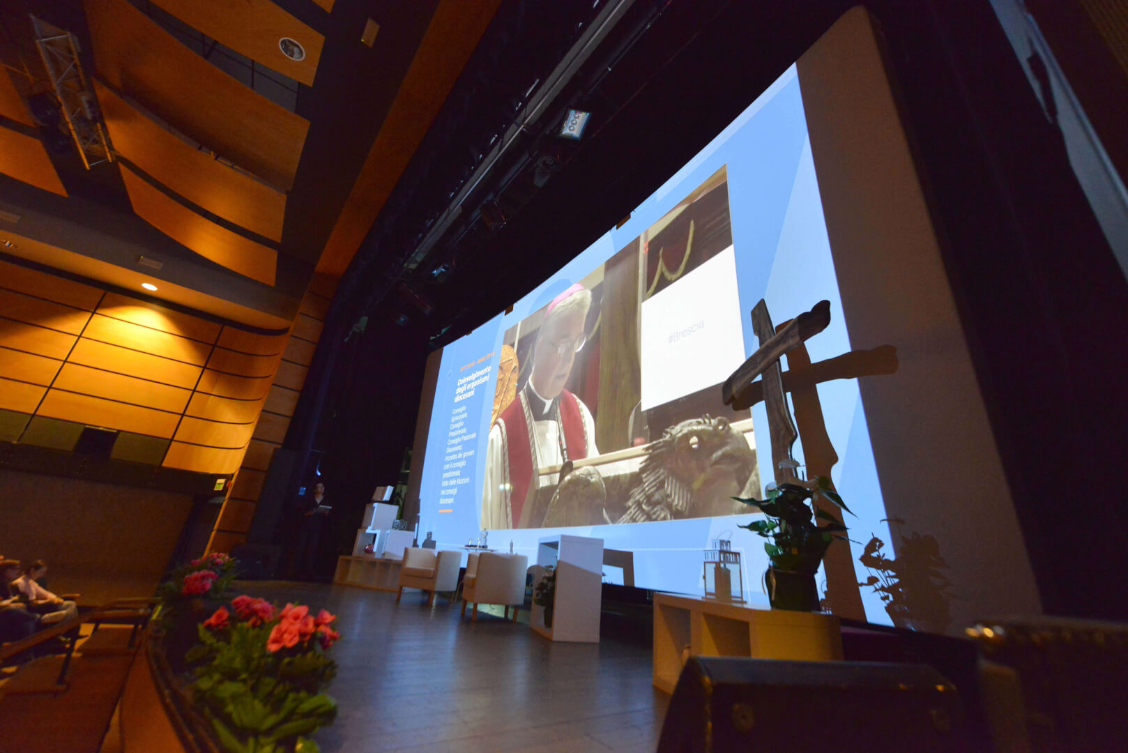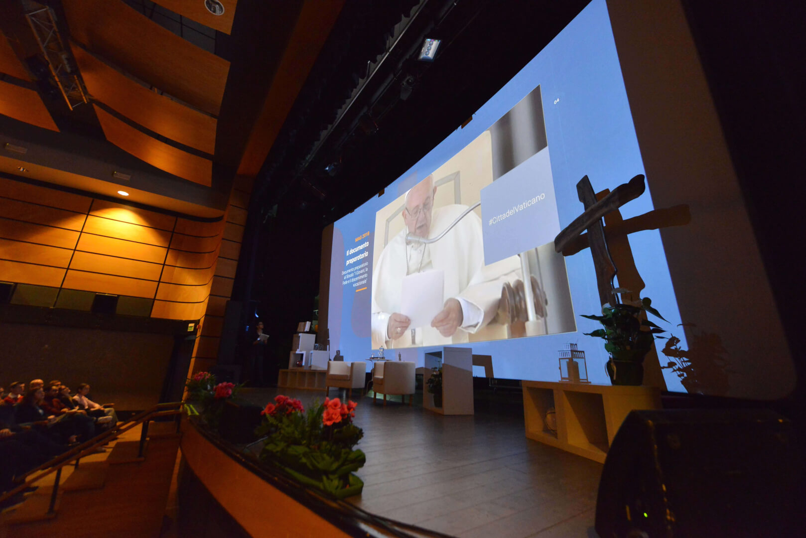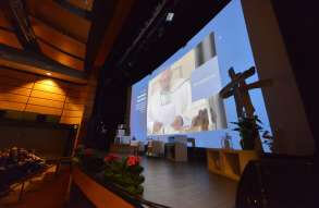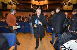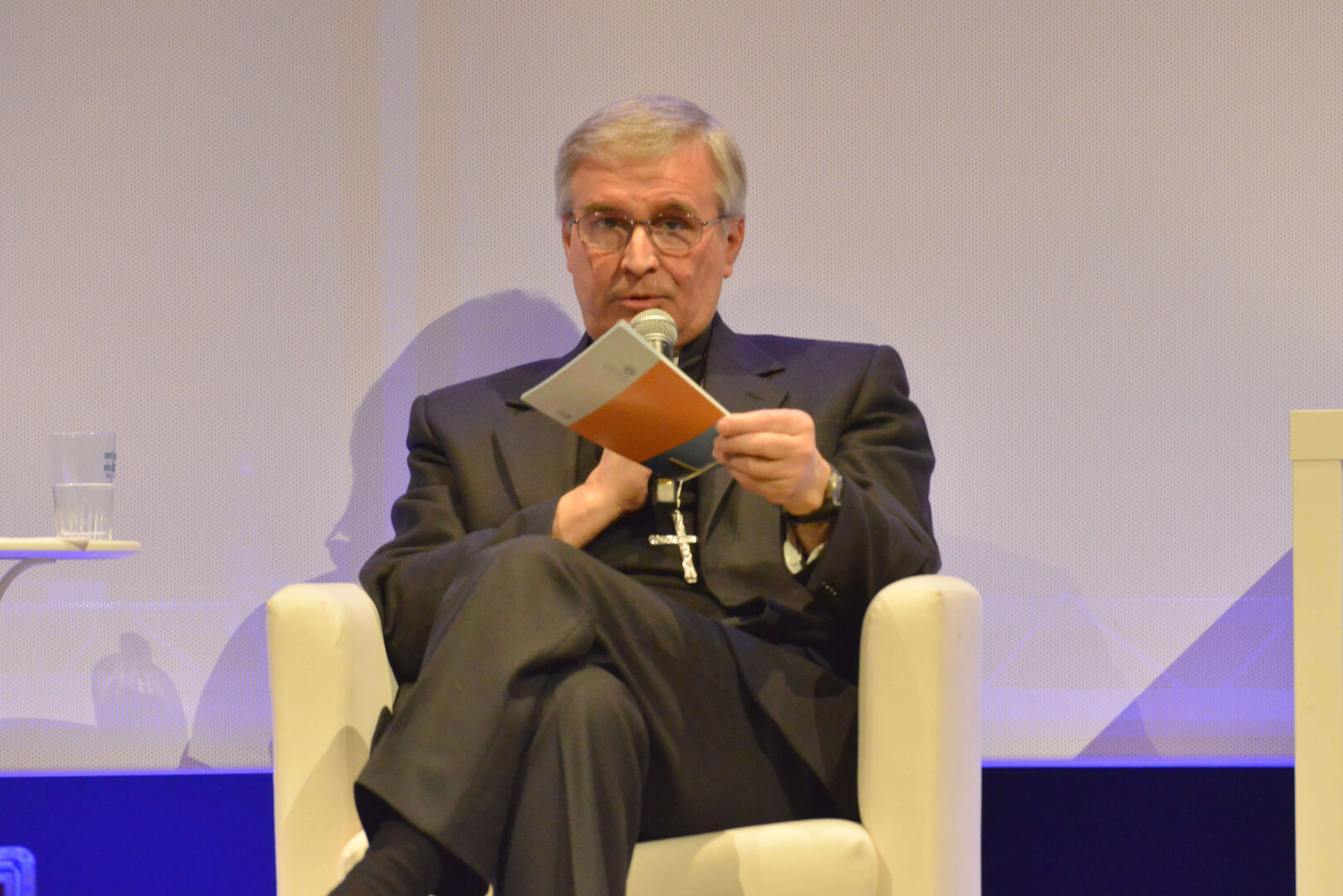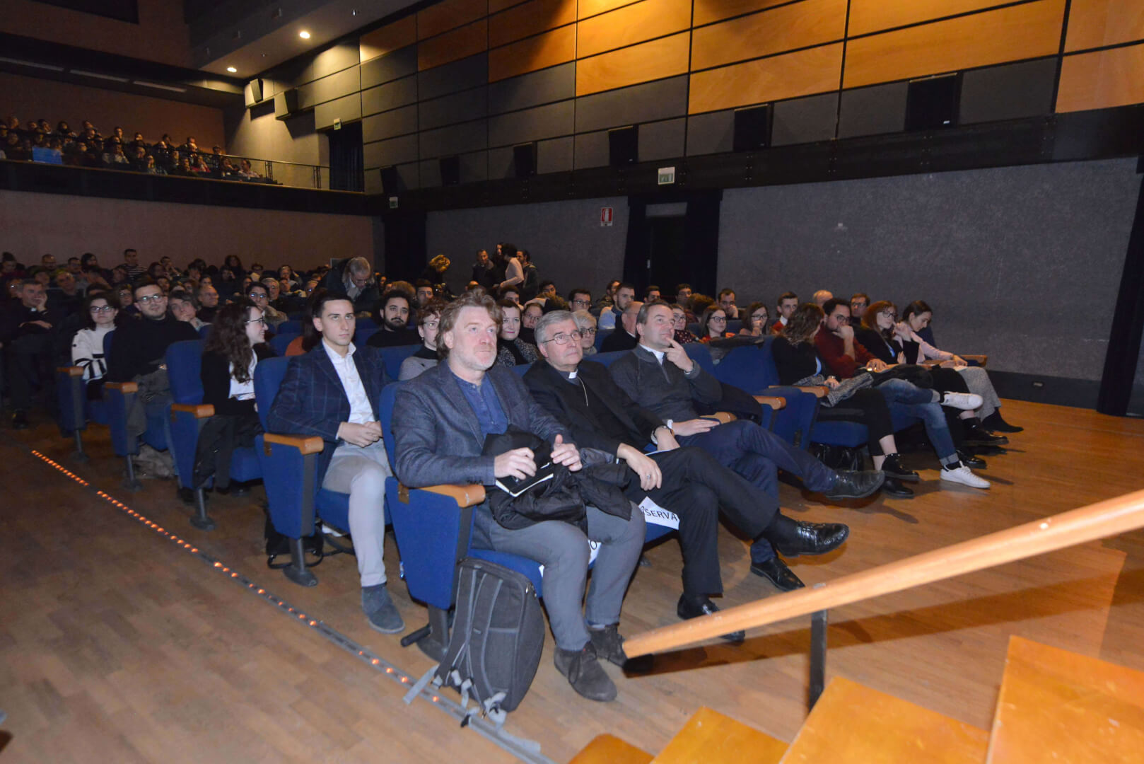 Il vescovo Pierantonio Tremolada, nella sala della comunità del Villaggio Prealpino, per la consegna delle linee diocesane di pastorale giovanile