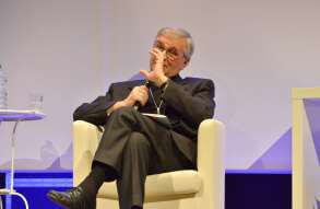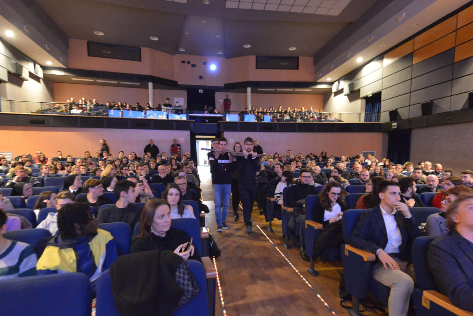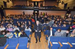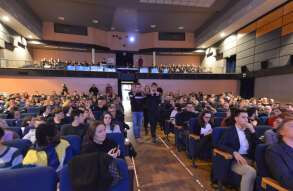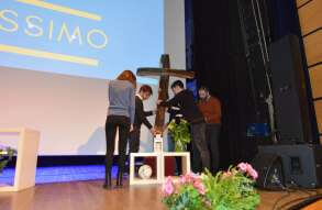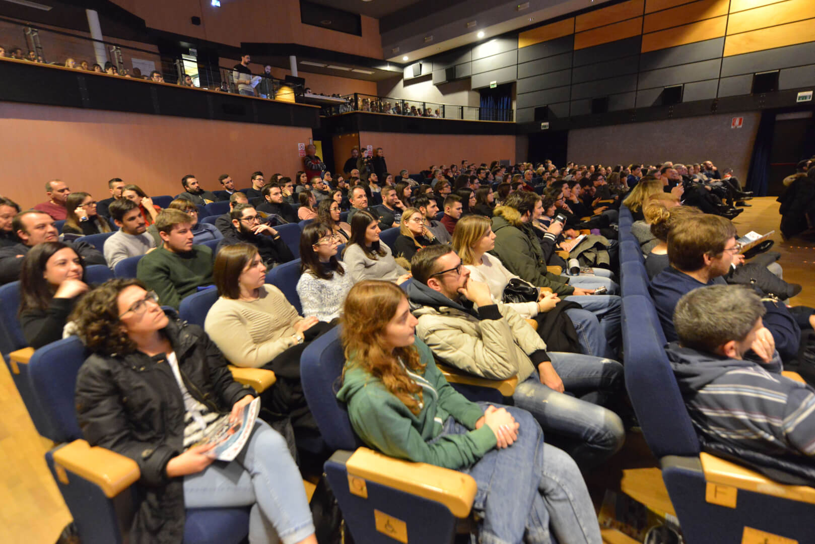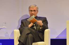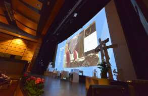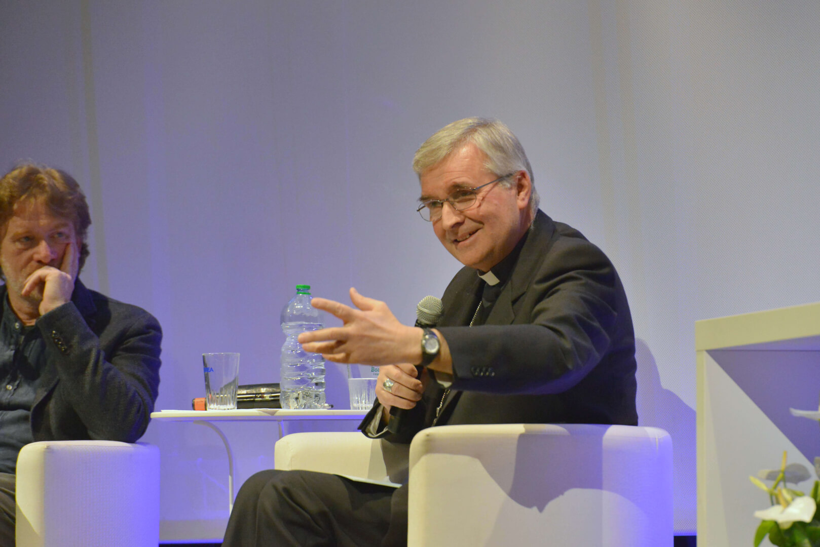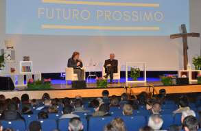 Il vescovo Pierantonio Tremolada, nella sala della comunità del Villaggio Prealpino, per la consegna delle linee diocesane di pastorale giovanile