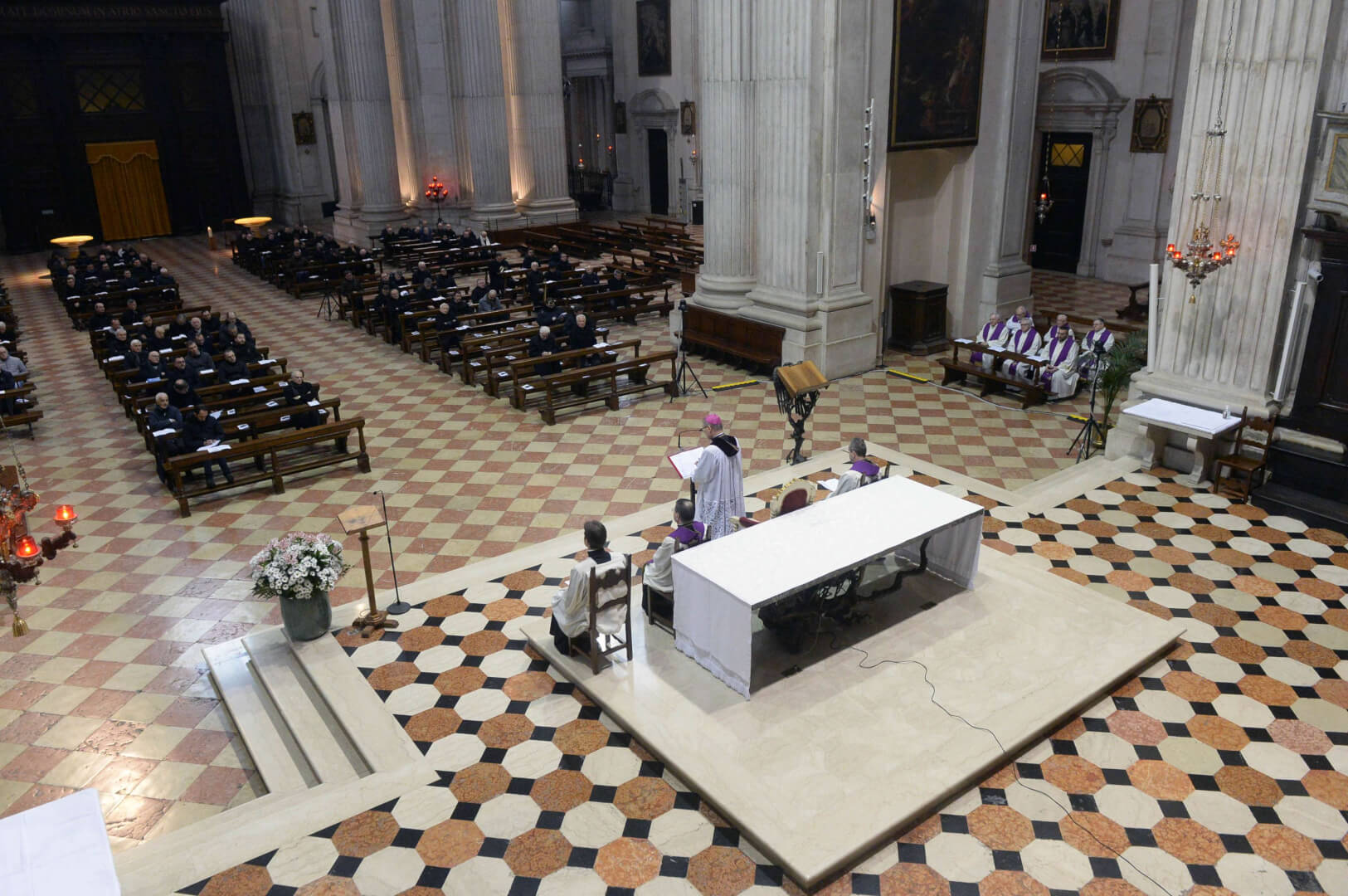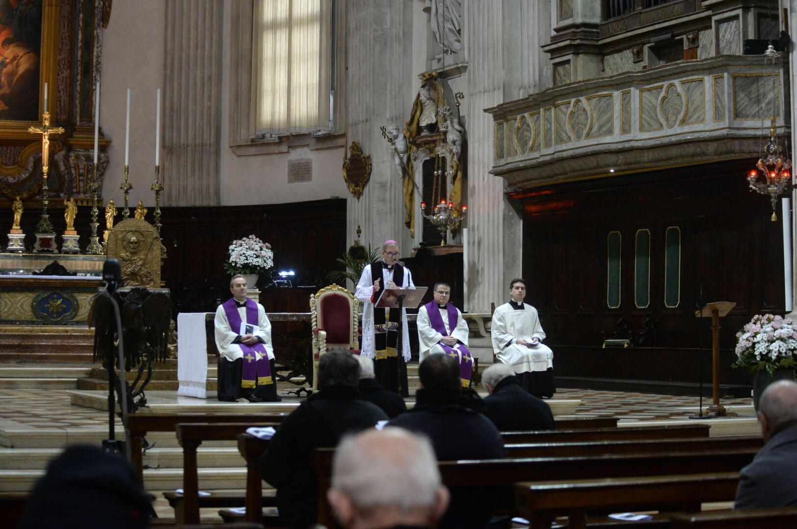 In Cattedrale il vescovo Pierantonio ha guidato la celebrazione penitenziale per i sacerdoti. La meditazione del Vescovo è stata seguita a distanza anche a Barbarano e a Bienno