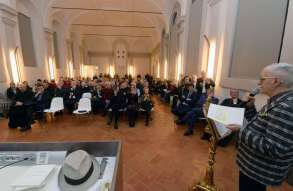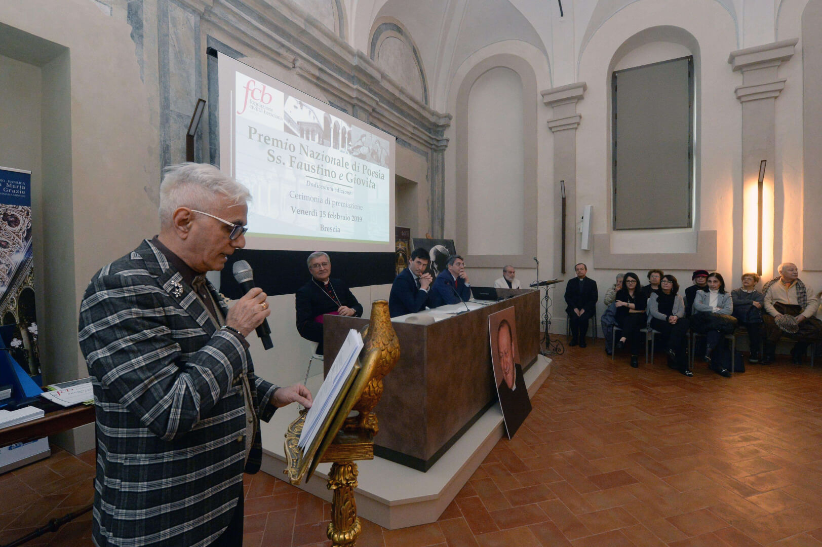 Nel salone della Basilica delle Grazie, il vescovo Pierantonio alla consegna del Premio Santi Faustino e Giovita, concorso di poesia dialettale, a cura della Fondazione Civiltà bresciana