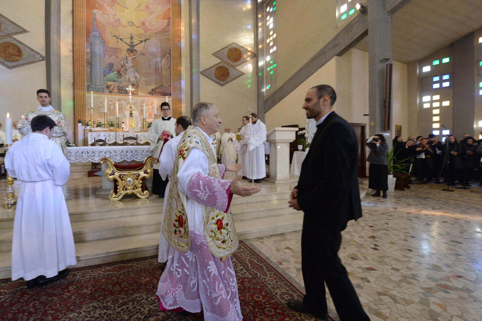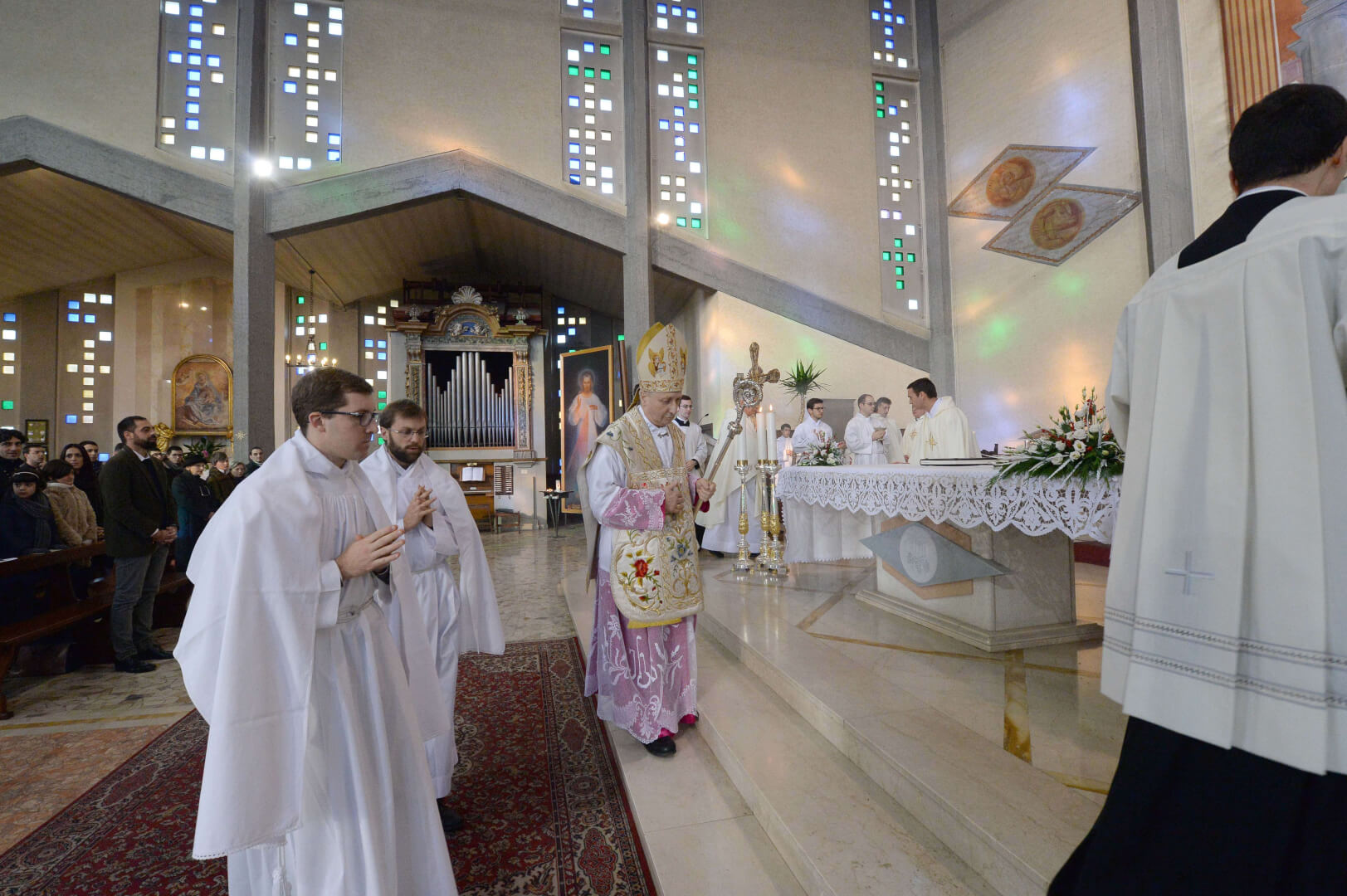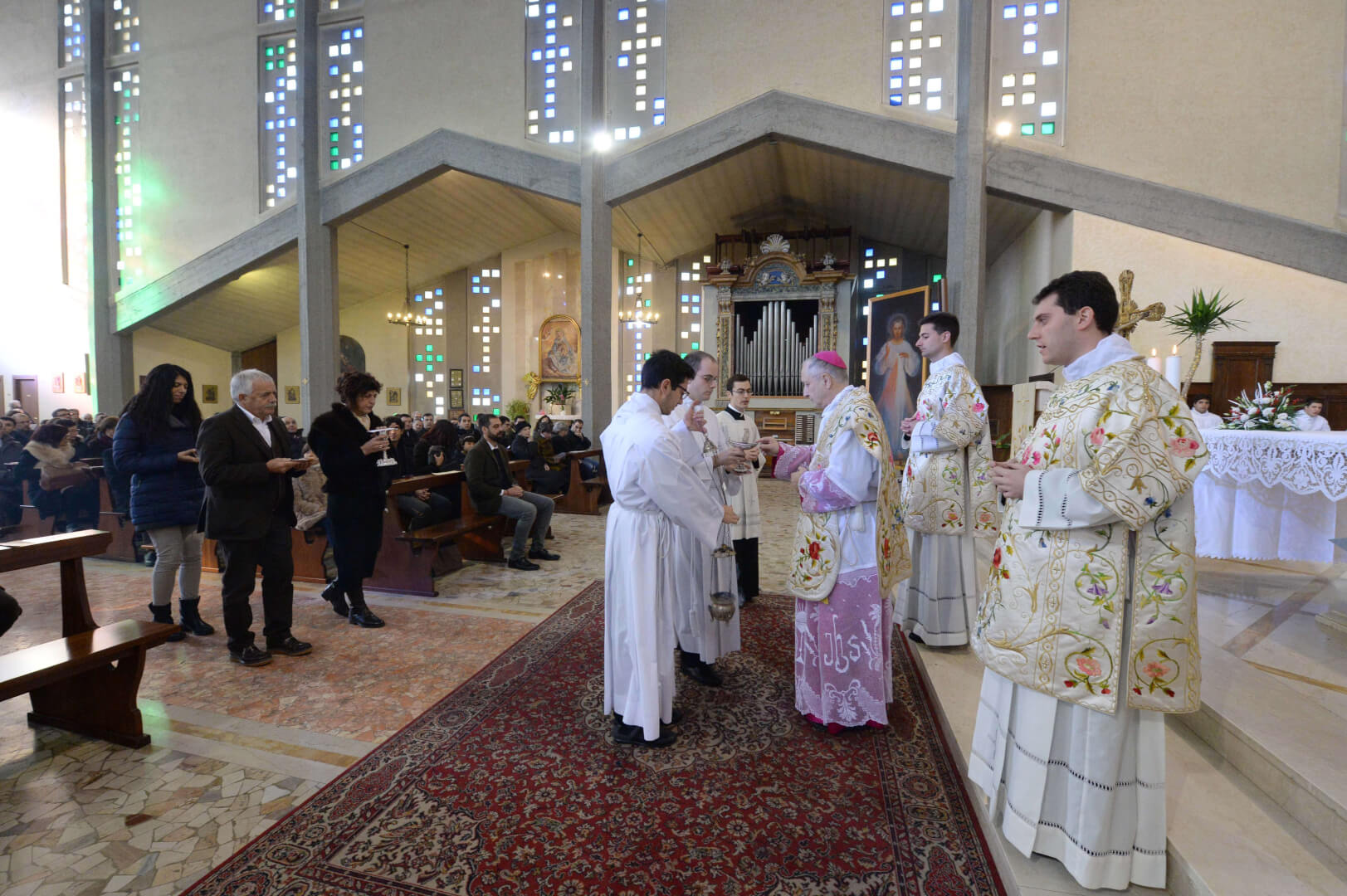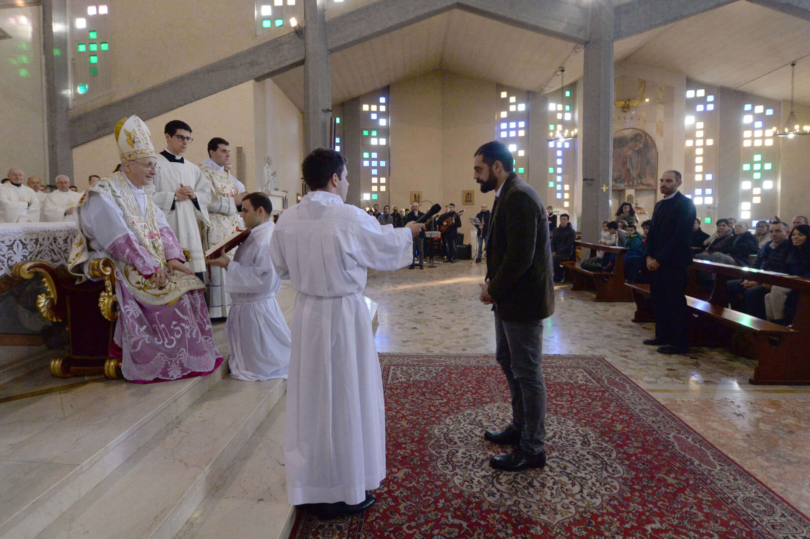 Giovedì 8 nella chiesa di San Bartolomeo il vescovo Monari ha presieduto il rito di ammissione al diaconato e al presbiterato di Nicola Mossi (quarta teologia e originario della parrocchia di Leno) e di Stefano Pesce (originario di Montichiari, è un seminarista della Comunità Missionaria di Villaregia)