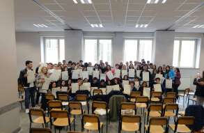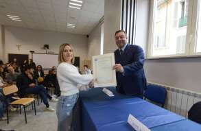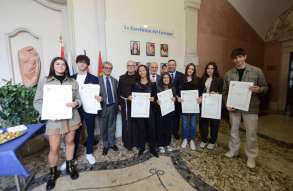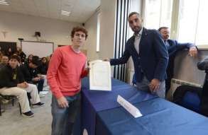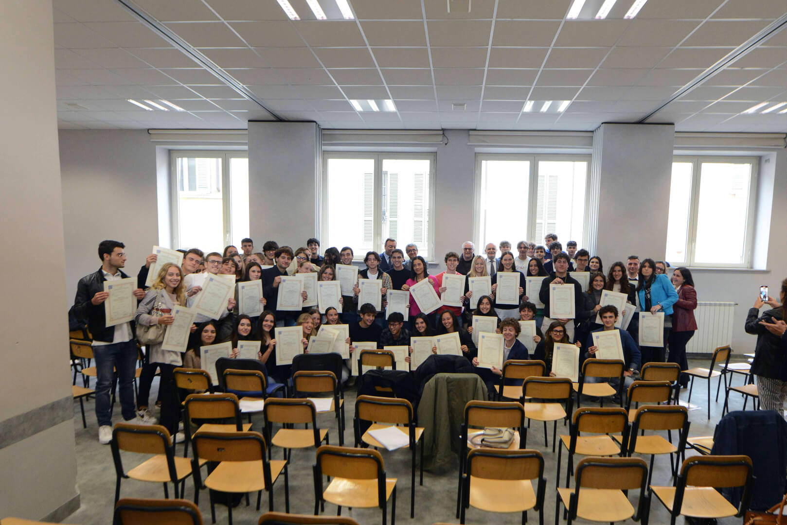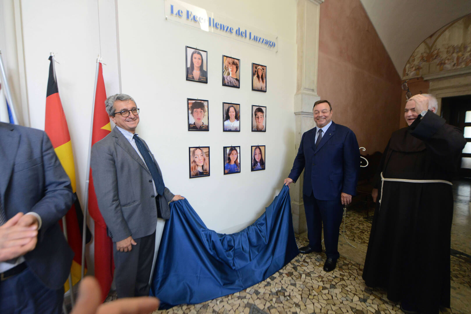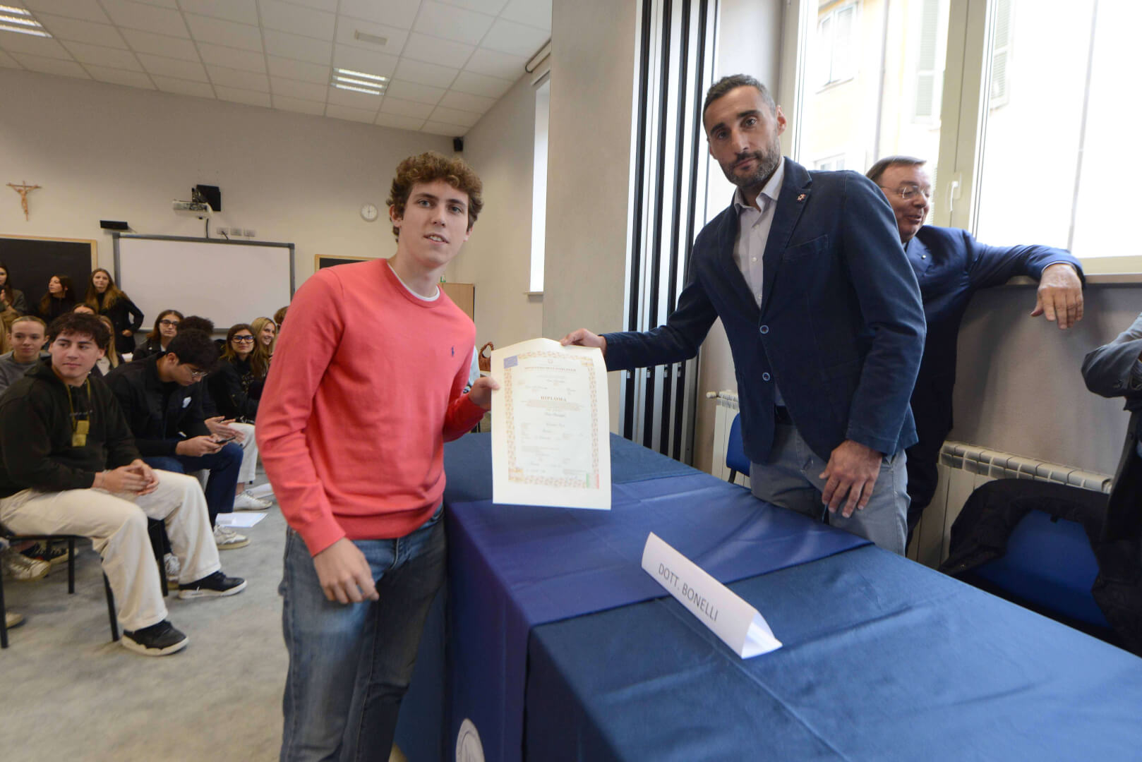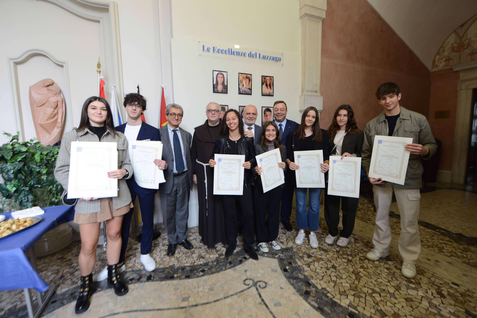 La cerimonia di premiazione delle eccellenze del Luzzago, i migliori diplomati 2022, insieme a Marco Bonometti, presidente della Fondazione Olgiati Luzzago, e a Giuseppe Bonelli, dirigente dell’Ufficio scolastico territoriale di Brescia