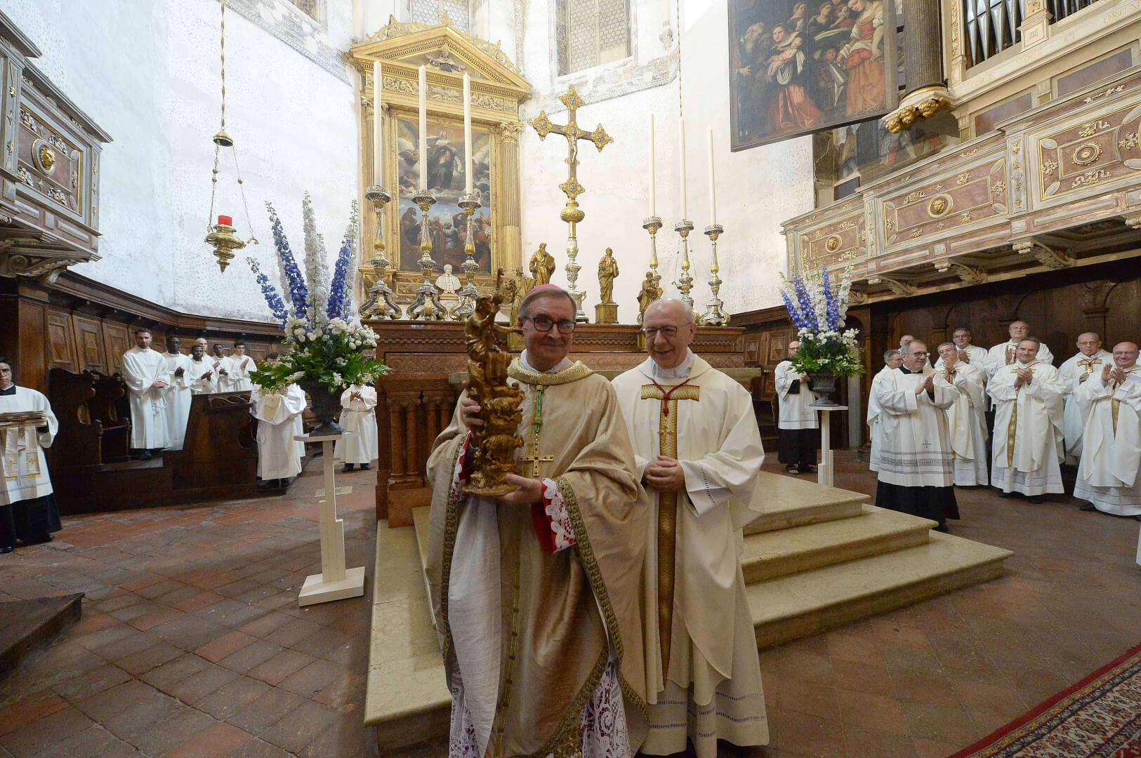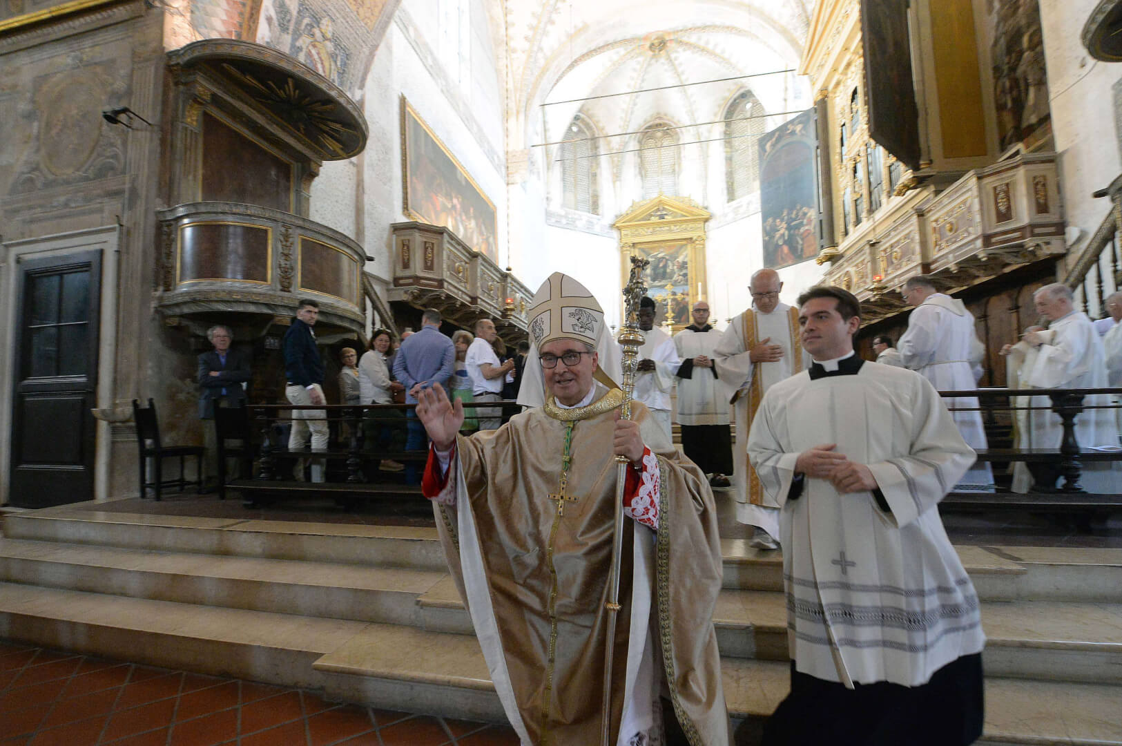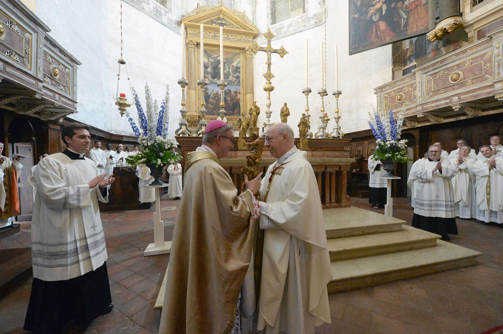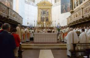 In occasione dei 10 anni dall’ordinazione episcopale, mons. Pierantonio Tremolada ha presieduto, nel giorno del Sacro Cuore, la Messa in Duomo Vecchio. Al termine della celebrazione, il vicario generale, mons. Fontana, ha donato a nome della Diocesi una scultura di Federico Severino al Vescovo