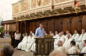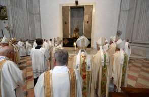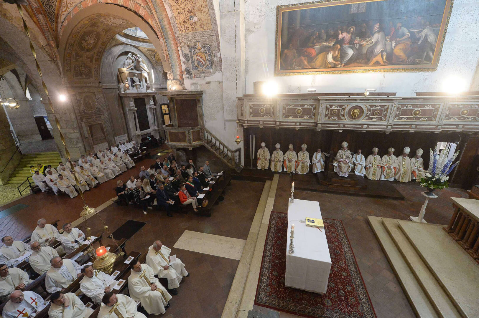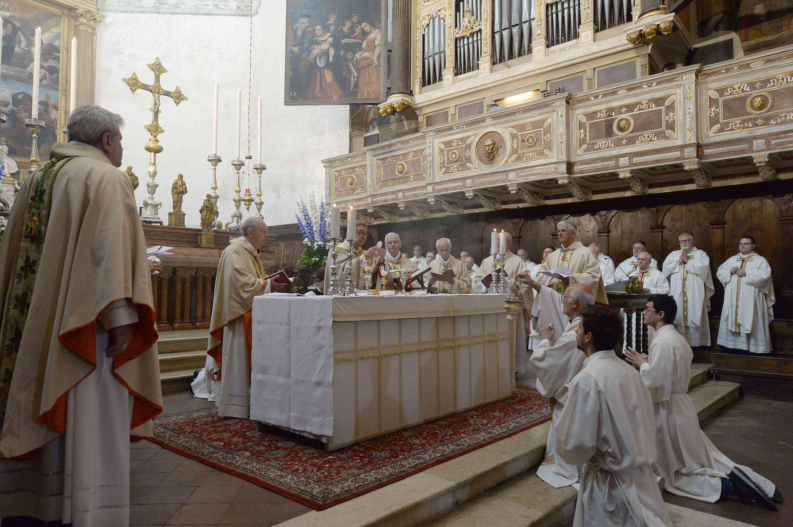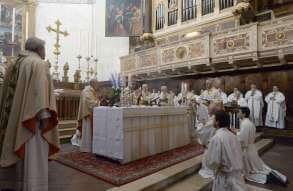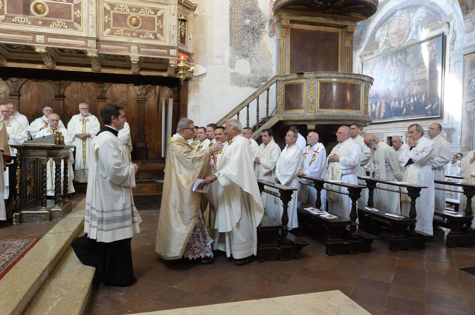 In occasione dei 10 anni dall’ordinazione episcopale, mons. Pierantonio Tremolada ha presieduto, nel giorno del Sacro Cuore, la Messa in Duomo Vecchio. Al termine della celebrazione, il vicario generale, mons. Fontana, ha donato a nome della Diocesi una scultura di Federico Severino al Vescovo