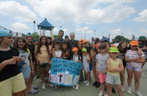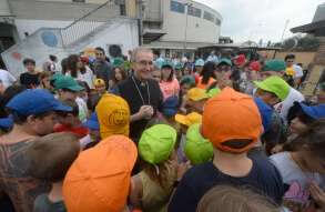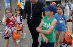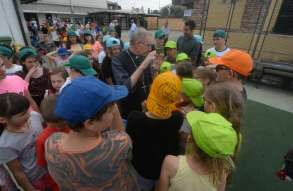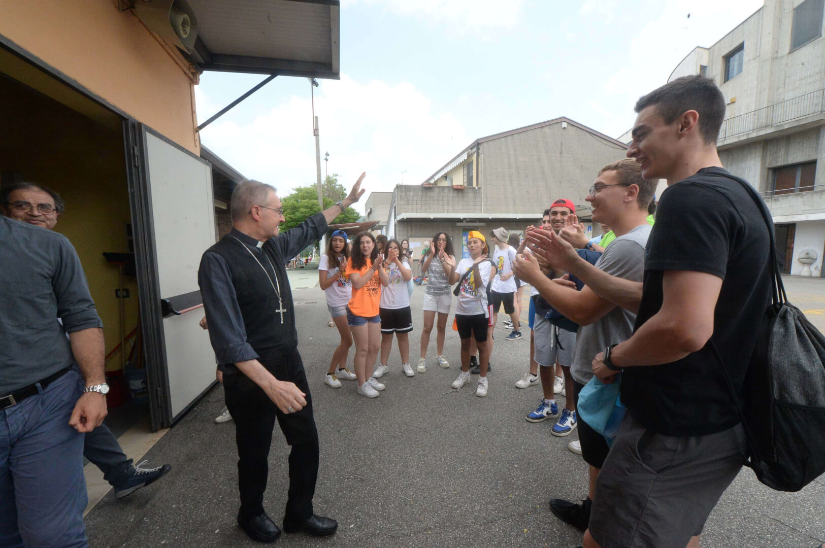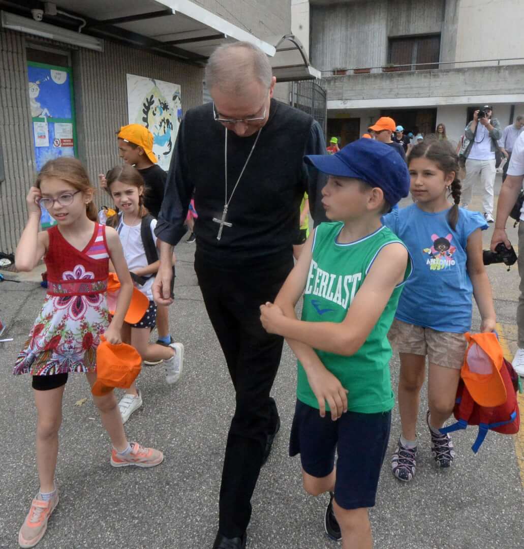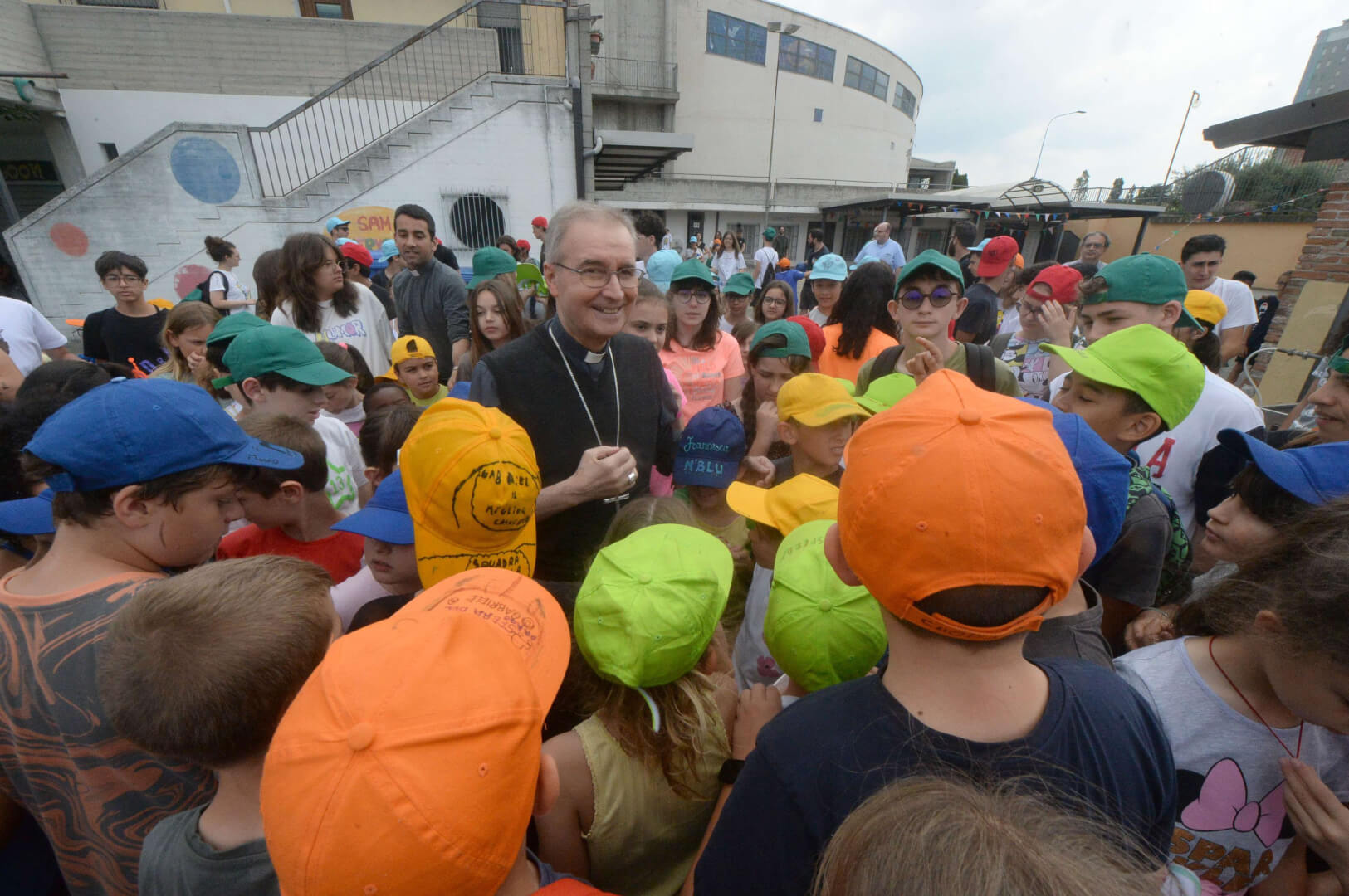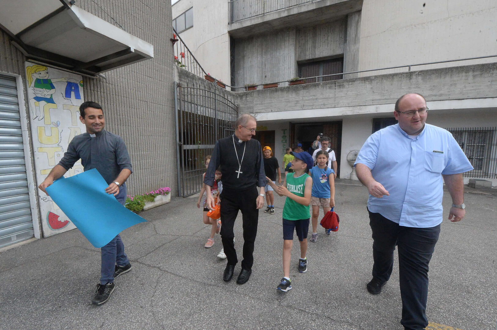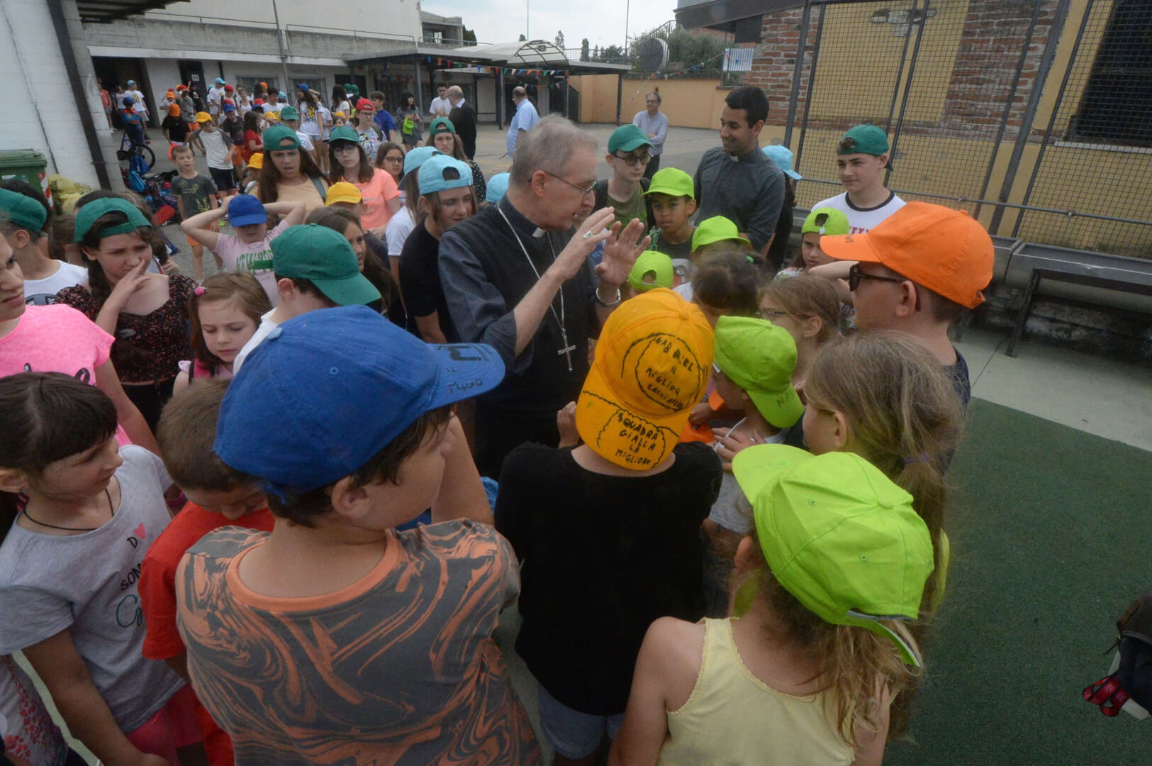 Il Vescovo Pierantonio in visita all'oratorio cittadino di Sant'Angela Merici per incontrare i ragazzi, gli animatori e i collaboratori del grest