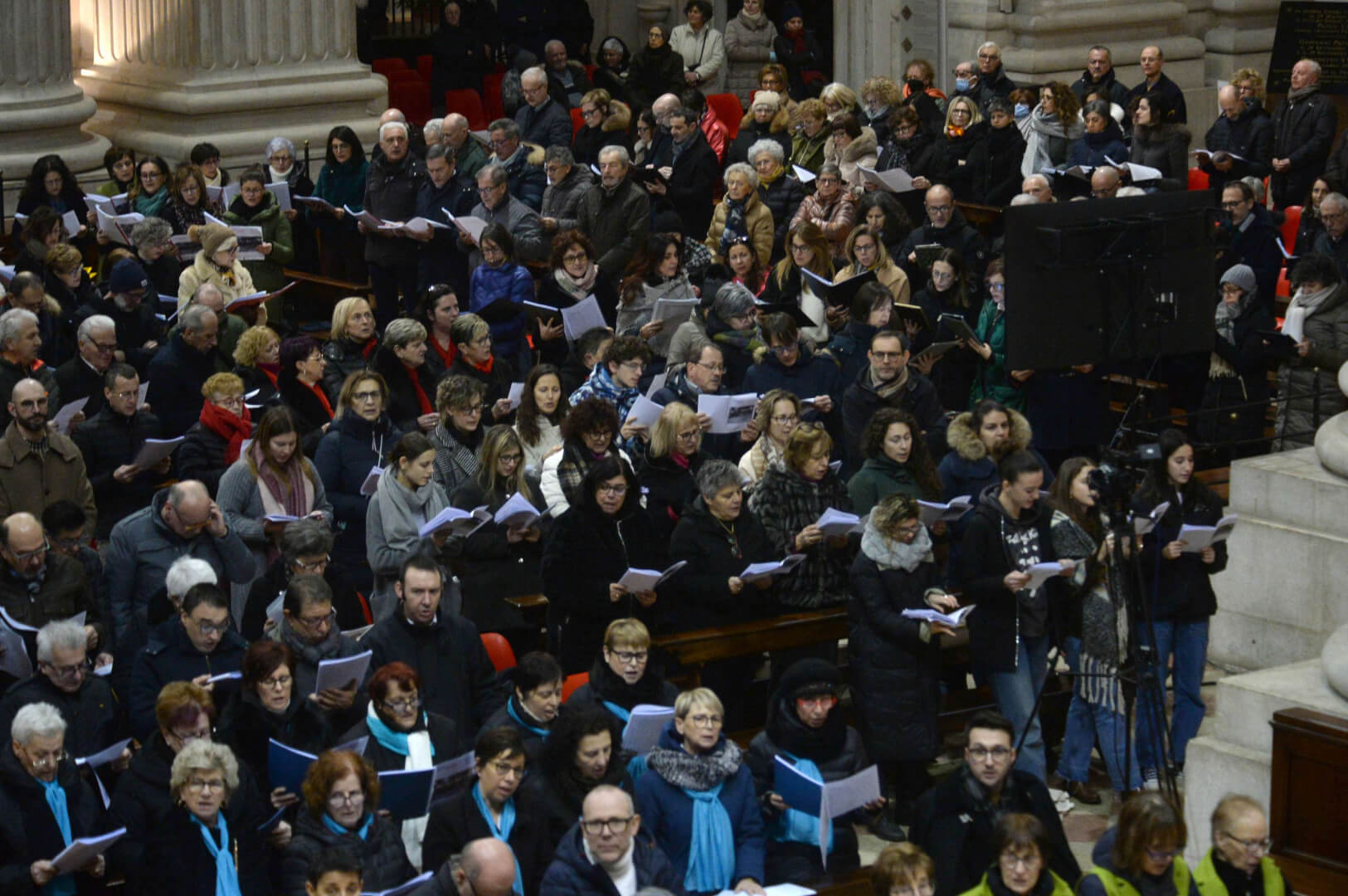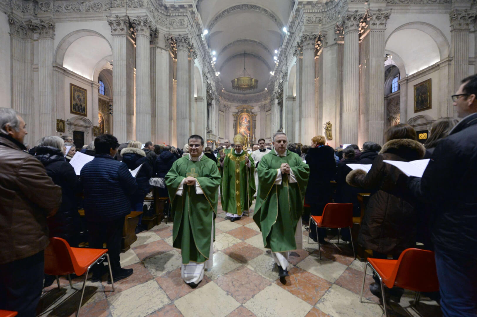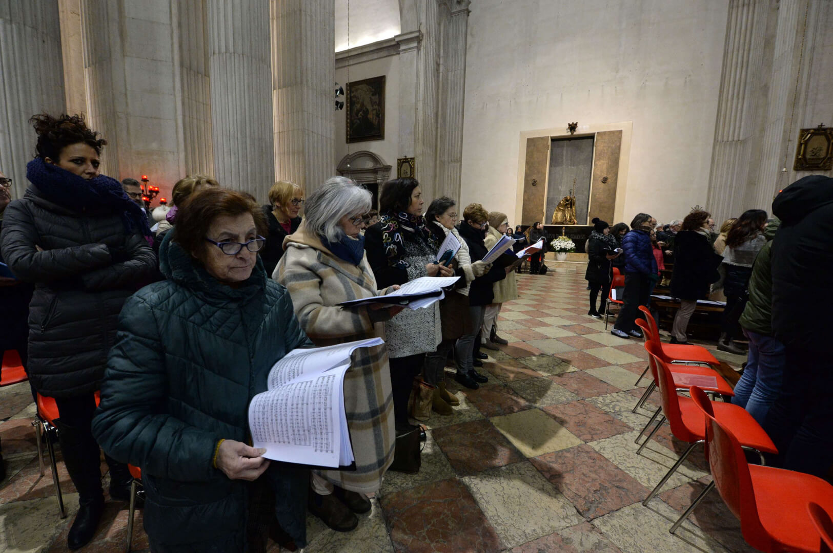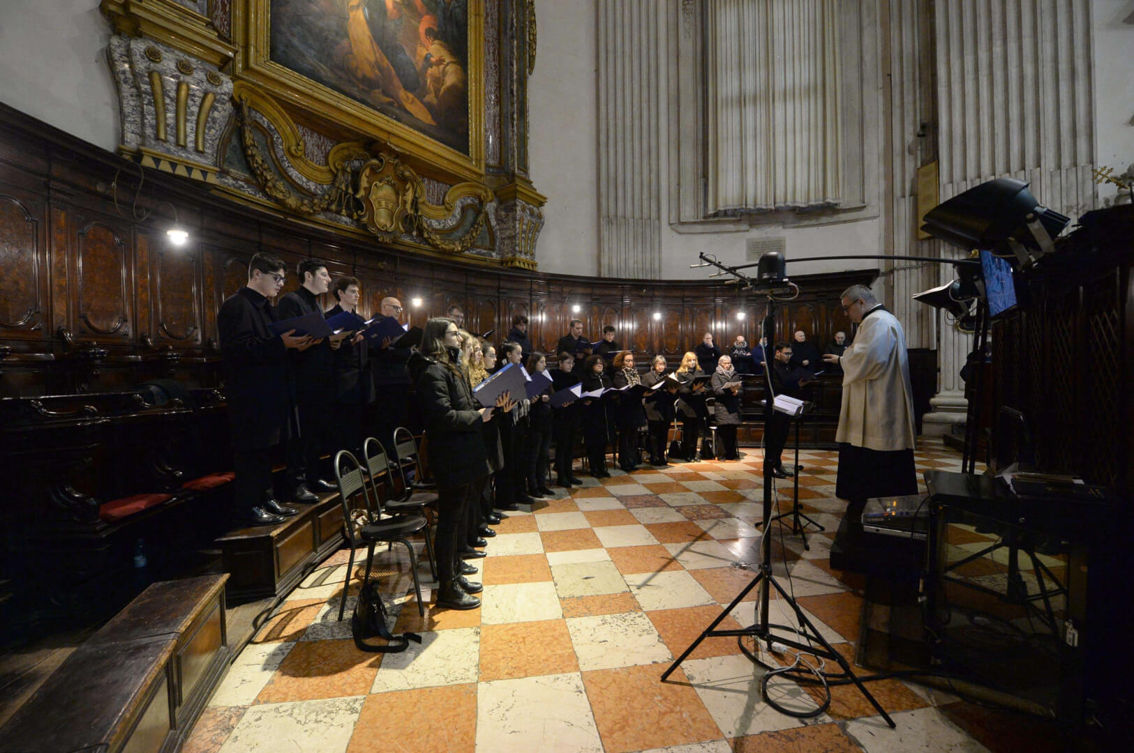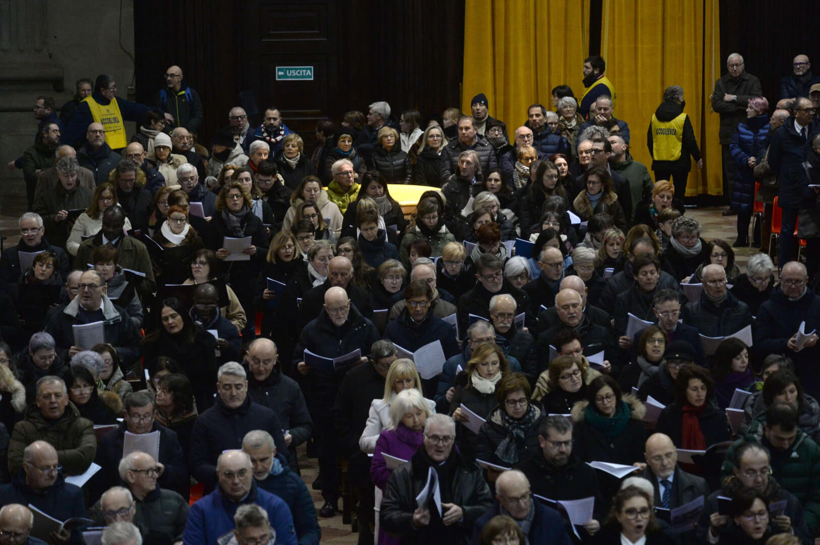 Domenica 21 gennaio, in Cattedrale, il vescovo Pierantonio Tremolada ha presieduto la Santa Messa con i cori parrocchiali e gli operatori liturgico-musicali della Diocesi. Più di 900 i coristi. Il repertorio ha compreso alcuni brani in memoria della messa del 1998 e altri nuovi degli autori: Maurice Duruflé, Edward Elgar, Giancarlo Facchinetti, Giulio Tonelli e Roberto Soldati. I brani dell’ordinario (Kyrie, Gloria, Credo, Sanctus, Agnus Dei) erano in prima esecuzione. È stata realizzata per la prima volta la “Messa Arcaica” in lingua italiana composta da don Alberto Donini, che andrà ad arricchire il repertorio diocesano