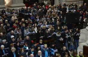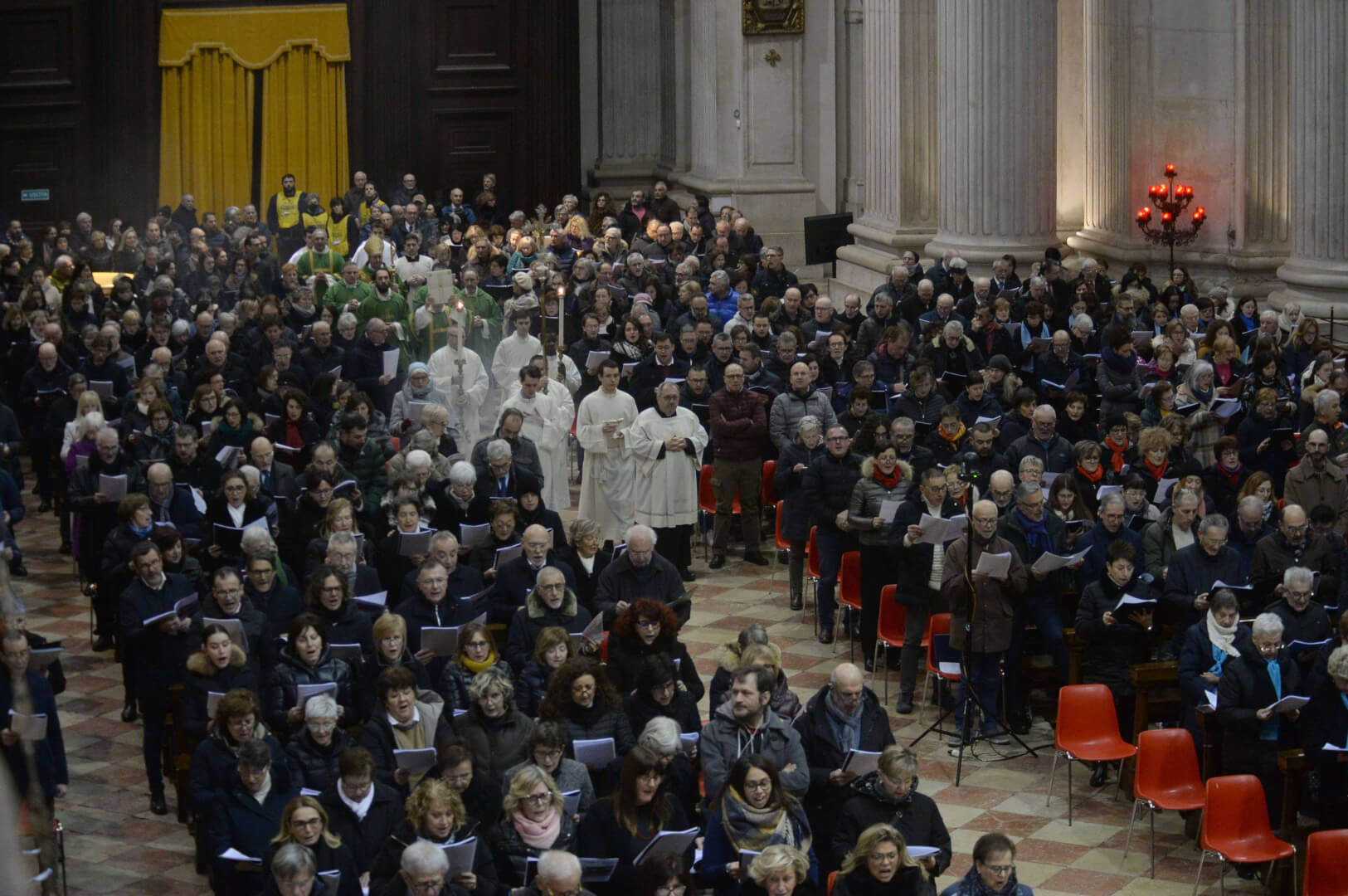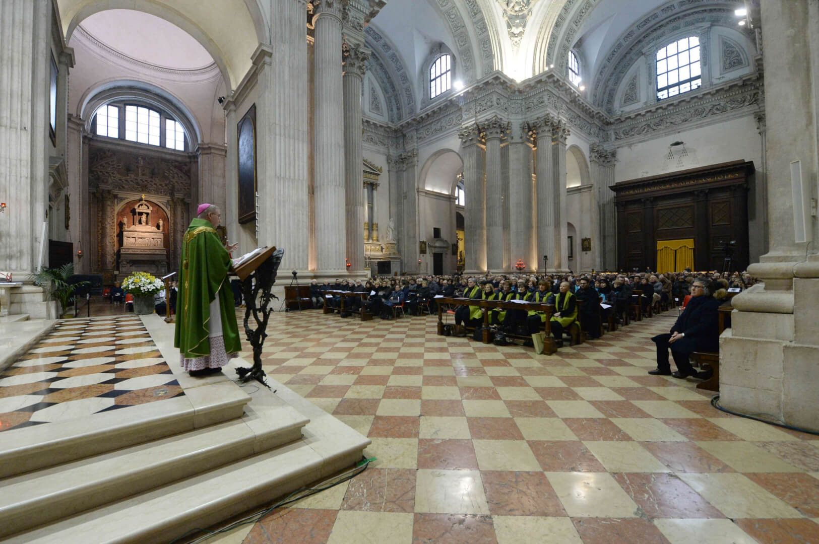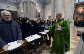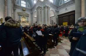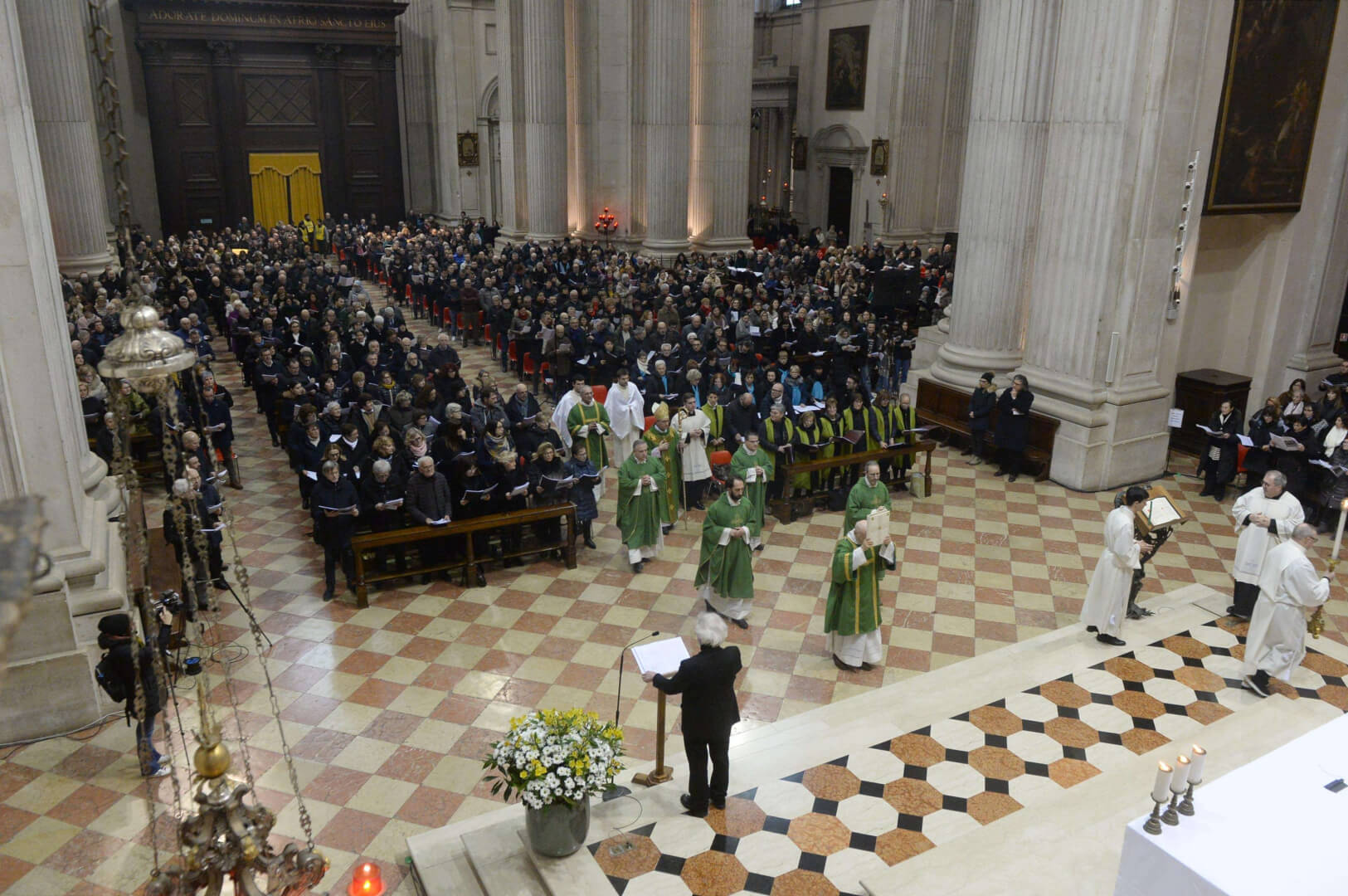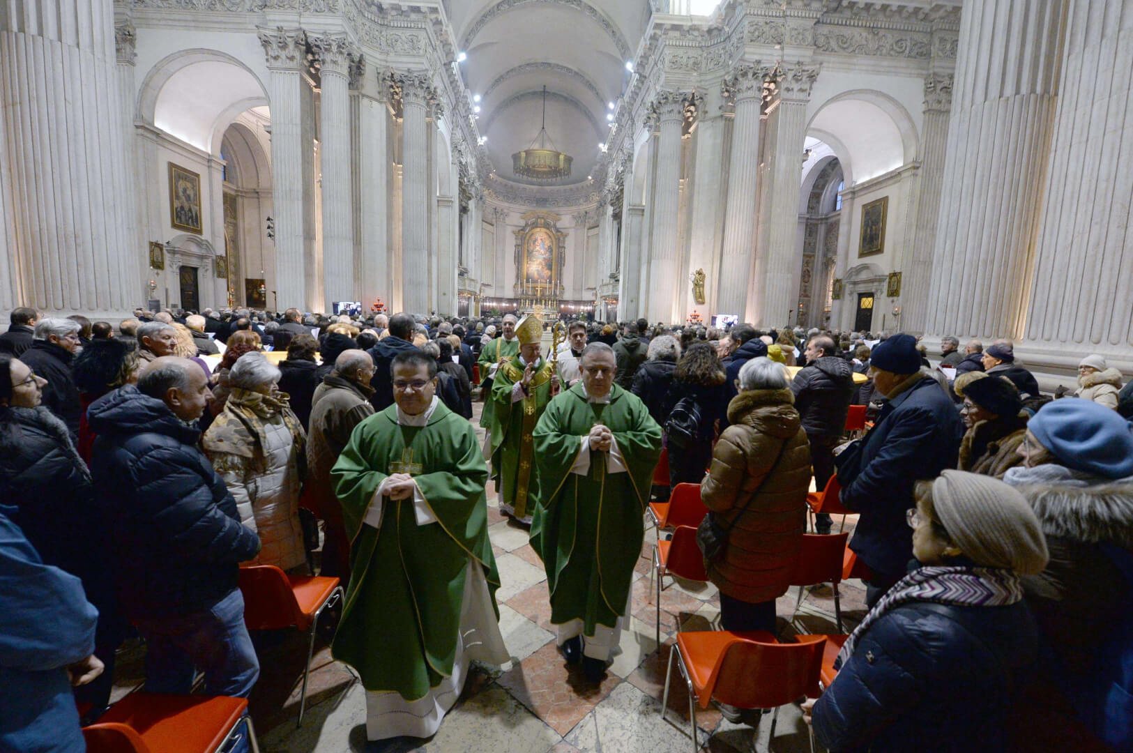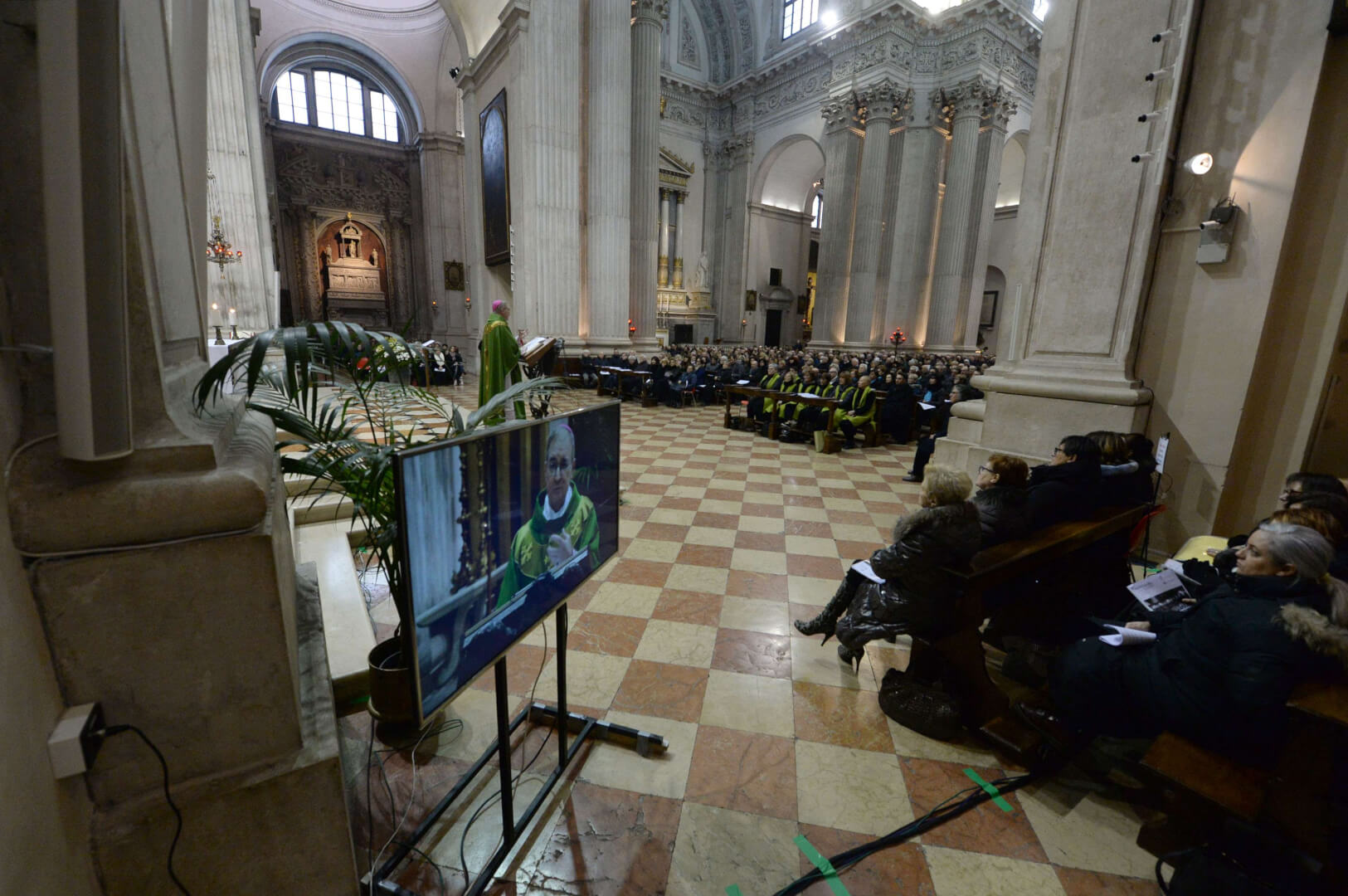 Domenica 21 gennaio, in Cattedrale, il vescovo Pierantonio Tremolada ha presieduto la Santa Messa con i cori parrocchiali e gli operatori liturgico-musicali della Diocesi. Più di 900 i coristi. Il repertorio ha compreso alcuni brani in memoria della messa del 1998 e altri nuovi degli autori: Maurice Duruflé, Edward Elgar, Giancarlo Facchinetti, Giulio Tonelli e Roberto Soldati. I brani dell’ordinario (Kyrie, Gloria, Credo, Sanctus, Agnus Dei) erano in prima esecuzione. È stata realizzata per la prima volta la “Messa Arcaica” in lingua italiana composta da don Alberto Donini, che andrà ad arricchire il repertorio diocesano