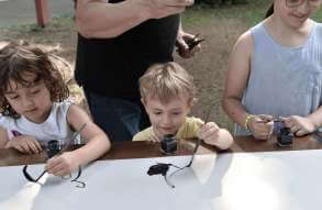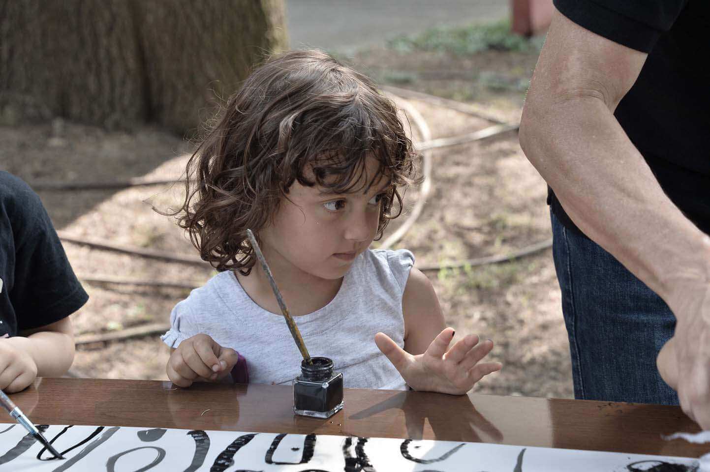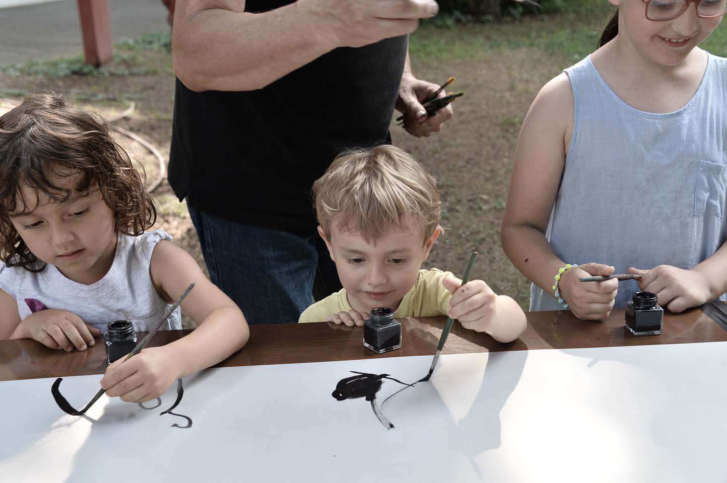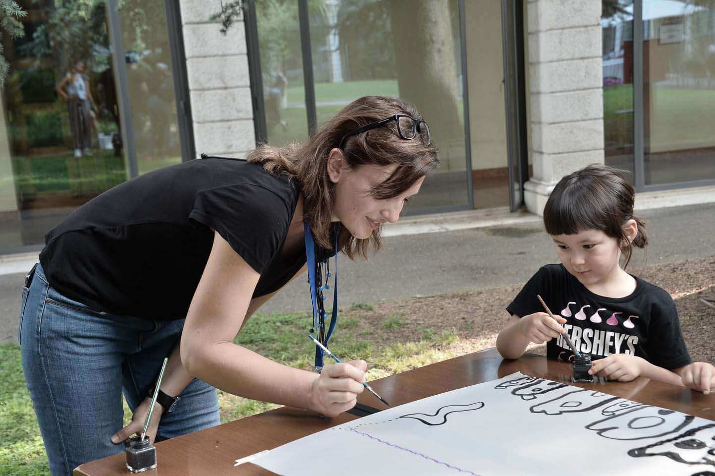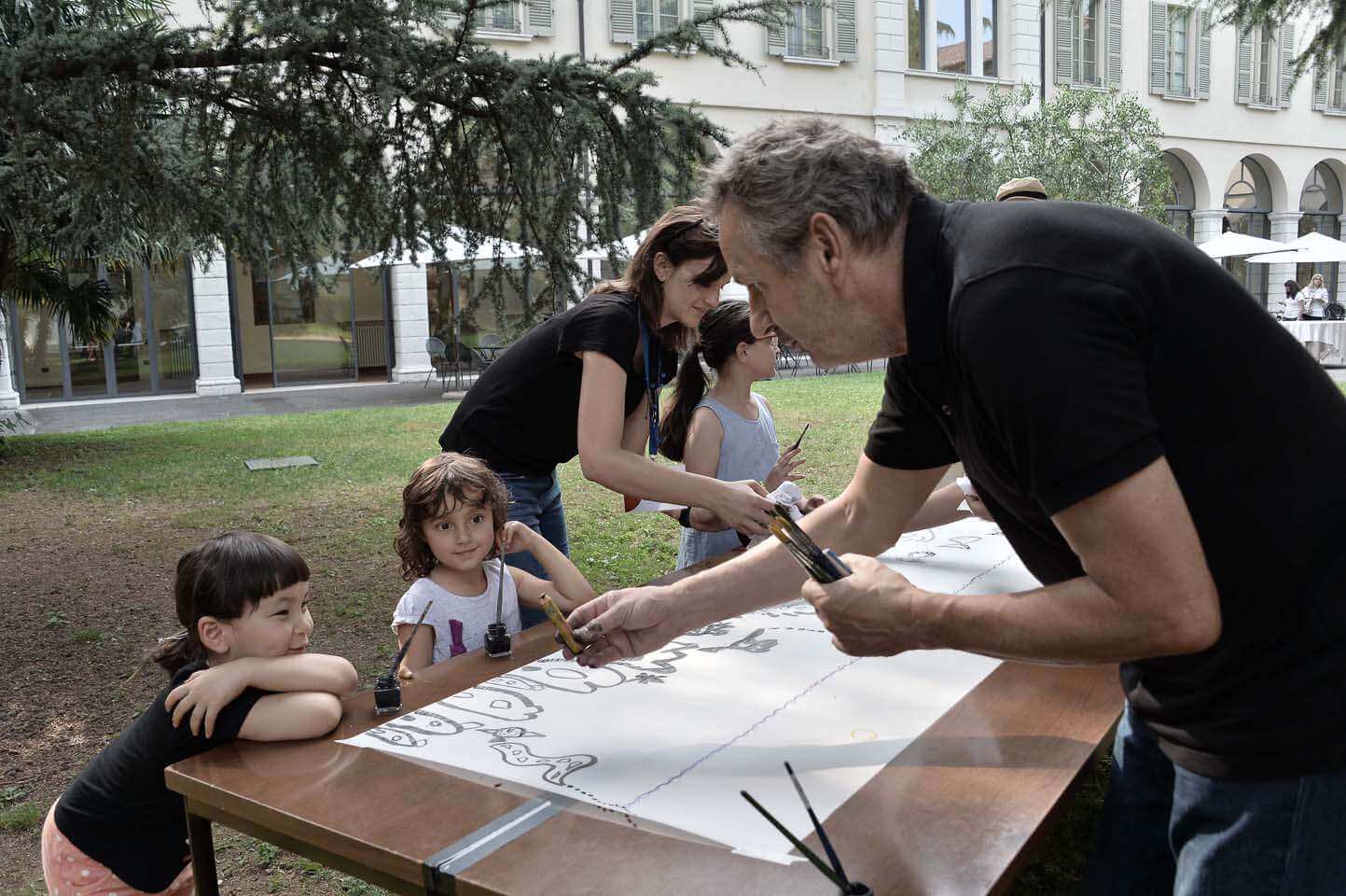 Il laboratorio di disegno per bambini di Dario Moretti che si è tenuto nel giardino del Centro pastorale Paolo VI