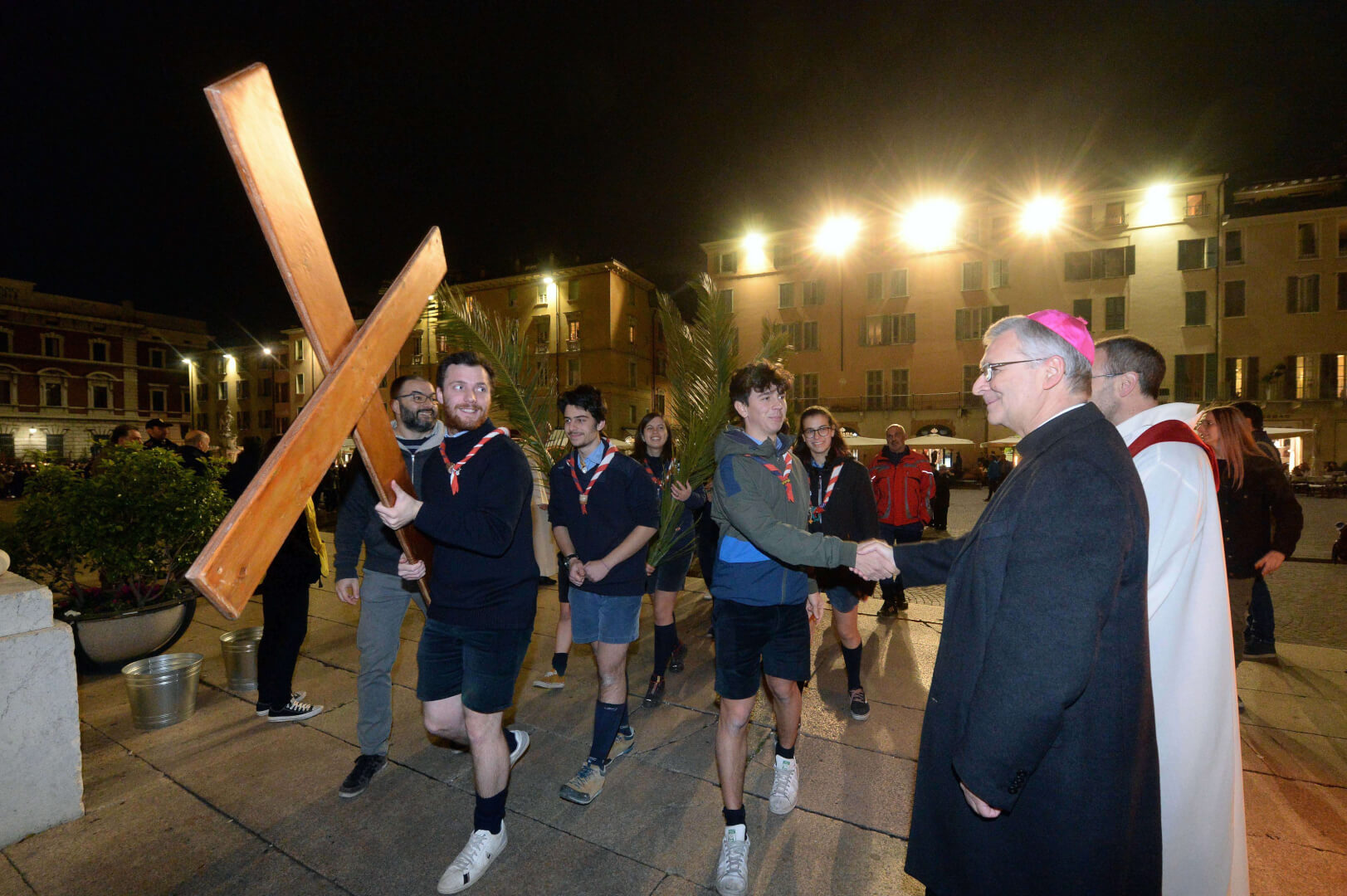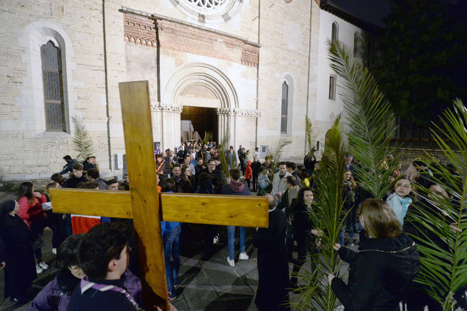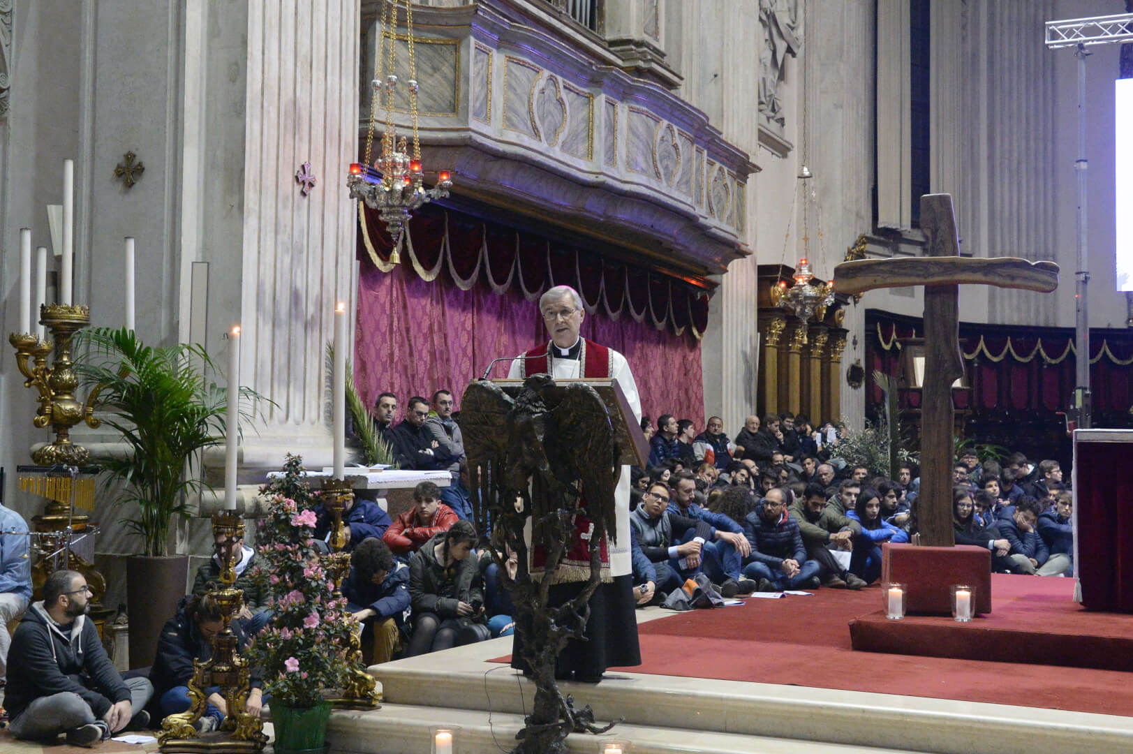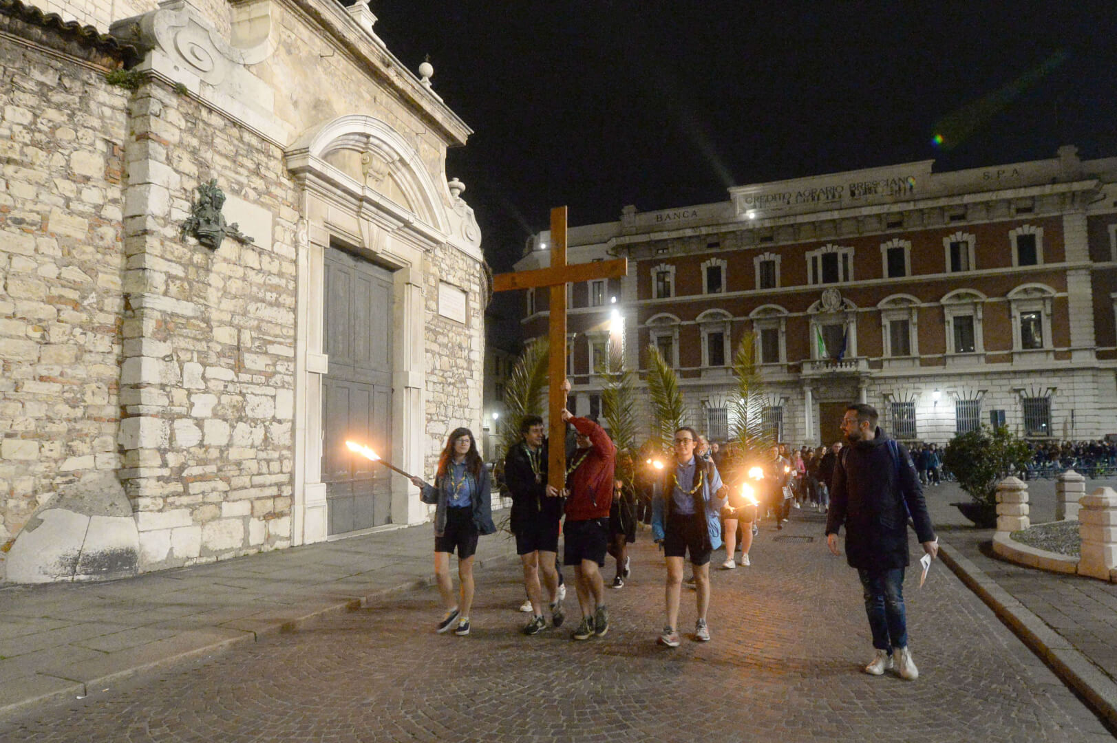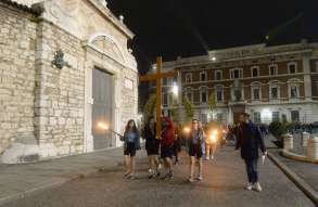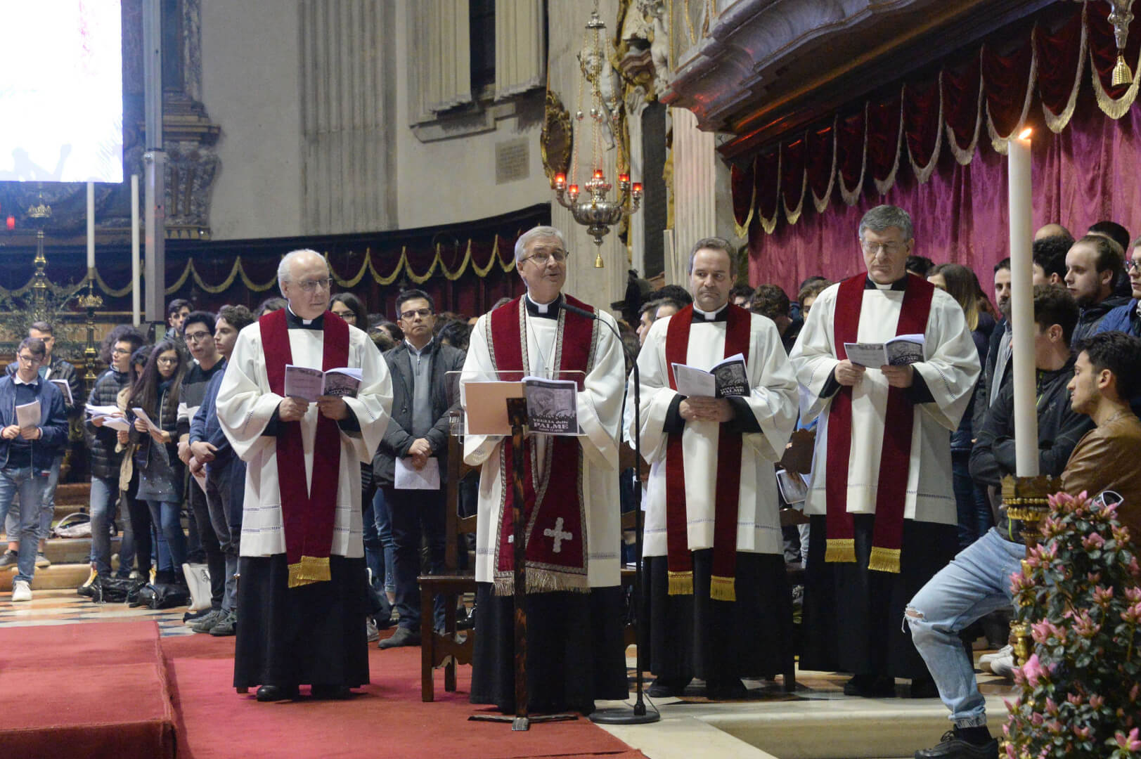 Migliaia di giovani in processione nelle vie del centro storico di Brescia per raggiungere il vescovo Pierantonio in Cattedrale