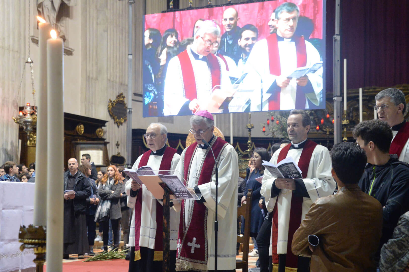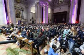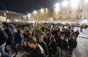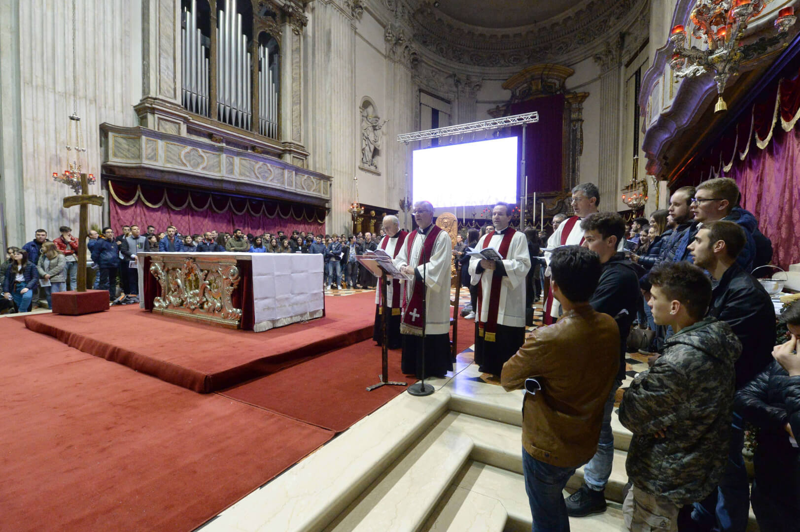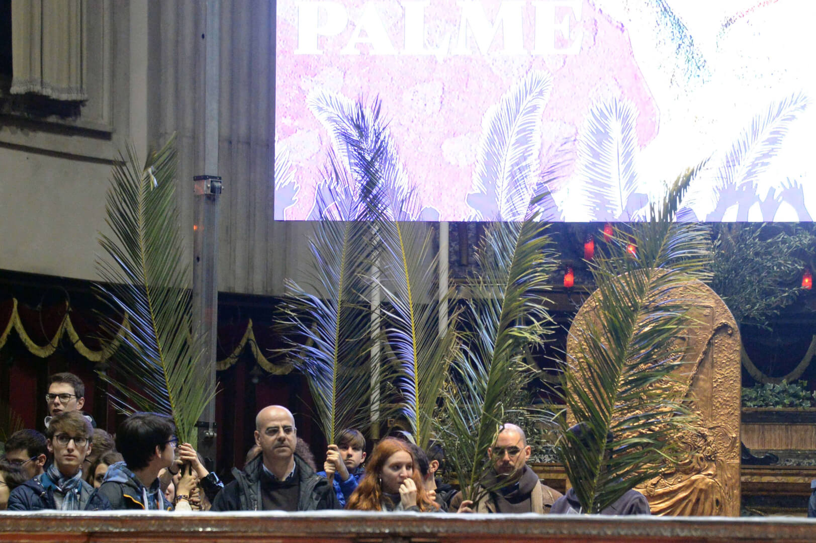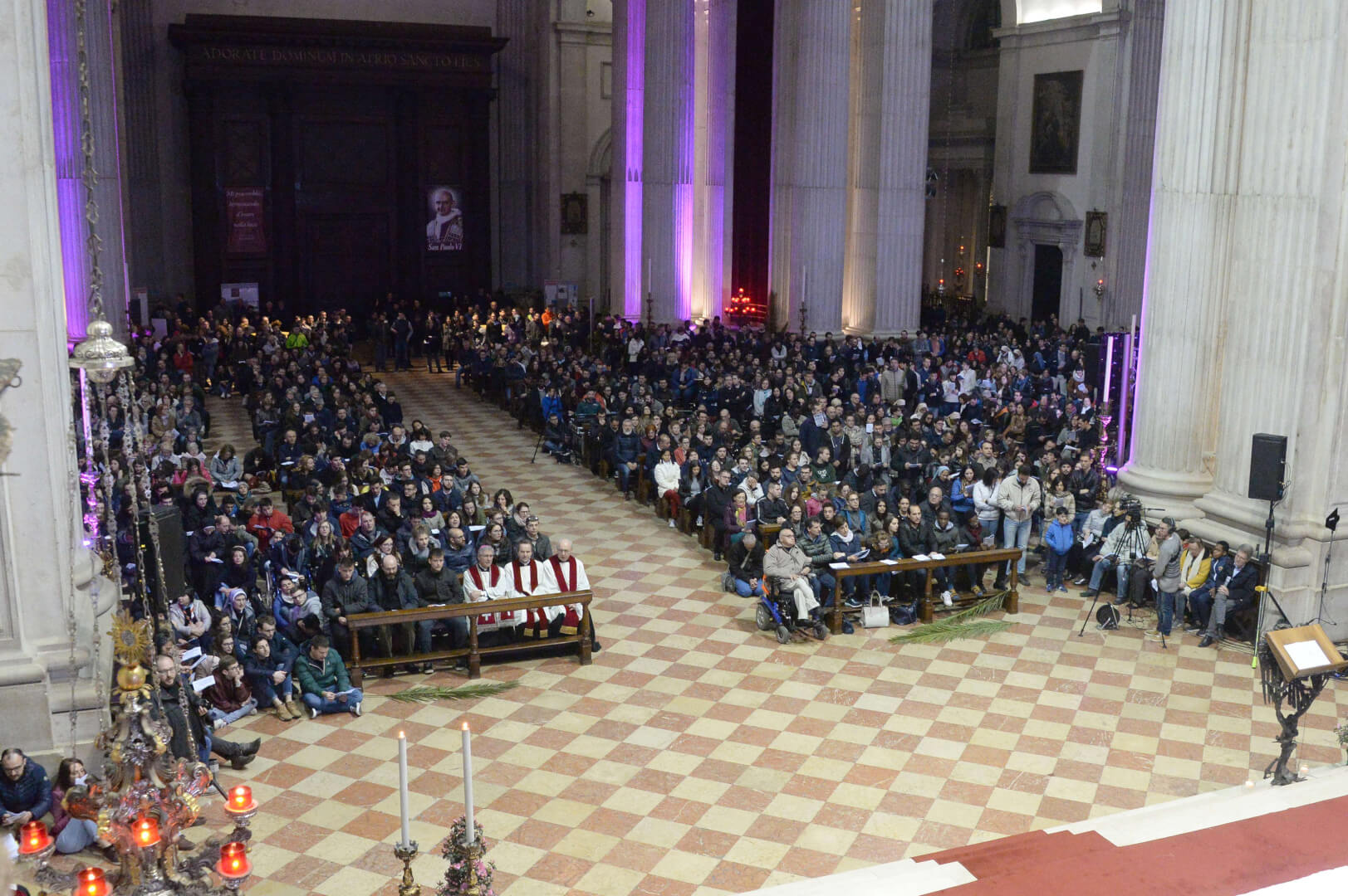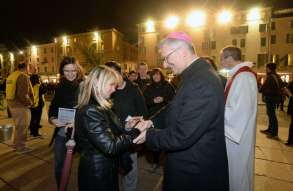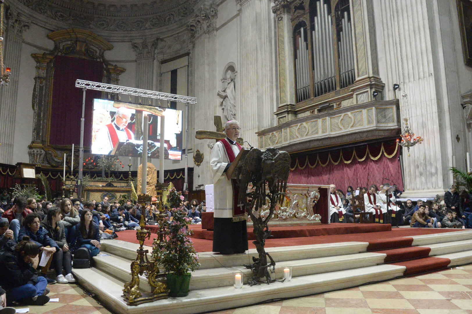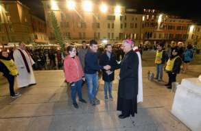 Migliaia di giovani in processione nelle vie del centro storico di Brescia per raggiungere il vescovo Pierantonio in Cattedrale