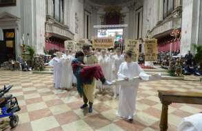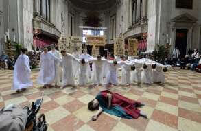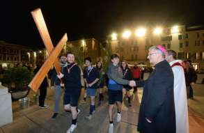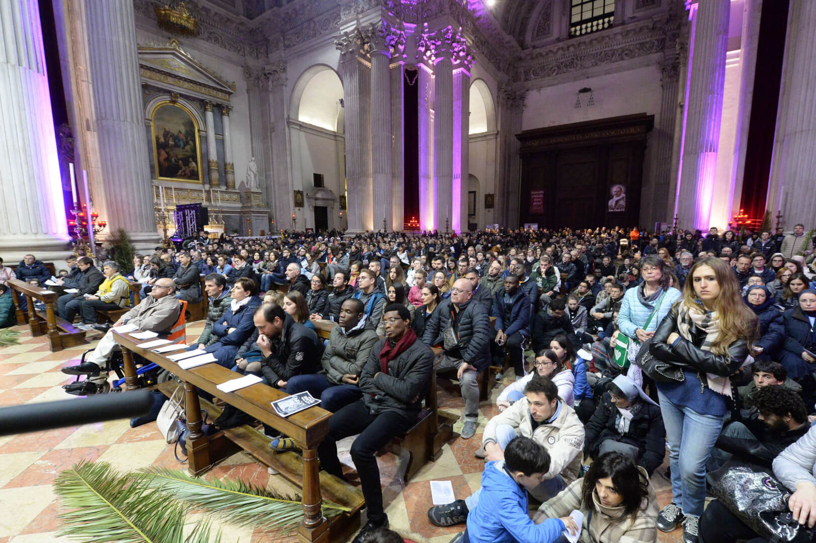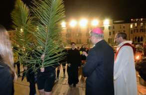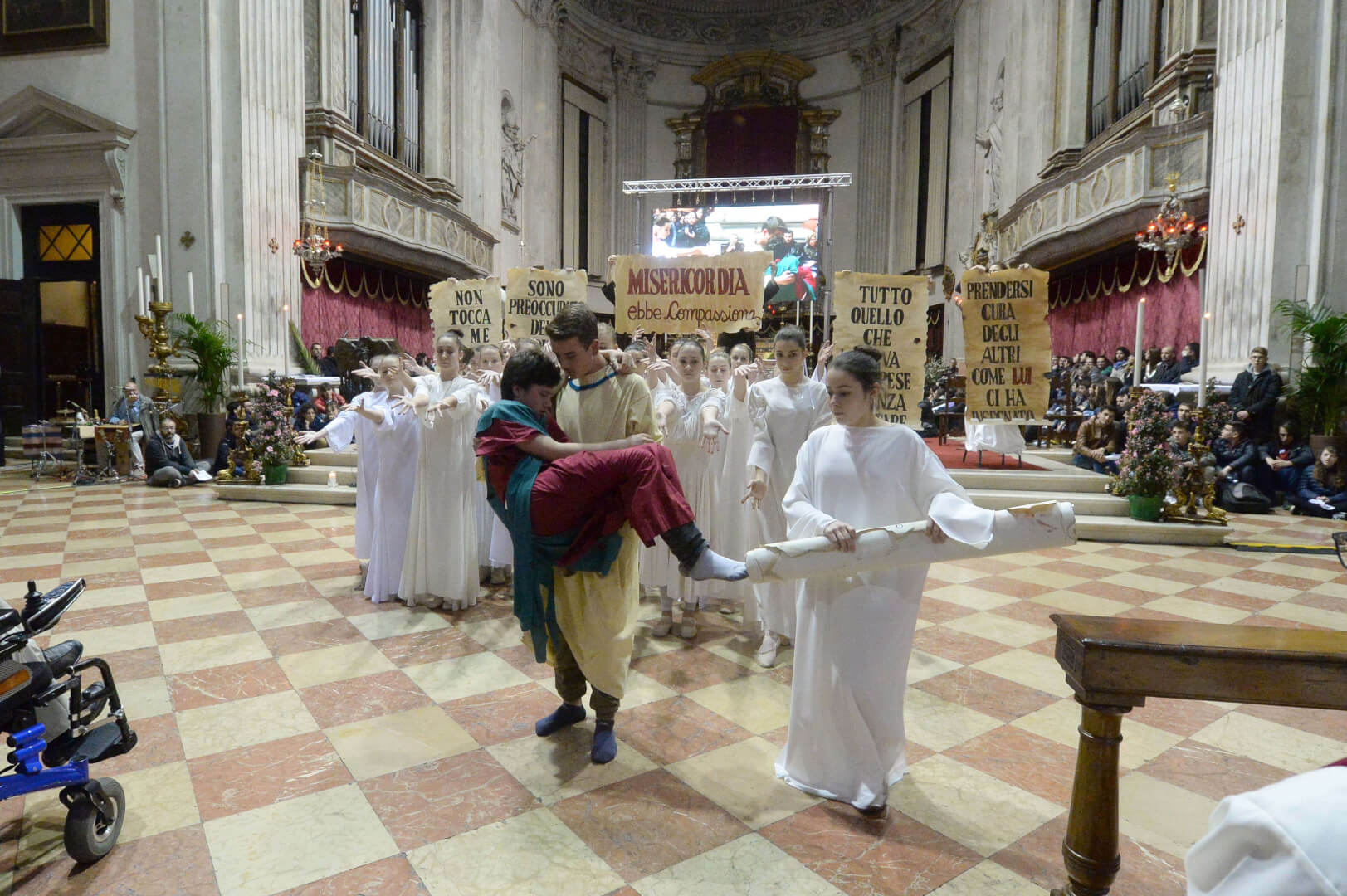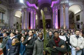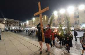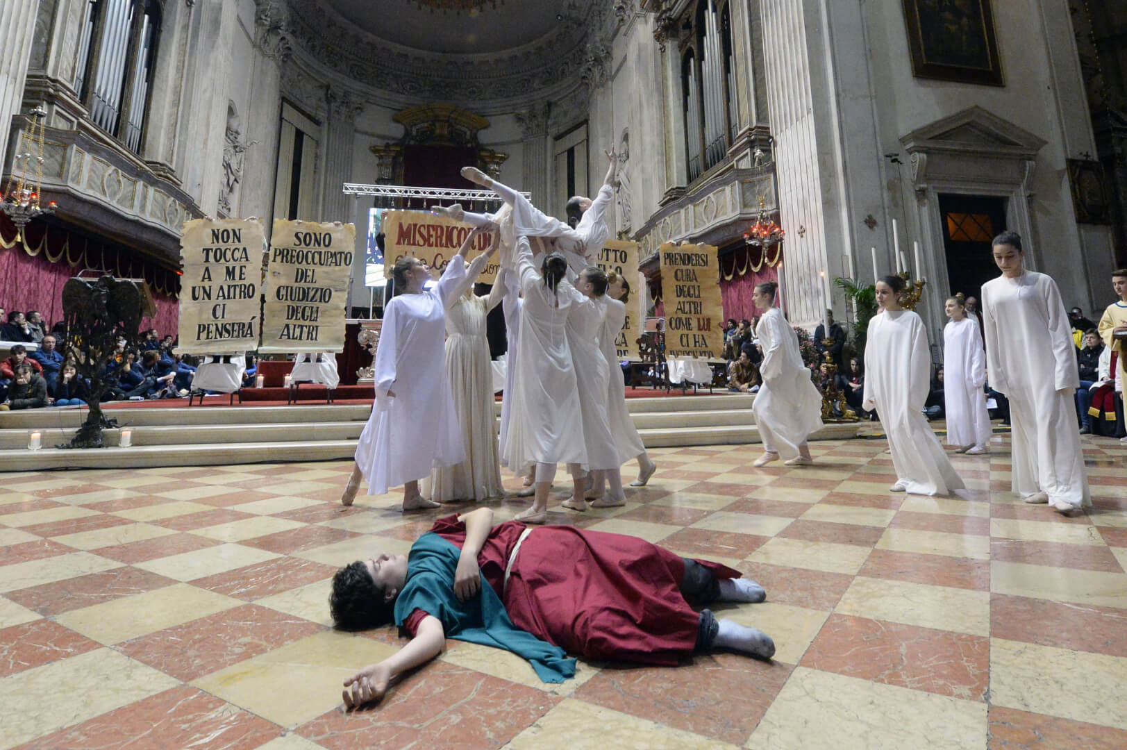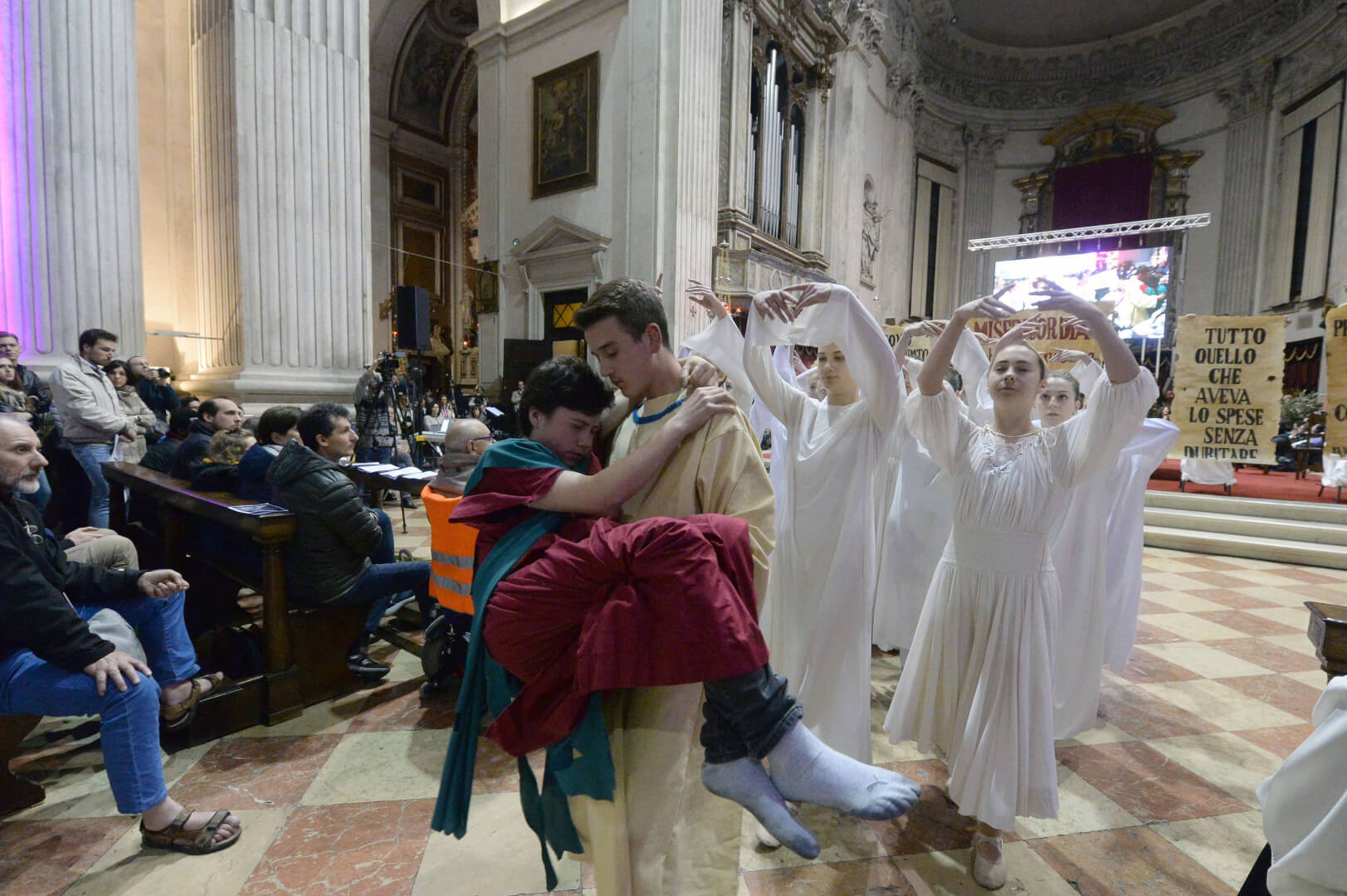 Migliaia di giovani in processione nelle vie del centro storico di Brescia per raggiungere il vescovo Pierantonio in Cattedrale