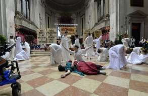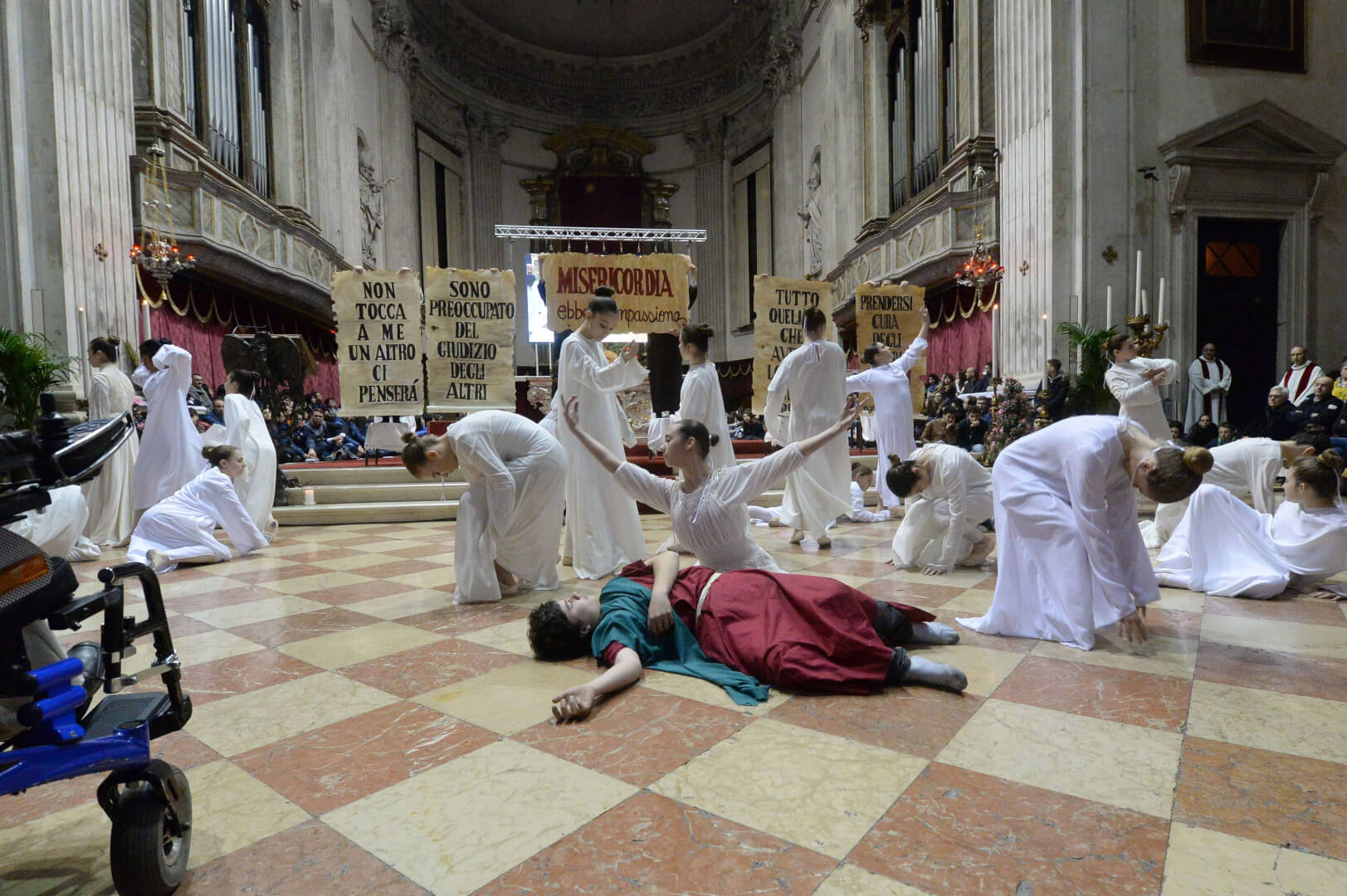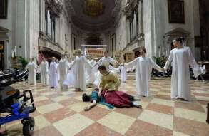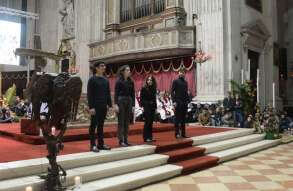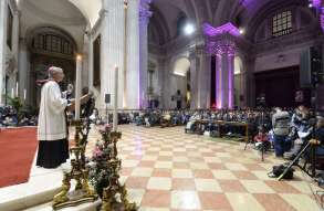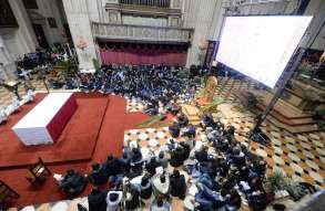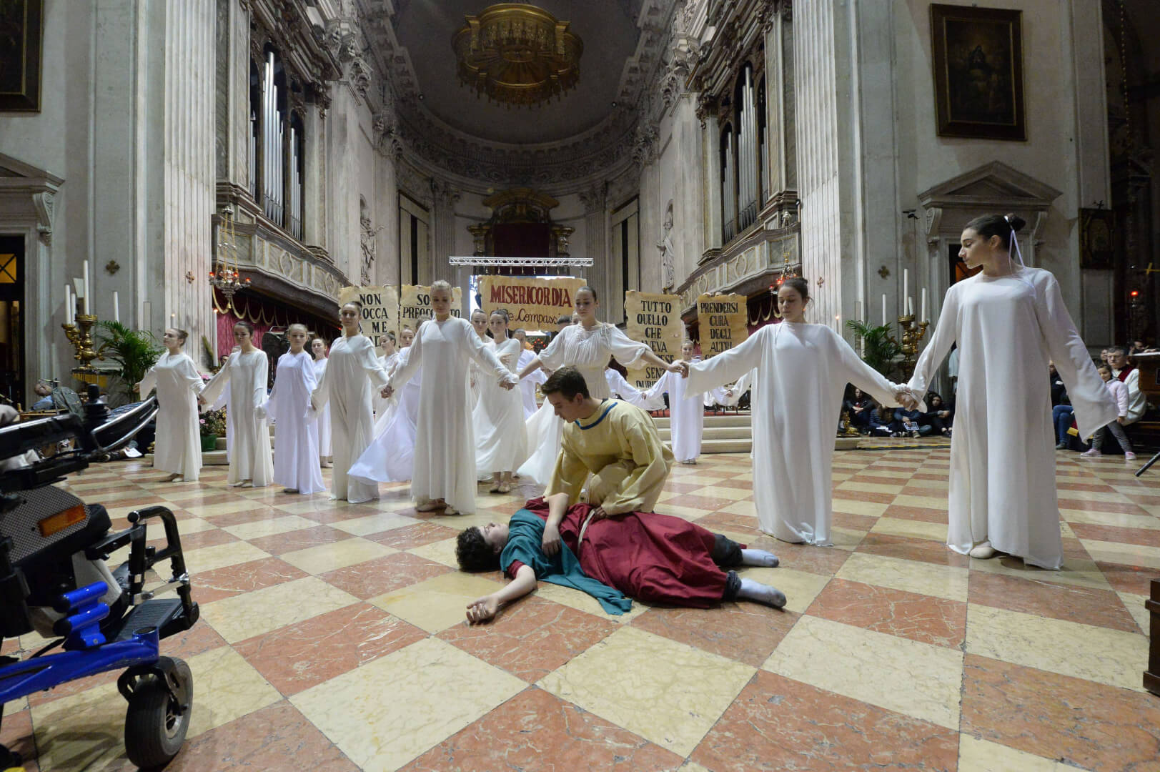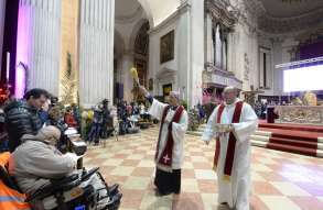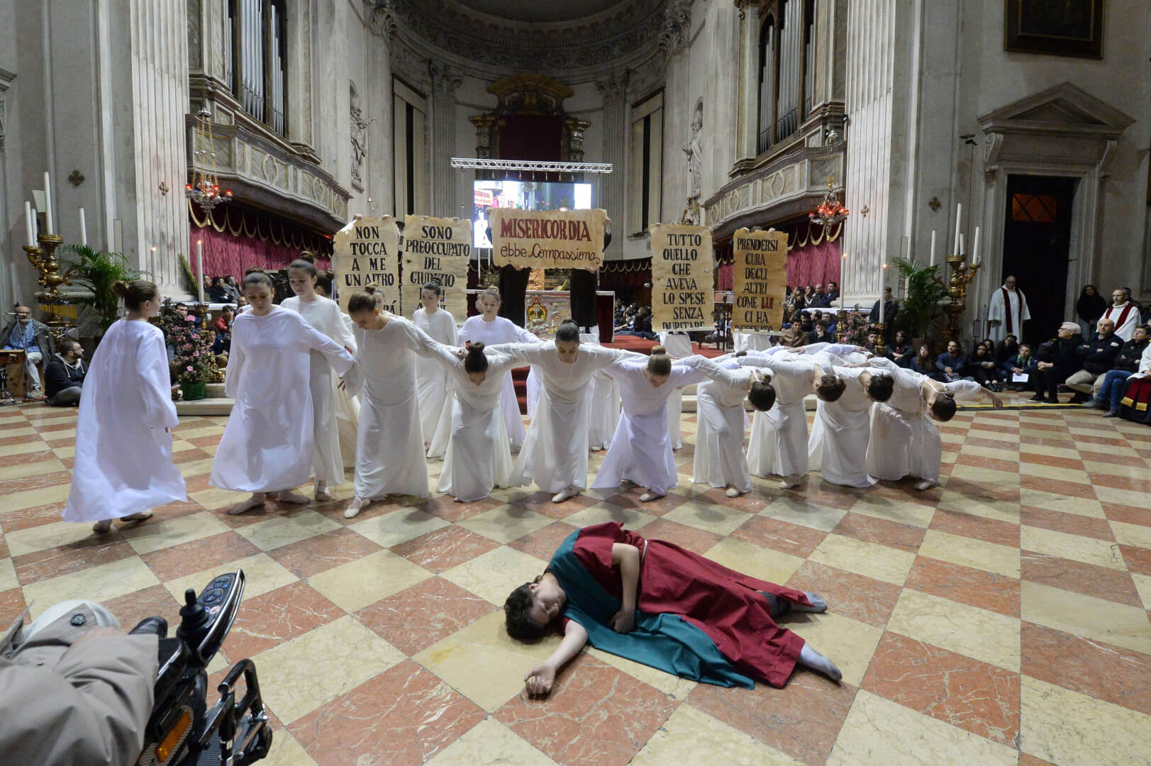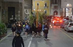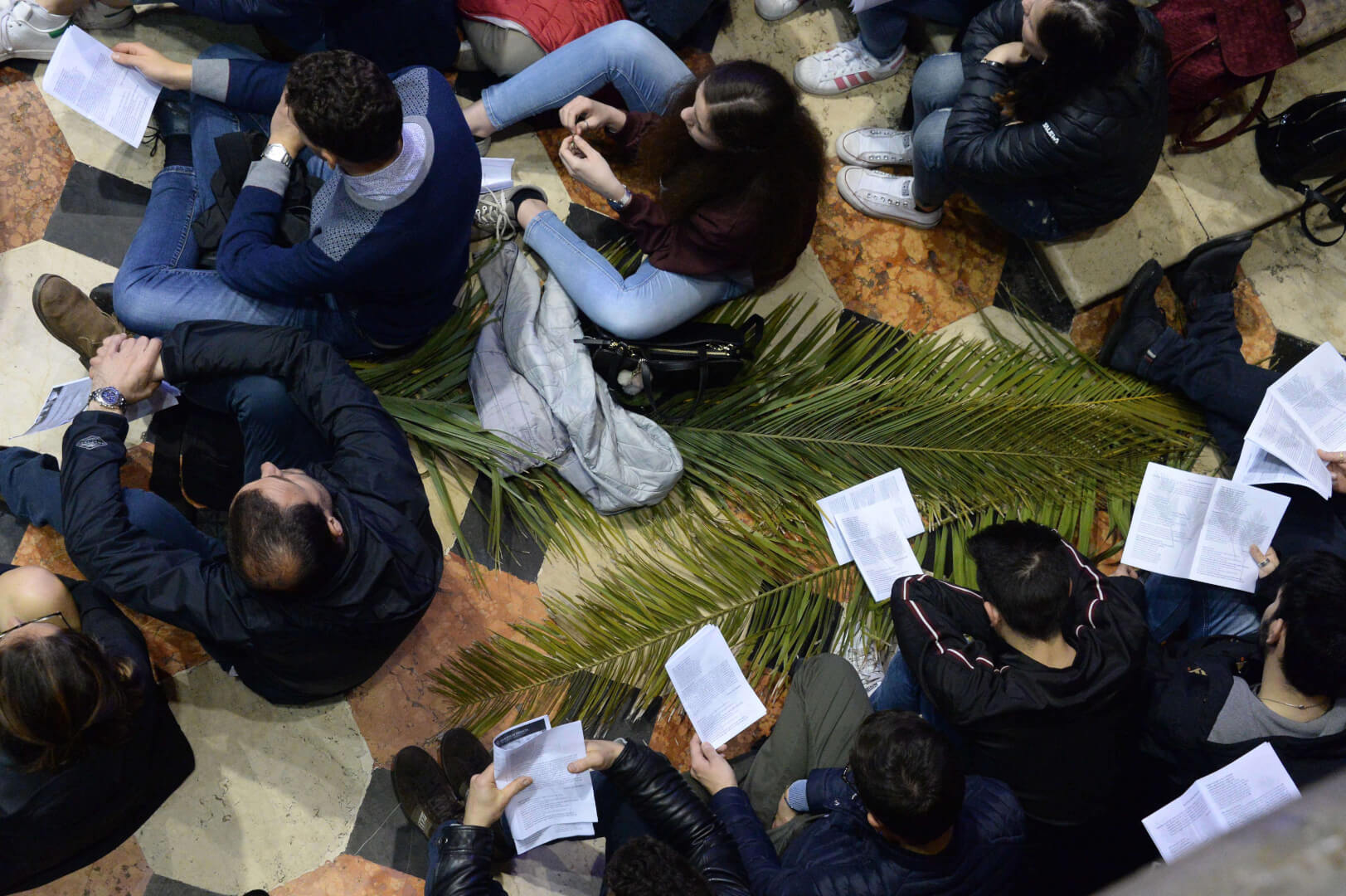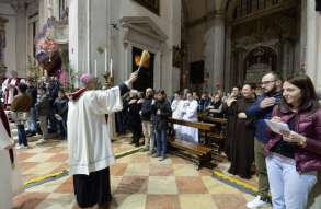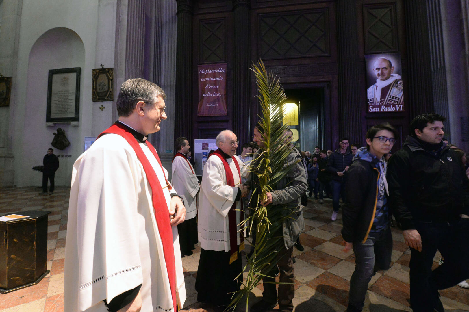 Migliaia di giovani in processione nelle vie del centro storico di Brescia per raggiungere il vescovo Pierantonio in Cattedrale