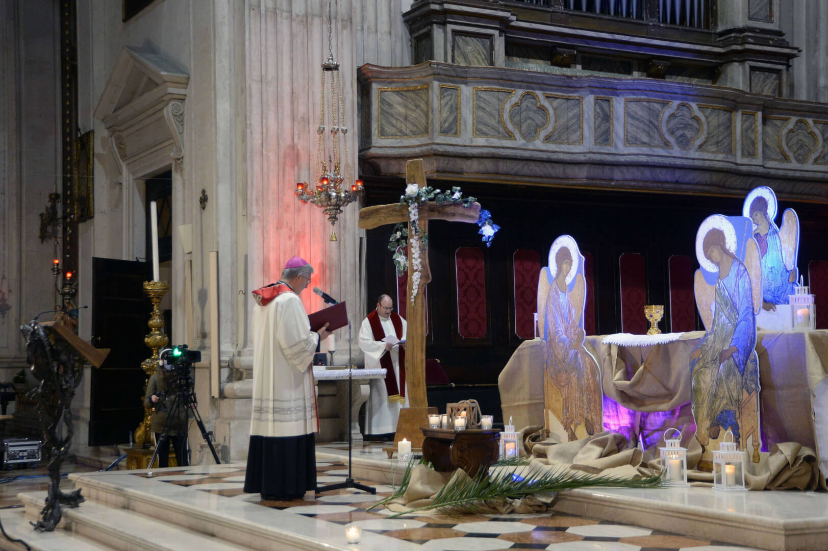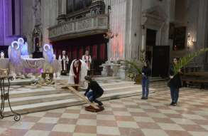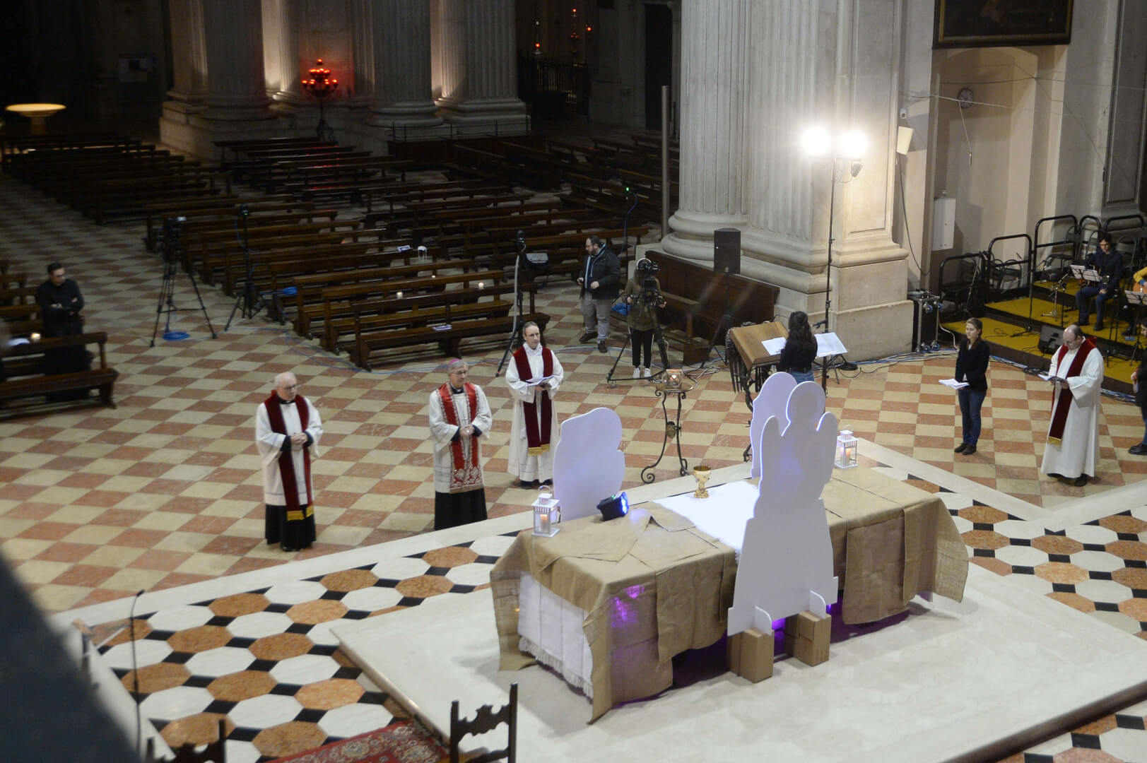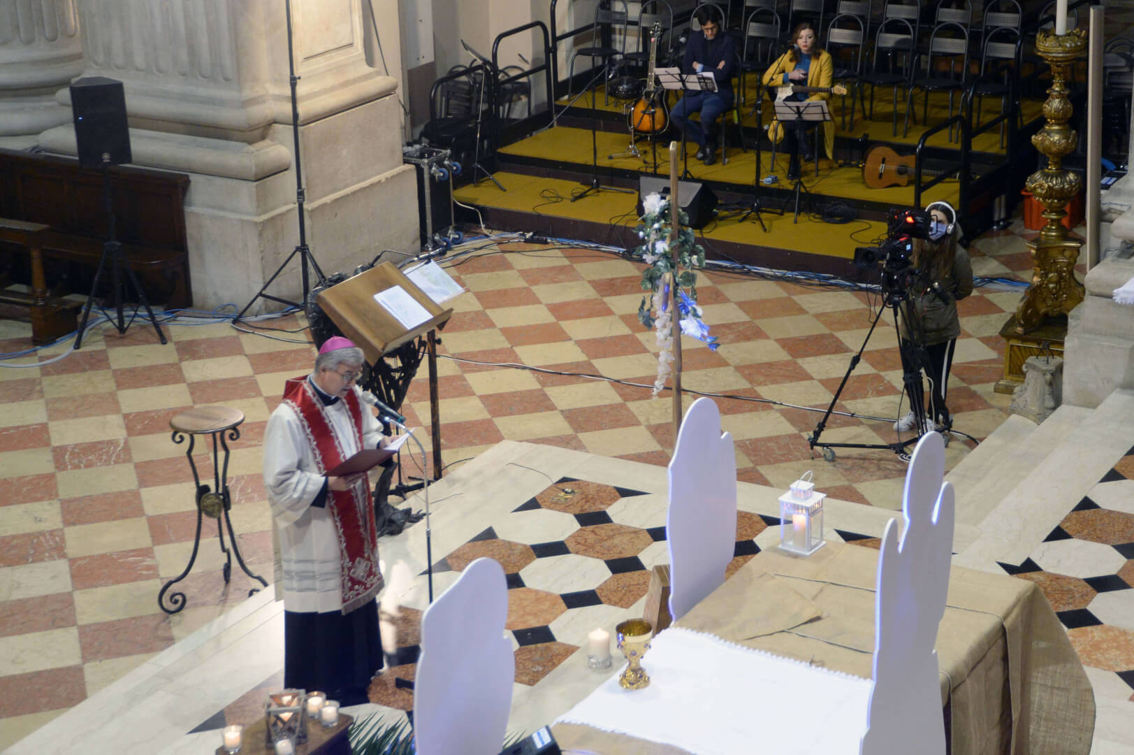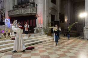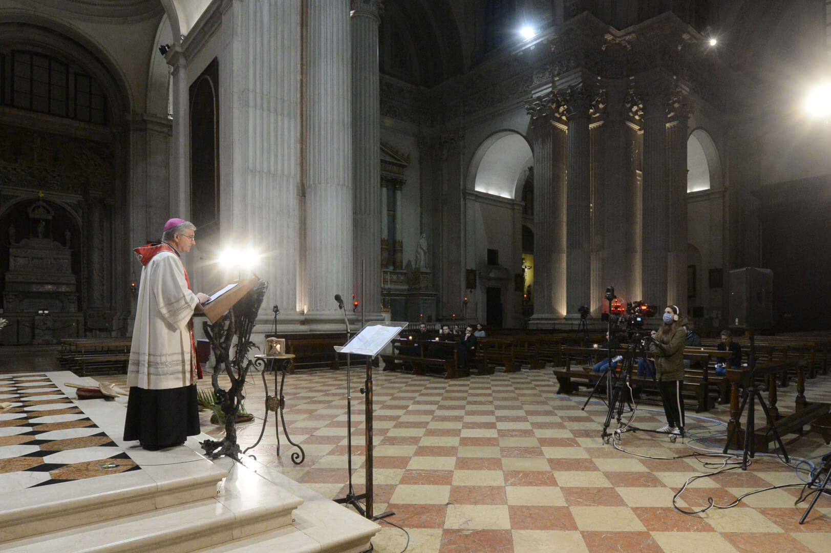 La Veglia delle Palme a porte chiuse in Cattedrale. "Non sappiamo come sarà il mondo tra alcuni mesi, dopo questa prova sconvolgente e dolorosa. Sarà un mondo che avrà bisogno delle vostre forze e prima ancora del vostro cuore. Probabilmente ci sarà molto da ricostruire. Occorrerà farlo insieme" ha sottolineato il vescovo Pierantonio rivolgendosi ai giovani che hanno potuto seguire la celebrazione in tv e sui canali social