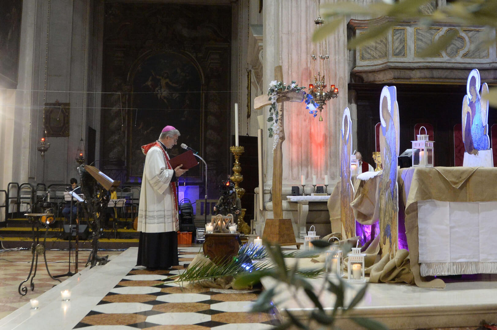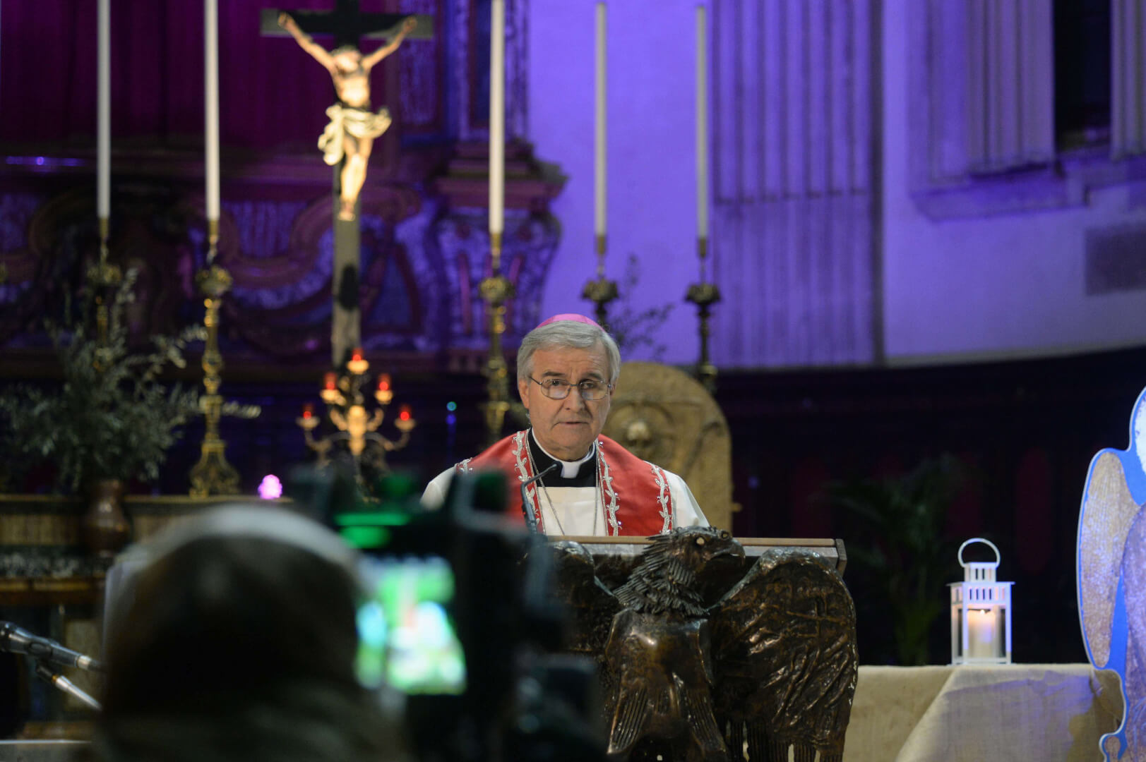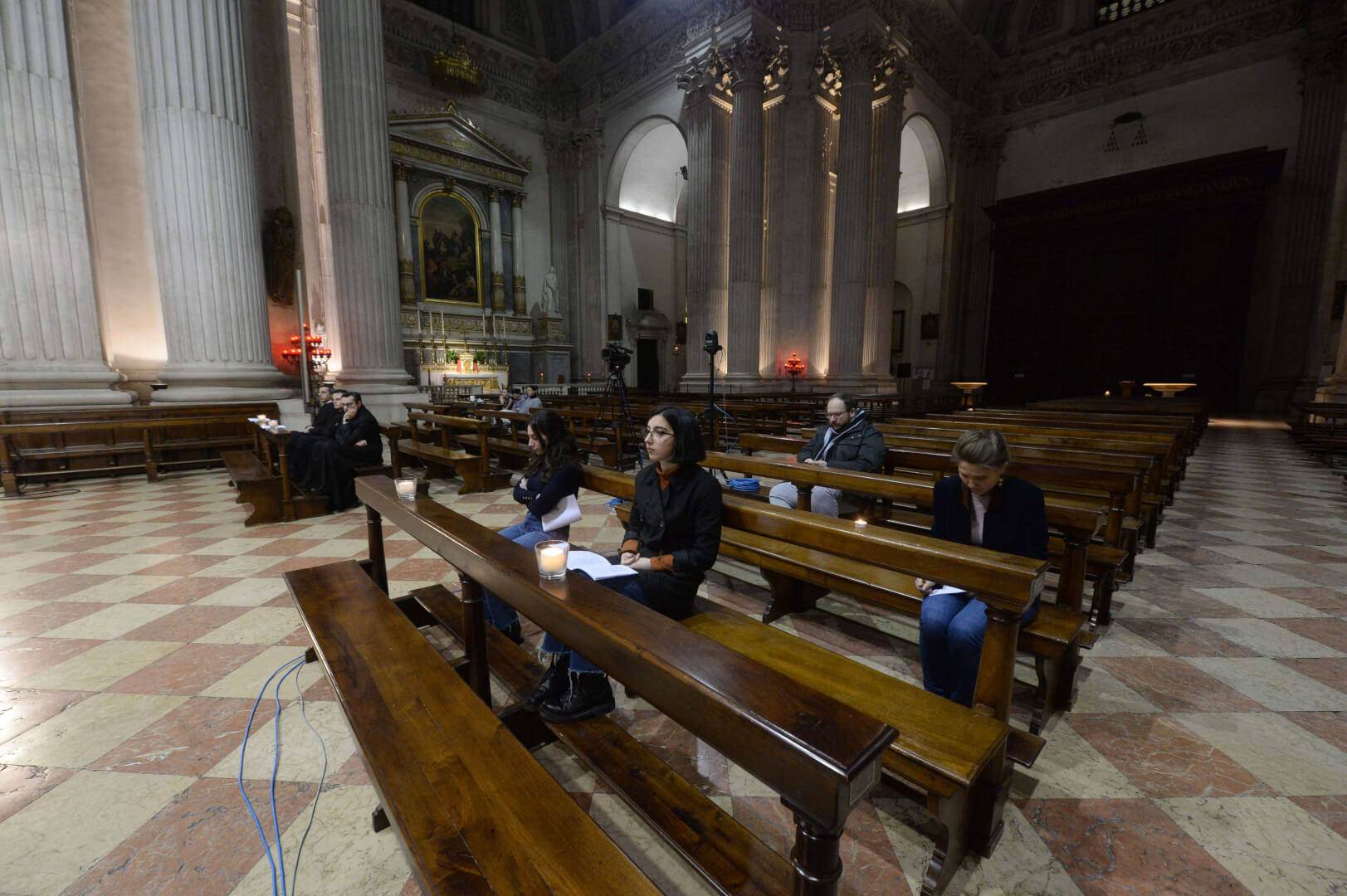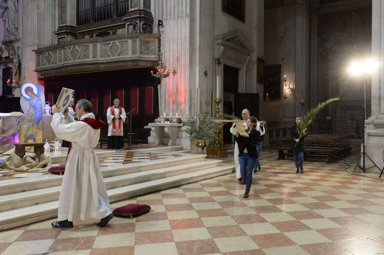 La Veglia delle Palme a porte chiuse in Cattedrale. "Non sappiamo come sarà il mondo tra alcuni mesi, dopo questa prova sconvolgente e dolorosa. Sarà un mondo che avrà bisogno delle vostre forze e prima ancora del vostro cuore. Probabilmente ci sarà molto da ricostruire. Occorrerà farlo insieme" ha sottolineato il vescovo Pierantonio rivolgendosi ai giovani che hanno potuto seguire la celebrazione in tv e sui canali social