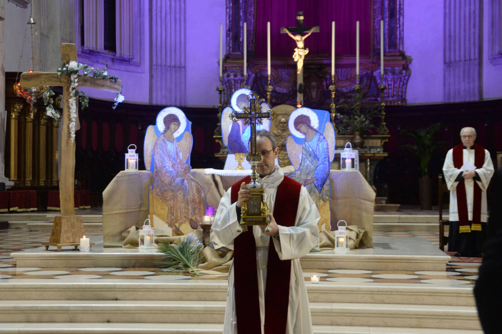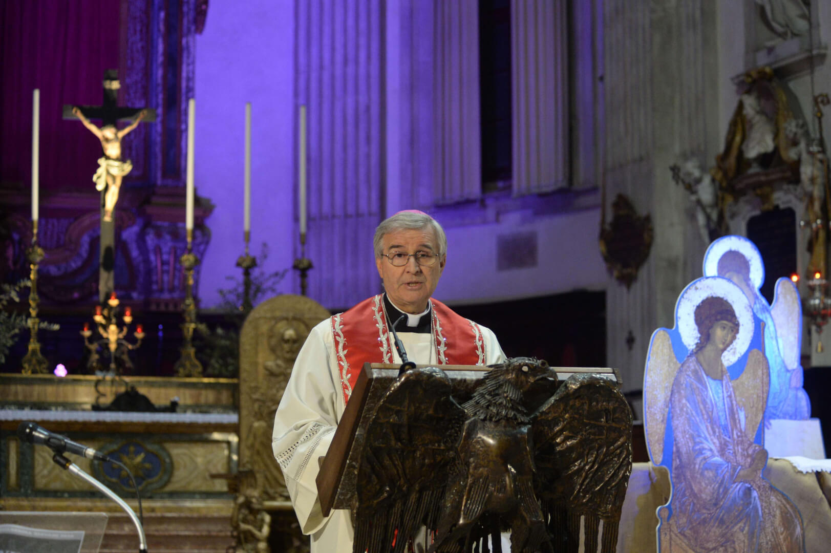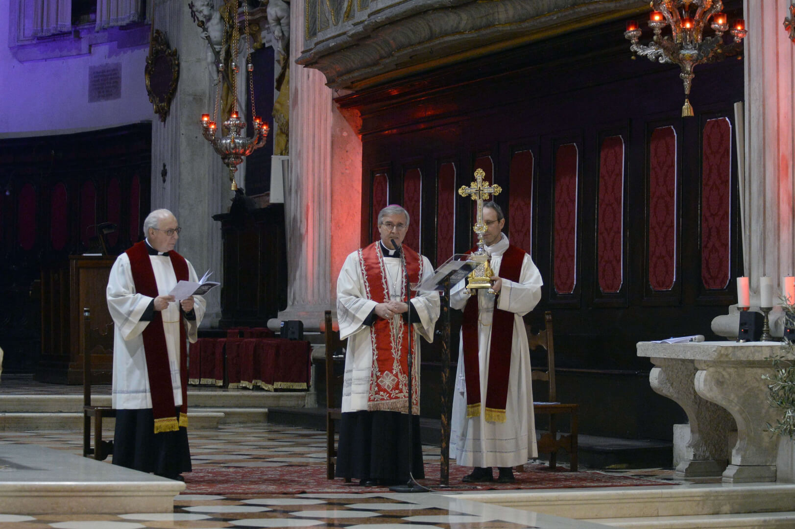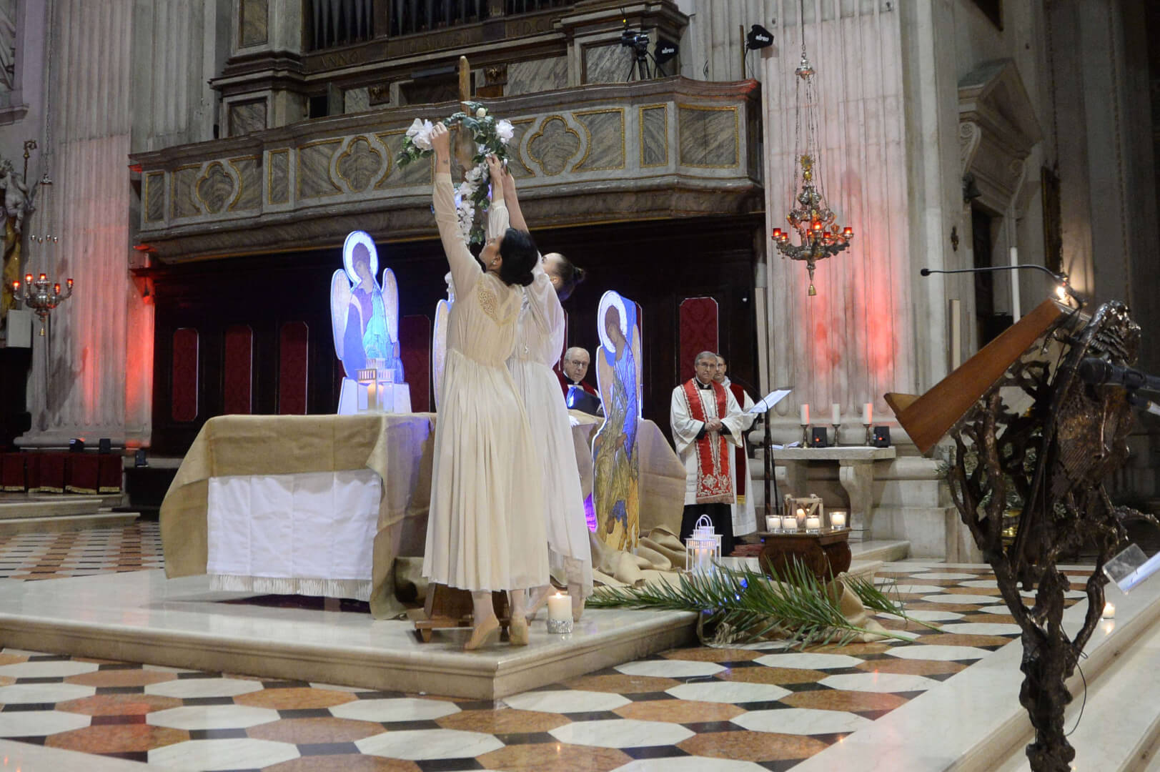La Veglia delle Palme a porte chiuse in Cattedrale. "Non sappiamo come sarà il mondo tra alcuni mesi, dopo questa prova sconvolgente e dolorosa. Sarà un mondo che avrà bisogno delle vostre forze e prima ancora del vostro cuore. Probabilmente ci sarà molto da ricostruire. Occorrerà farlo insieme" ha sottolineato il vescovo Pierantonio rivolgendosi ai giovani che hanno potuto seguire la celebrazione in tv e sui canali social