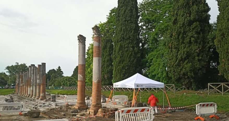 Manutenzione al foro romano di Aquileia