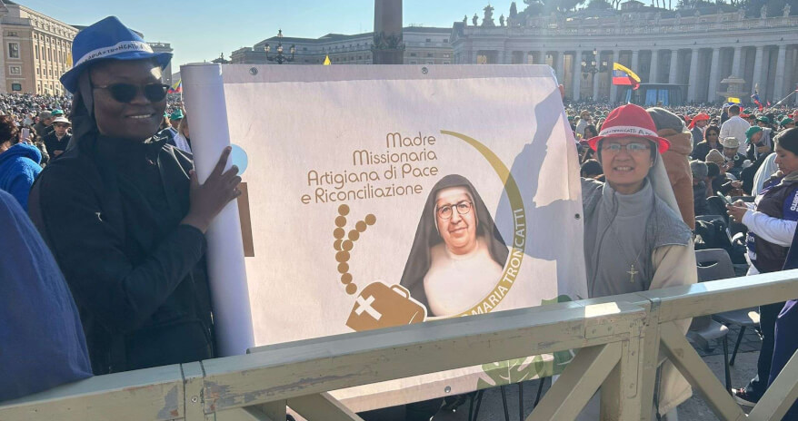 Nella mattinata del 15 ottobre 2025, il Sig. Juwa Juank Kankua Bosco, miracolato per intercessione di Suor Maria Troncatti, è giunto dall’Ecuador a Roma, nella Casa Generalizia dell’Istituto FMA, per assistere alla Canonizzazione di Suor Maria, il 19 ottobre in Piazza San Pietro, e alle celebrazioni che accompagnano l’evento. Insieme a lui hanno viaggiato la moglie Natalina, il figlio, la cognata che aveva collocato sul letto dell’infermo l’immaginetta di Suor Troncatti, il cognato e alcune Figlie di Maria Ausiliatrice dell’Ispettoria Sacro Cuore (ECU) – tra cui l’Ispettrice, suor Lupe Erazo, suor Cruz María Piña Peláez, l’Ispettrice precedente che ha seguito il caso, fornendo gli aiuti necessari, e suor Elena Tinitana, membro del Tribunale canonico che ha seguito il processo di Canonizzazione – accolti con gioia da Madre Chiara Cazzuola e dalle Consigliere generali, dalla Direttrice, dalla Vicaria e da diverse Fma della Comunità di Casa Generalizia. Grande commozione ha suscitato la sosta in preghiera nella Cappella, dinanzi alla reliquia di Suor Maria Troncatti, alla quale il Sig. Juwa si è rivolto con affetto filiale: “Madrecita, Madrecita! Llegué!”. Madrecita, Madrecita, sono arrivato!