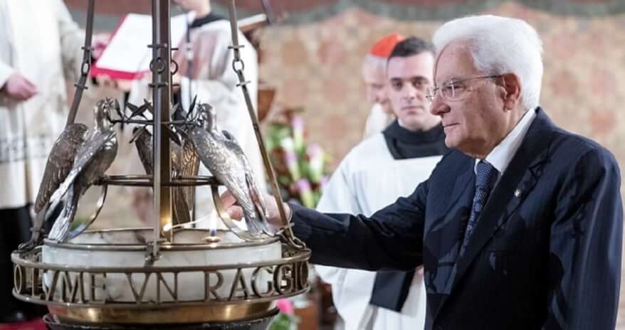 “La pace – ha sottolineato il Capo dello Stato – è un diritto iscritto nelle coscienze e rappresenta l’aspirazione più profonda di ogni persona, appena alza lo sguardo oltre il proprio presente“. “La pace – ha proseguito – non è soltanto assenza di combattimenti bensì – ci ricorda san Francesco – è connaturata all’armonia con il Creato. Quando si consumano a dismisura le risorse, quando si depreda la natura, quando si creano disuguaglianze tra i popoli, quando si inaridisce il destino delle generazioni future, ci si allontana dalla pace”.