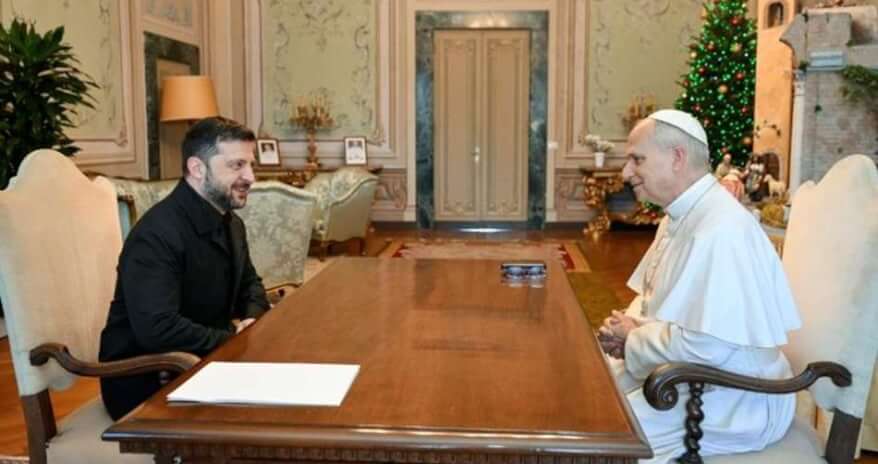 In un incontro con i giornalisti al termine della visita del presidente ucraino il Papa ha ribadito la disponibilità della Santa Sede a “offrire spazio e opportunità per trattative e negoziazioni. Fino ad adesso non è stata accettata l'offerta, però siamo disponibili a cercare una soluzione e una pace, duratura e anche giusta”. Al nuovo invito ricevuto da Zelensky a visitare l’Ucraina (“segnale forte di sostegno alla popolazione”, l’ha definito il presidente ucraino) papa Leone ha risposto confermano la sua disponibilità: “Spero di sì, non so quando. Bisogna essere anche realisti in queste cose, magari si potrà fare”.