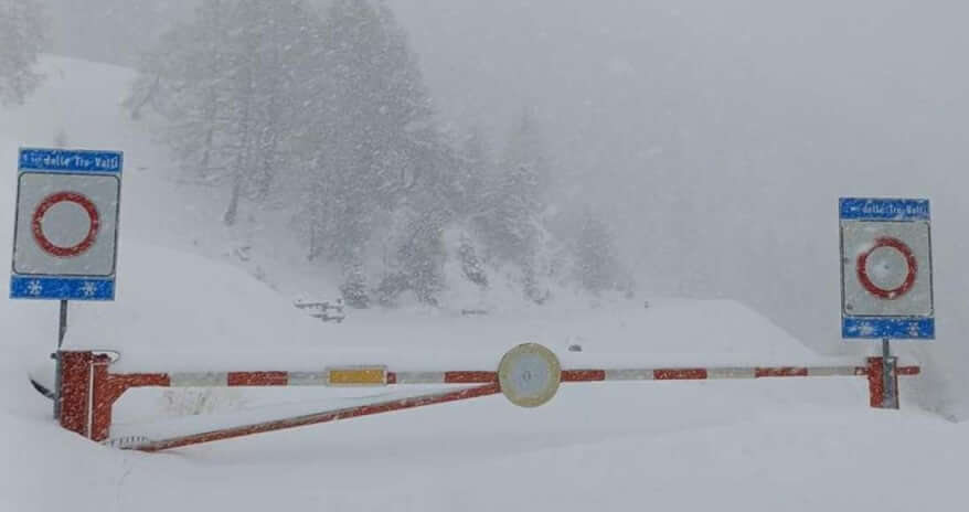La Provincia informa che a decorrere dalle ore 16 del giorno 21 novembre 2025, fino a revoca del provvedimento, è stata disposta la sospensione della circolazione stradale per tutte le categorie di utenti, per motivi di pubblica incolumità, legati alla nevicata di queste ultime ore e comunque, più in generale, alle condizioni meteo stagionali, lungo la SP BS 345 “delle Tre Valli” lungo la strada in Val Camonica che dal Rifugio Bazena porta al Passo Crocedomini.