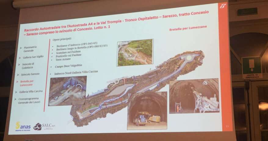 “Dopo alcuni anni in ufficio - ha raccontato Bloise - ho voluto ritornare a sporcarmi le scarpe in cantiere. Quello che ho visto qui non l’avevo mai visto i trent’anni. Dal primo maggio, con la rimozione del metanodotto Snam, potrà entrare in funzione il macchinario per scavare la galleria artificiale a S. Vigilio, il cantiere più critico anche per i disagi alla viabilità. Nel frattempo, si sta completando il ponte sul Fiume Mella, sempre in quella zona; quindi, sarà la volta del ponte di Codolazza e poi della galleria di Lumezzane. Parliamo di più cantieri per un’opera sola e quando sarà il momento di scavare la galleria lo faremo contemporaneamente da tutti gli imbocchi, 24 ore su 24 e 7 giorni su 7. Attualmente sono impegnate più di 80 persone fra cui alcuni operai altamente specializzati che utilizzeranno l’idrofora - dal costo di 5 milioni di euro - e la perforatrice - 2 milioni di euro”. Il tunnel avrà 11 metri di larghezza, sarà di due corsie e avrà due banchine laterali, ci saranno delle vie di fuga ogni 500 metri, un’illuminazione con lampade a led, un impianto di ventilazione forzata, un impianto antincendio e pannelli informativi all’inizio della galleria.
